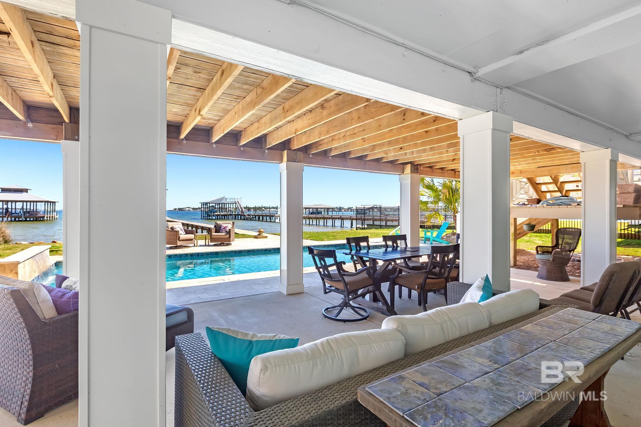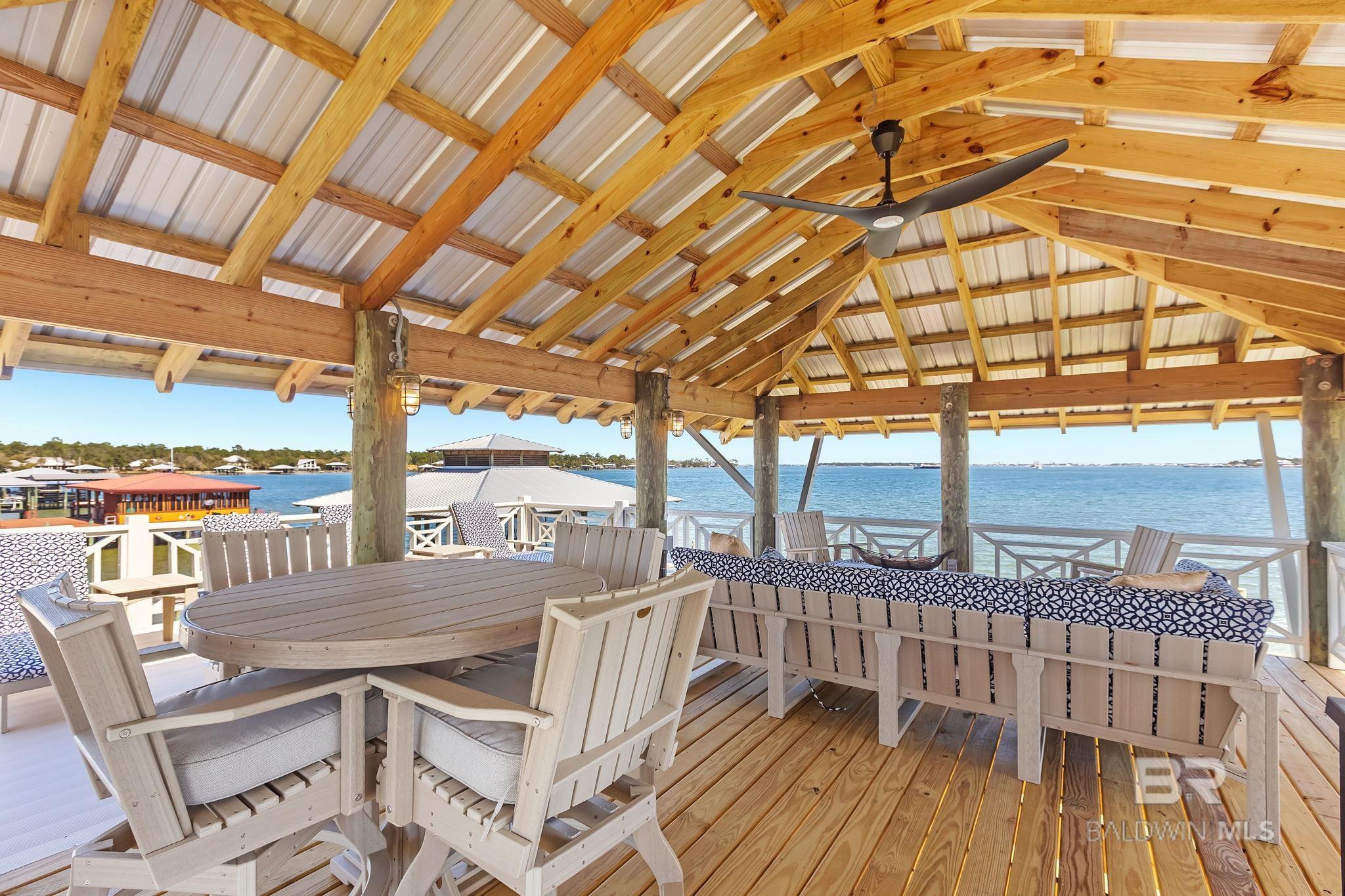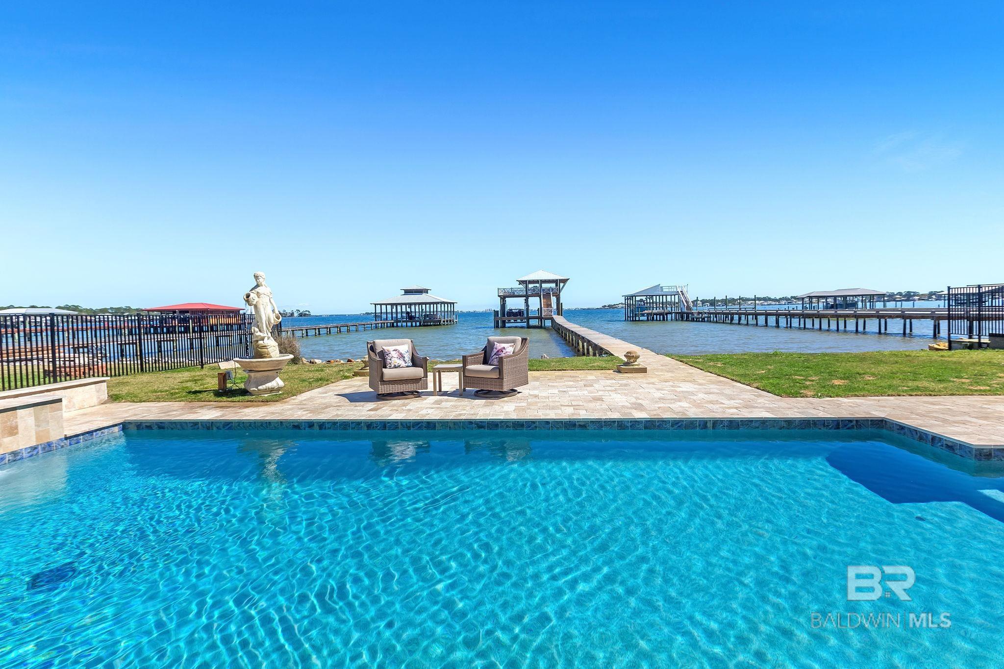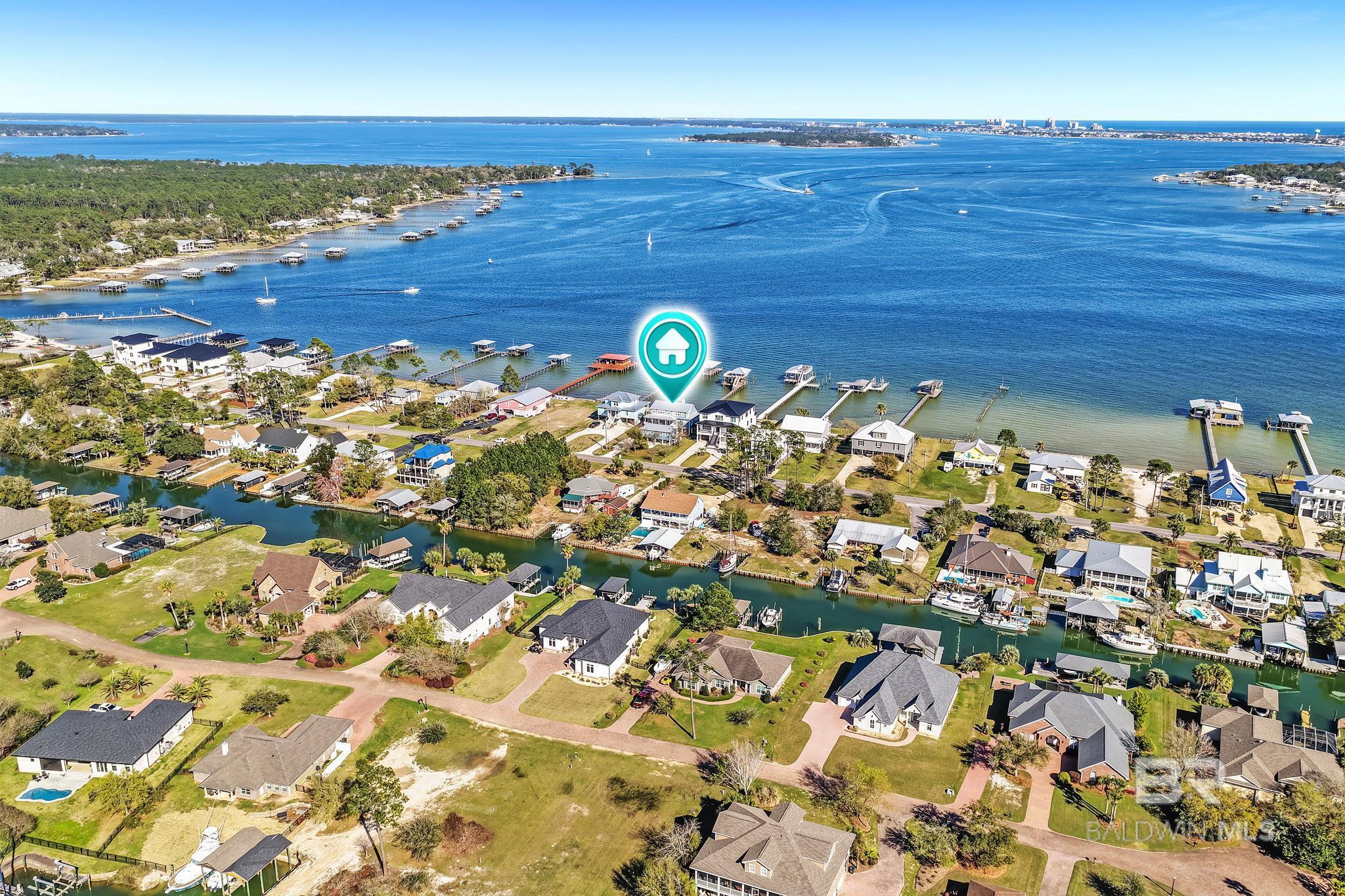 RARE BIG WATER SHORT-TERM RENTAL APPROVAL GUEST HOUSE CUSTOM PIER HEATED POOL Big-water home near Pirates Cove approved for short-term rentals, Perfectly positioned on the open waters of Arnica Bay in the Josephine boating community, this exceptional property combines breathtaking bay views, a custom two-level pier, heated saltwater pool, and a detached guest cottage creating the ultimate coastal compound for boating, entertaining, and hosting guests. THE PIER A TRUE DESTINATION ON THE BAY The custom-designed two-level pier is the centerpiece of the property. The covered upper deck captures steady bay breezes and panoramic water views Covered upper entertaining deck Two boat slips Boat lift Second slip for larger vessels Direct boating access to Pirates Cove Marina, Robinson Island, Perdido Pass, and the Gulf of Mexico MAIN RESIDENCE Designed to maximize views and comfortable coastal living. Spacious primary suite with private sitting room Water-view flex space currently used as an office Open living, dining, kitchen, and breakfast nook Built-in storage throughout Elevator Upper Level Three additional bedrooms Large second living / media room Full bath with room to add another Attic storage RESORT-STYLE OUTDOOR LIVING Large heated & cooled saltwater pool with travertine patio Expansive covered entertaining area under the home Waterside back porch overlooking Arnica Bay Classic Southern Living-style front porch Hot-water outdoor shower Irrigated sodded yard DETACHED GUEST COTTAGE Charming 2 bedroom / 1.5 bath guest cottage (approx. 940 sq ft) ideal for visiting guests, extended family, or additional short-term rental income potential. PRIME BOATING LOCATION Located in the heart of the beloved Josephine waterfront community, just a short walk or golf cart ride to: Pirates Cove Marina & Restaurant BIG WATER SHORT-TERM RENTAL APPROVAL GUEST HOUSE CUSTOM PIER HEATED POOL Buyer to verify all information during due diligence.