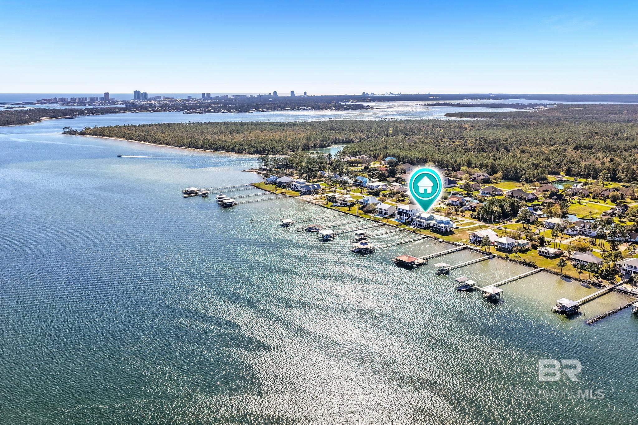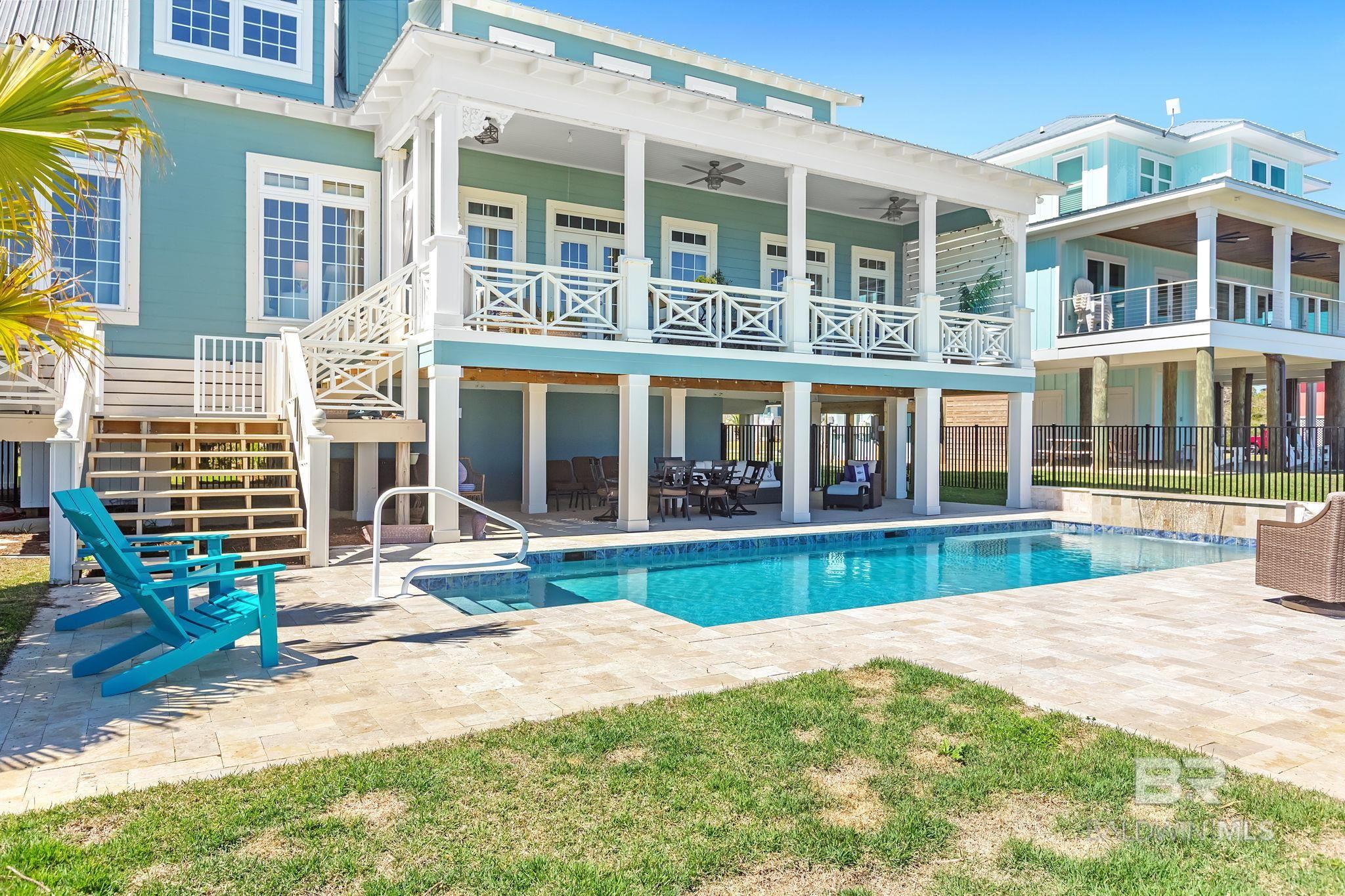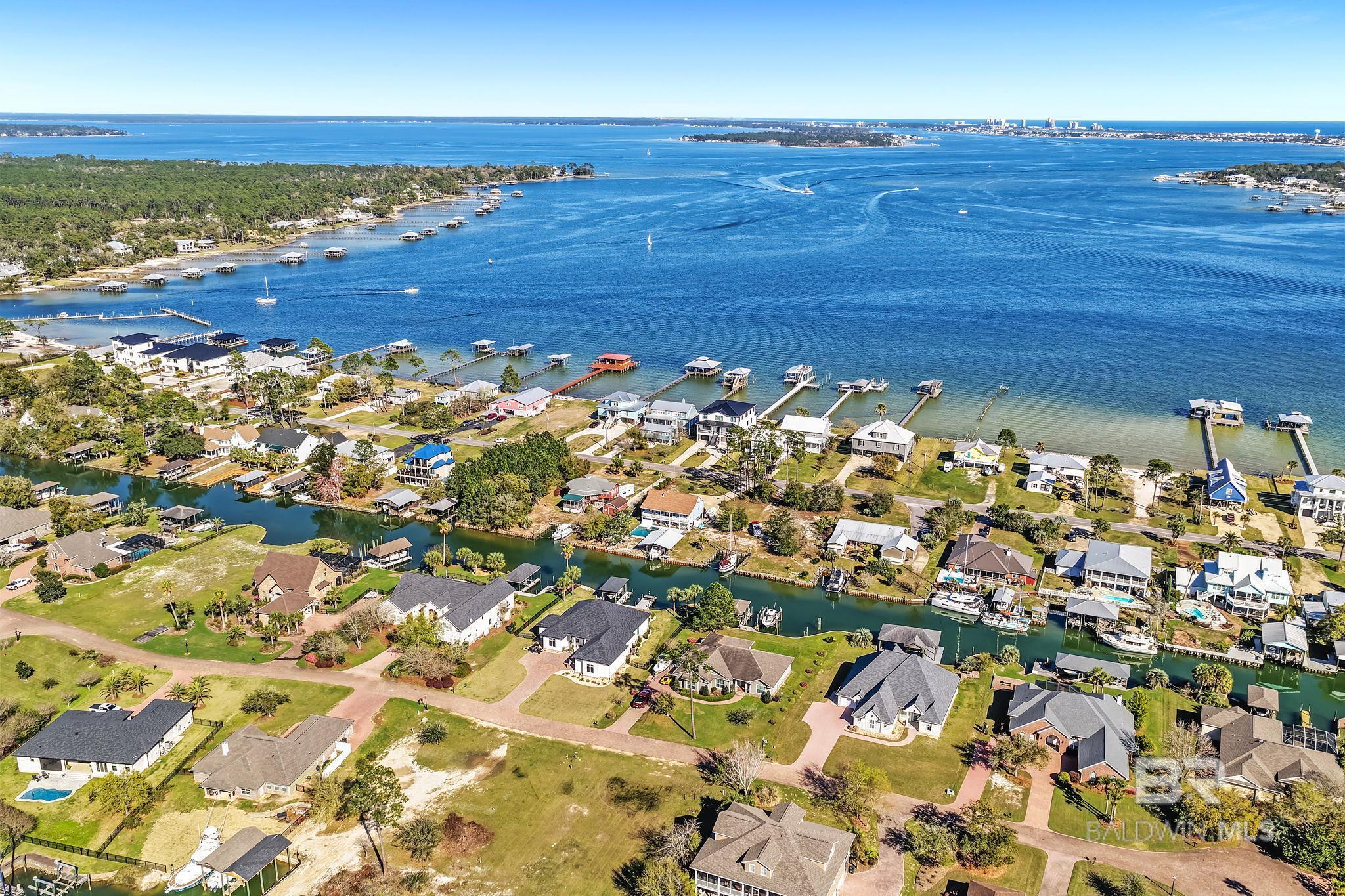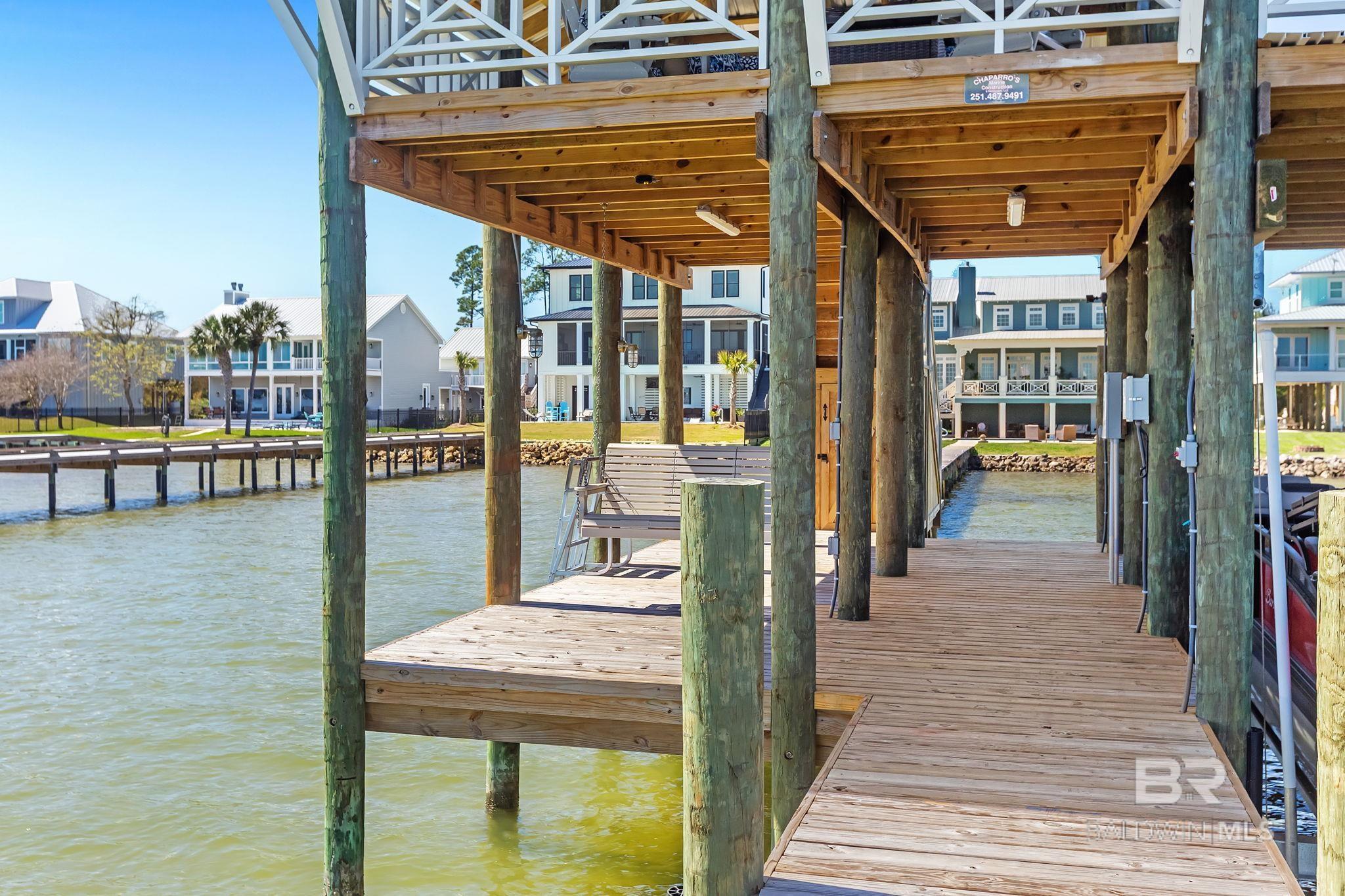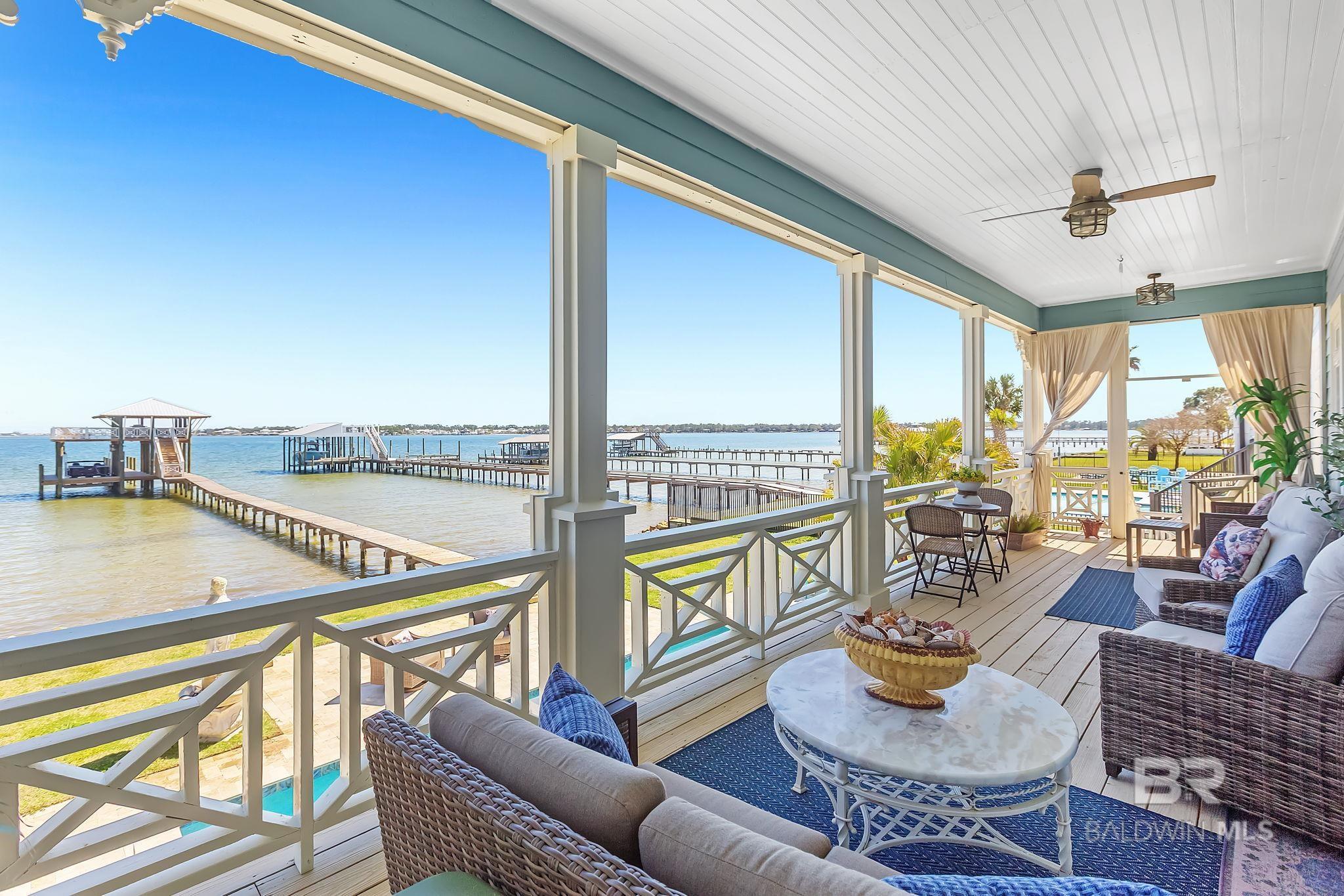 RARE BIG WATER SHORT-TERM RENTAL APPROVAL GUEST HOUSE CUSTOM PIER HEATED POOL Big-water home near Pirates Cove approved for short-term rentals, Perfectly positioned on the open waters of Arnica Bay in the Josephine boating community, this exceptional property combines breathtaking bay views, a custom two-level pier, heated saltwater pool, and a detached guest cottage creating the ultimate coastal compound for boating, entertaining, and hosting guests. THE PIER A TRUE DESTINATION ON THE BAY The custom-designed two-level pier is the centerpiece of the property. The covered upper deck captures steady bay breezes and panoramic water views Covered upper entertaining deck Two boat slips Boat lift Second slip for larger vessels Direct boating access to Pirates Cove Marina, Robinson Island, Perdido Pass, and the Gulf of Mexico MAIN RESIDENCE Designed to maximize views and comfortable coastal living. Spacious primary suite with private sitting room Water-view flex space currently used as an office Open living, dining, kitchen, and breakfast nook Built-in storage throughout Elevator Upper Level Three additional bedrooms Large second living / media room Full bath with room to add another Attic storage RESORT-STYLE OUTDOOR LIVING Large heated & cooled saltwater pool with travertine patio Expansive covered entertaining area under the home Waterside back porch overlooking Arnica Bay Classic Southern Living-style front porch Hot-water outdoor shower Irrigated sodded yard DETACHED GUEST COTTAGE Charming 2 bedroom / 1.5 bath guest cottage (approx. 940 sq ft) ideal for visiting guests, extended family, or additional short-term rental income potential. PRIME BOATING LOCATION Located in the heart of the beloved Josephine waterfront community, just a short walk or golf cart ride to: Pirates Cove Marina & Restaurant BIG WATER SHORT-TERM RENTAL APPROVAL GUEST HOUSE CUSTOM PIER HEATED POOL Buyer to verify all information during due diligence.