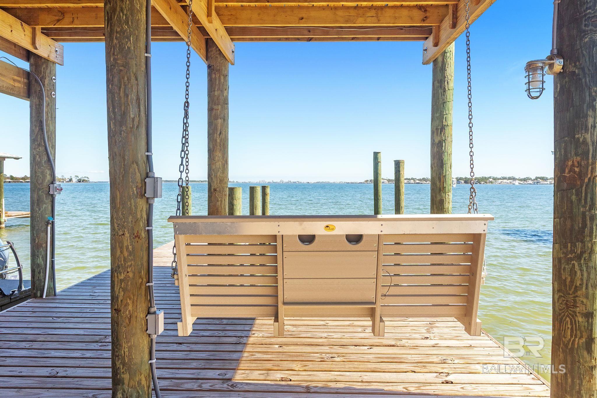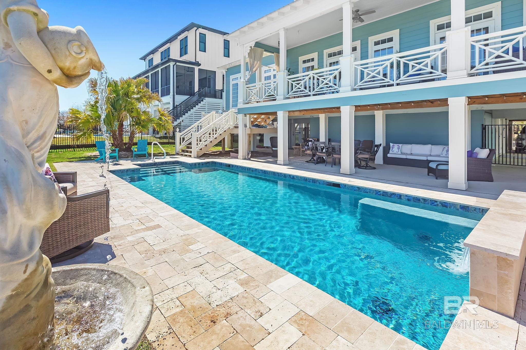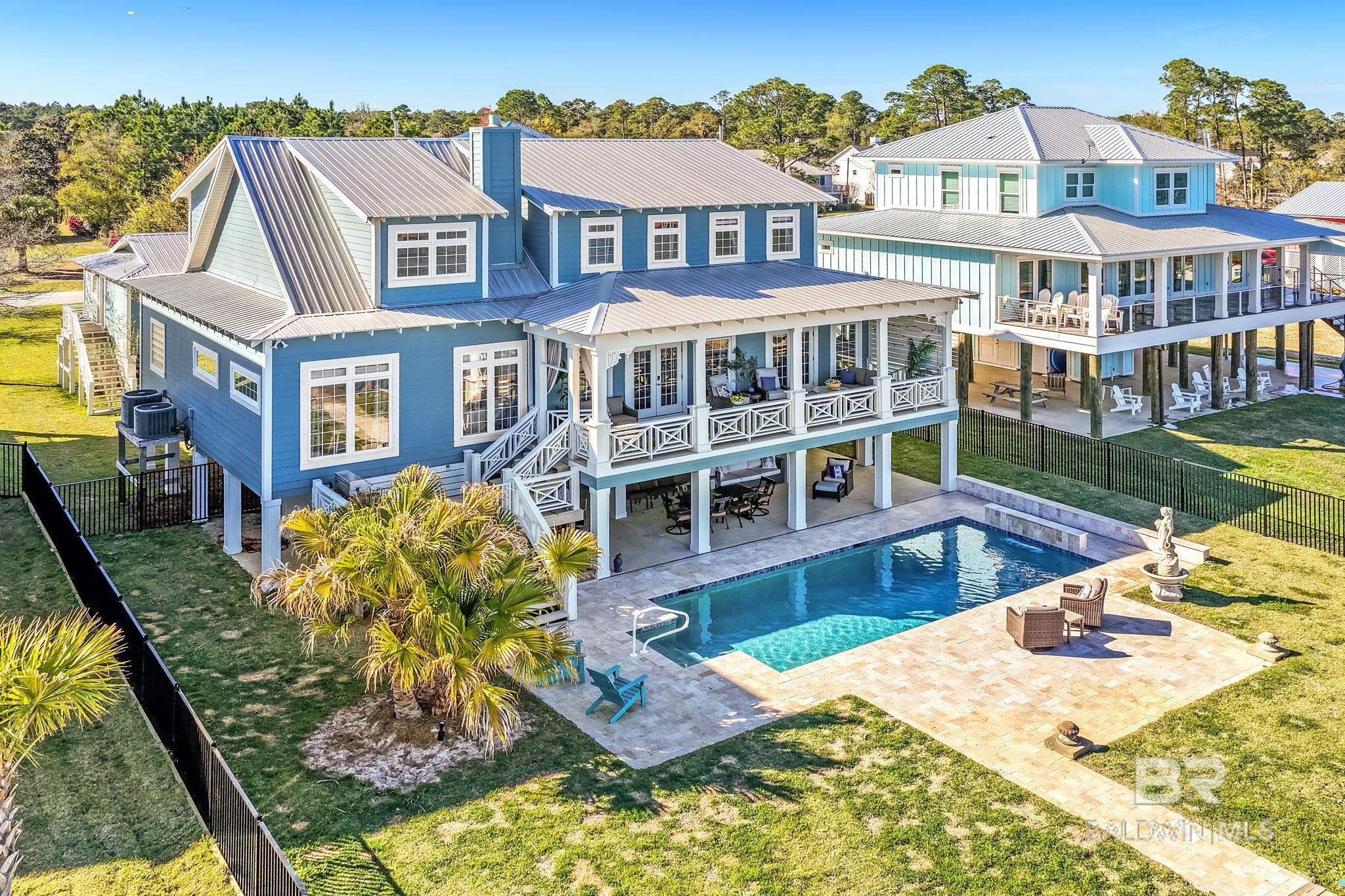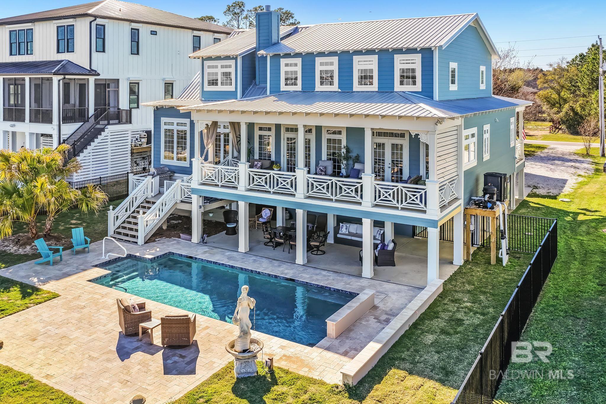 RARE BIG WATER SHORT-TERM RENTAL APPROVAL GUEST HOUSE CUSTOM PIER HEATED POOL Big-water home near Pirates Cove approved for short-term rentals, Perfectly positioned on the open waters of Arnica Bay in the Josephine boating community, this exceptional property combines breathtaking bay views, a custom two-level pier, heated saltwater pool, and a detached guest cottage creating the ultimate coastal compound for boating, entertaining, and hosting guests. THE PIER A TRUE DESTINATION ON THE BAY The custom-designed two-level pier is the centerpiece of the property. The covered upper deck captures steady bay breezes and panoramic water views Covered upper entertaining deck Two boat slips Boat lift Second slip for larger vessels Direct boating access to Pirates Cove Marina, Robinson Island, Perdido Pass, and the Gulf of Mexico MAIN RESIDENCE Designed to maximize views and comfortable coastal living. Spacious primary suite with private sitting room Water-view flex space currently used as an office Open living, dining, kitchen, and breakfast nook Built-in storage throughout Elevator Upper Level Three additional bedrooms Large second living / media room Full bath with room to add another Attic storage RESORT-STYLE OUTDOOR LIVING Large heated & cooled saltwater pool with travertine patio Expansive covered entertaining area under the home Waterside back porch overlooking Arnica Bay Classic Southern Living-style front porch Hot-water outdoor shower Irrigated sodded yard DETACHED GUEST COTTAGE Charming 2 bedroom / 1.5 bath guest cottage (approx. 940 sq ft) ideal for visiting guests, extended family, or additional short-term rental income potential. PRIME BOATING LOCATION Located in the heart of the beloved Josephine waterfront community, just a short walk or golf cart ride to: Pirates Cove Marina & Restaurant BIG WATER SHORT-TERM RENTAL APPROVAL GUEST HOUSE CUSTOM PIER HEATED POOL Buyer to verify all information during due diligence.