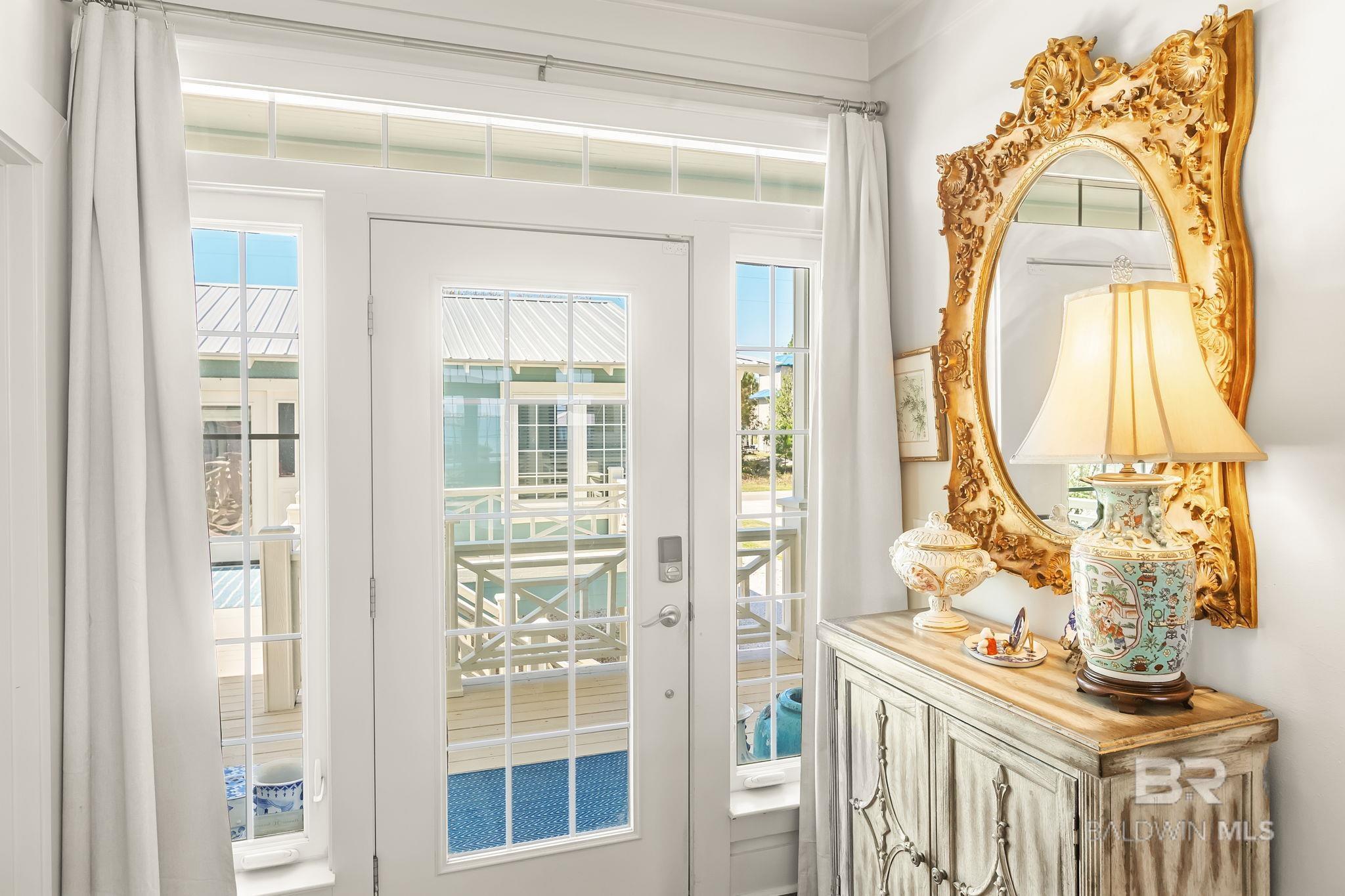 Exquisite turn-key Mediterranean style beach home located in the gated community of Destiny East. This home comes fully furnished, including all window treatments, bedding, kitchenware, and a 2017 6-seater Golf Cart. View the virtual video to appreciate the owners attention to every beautiful detail and recent upgrades.