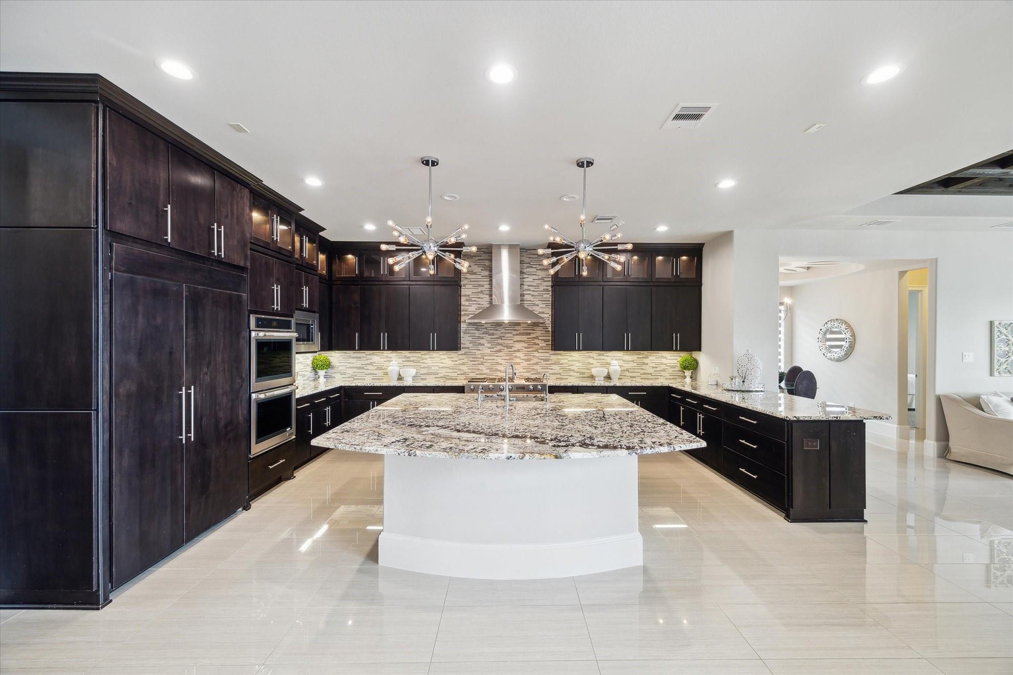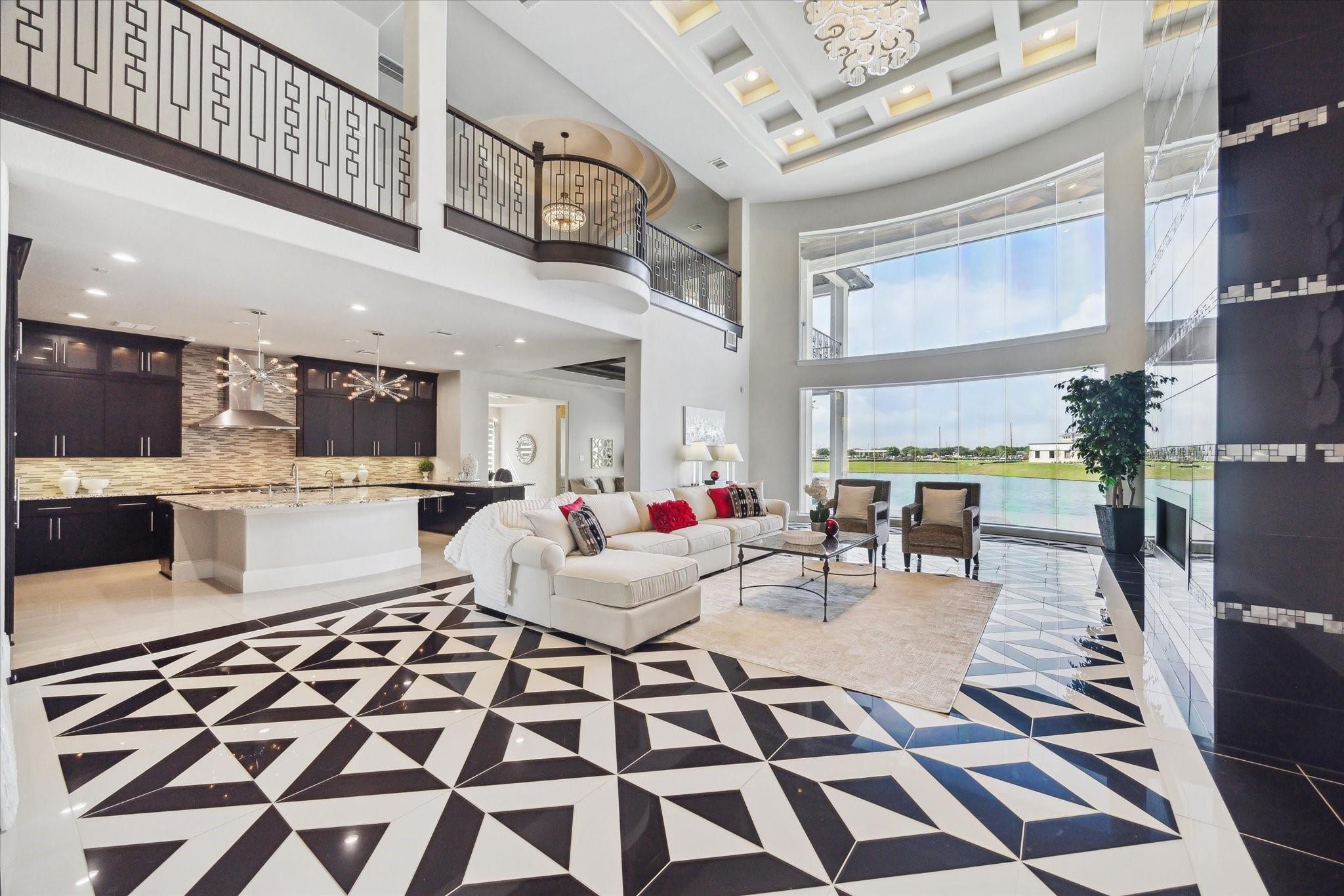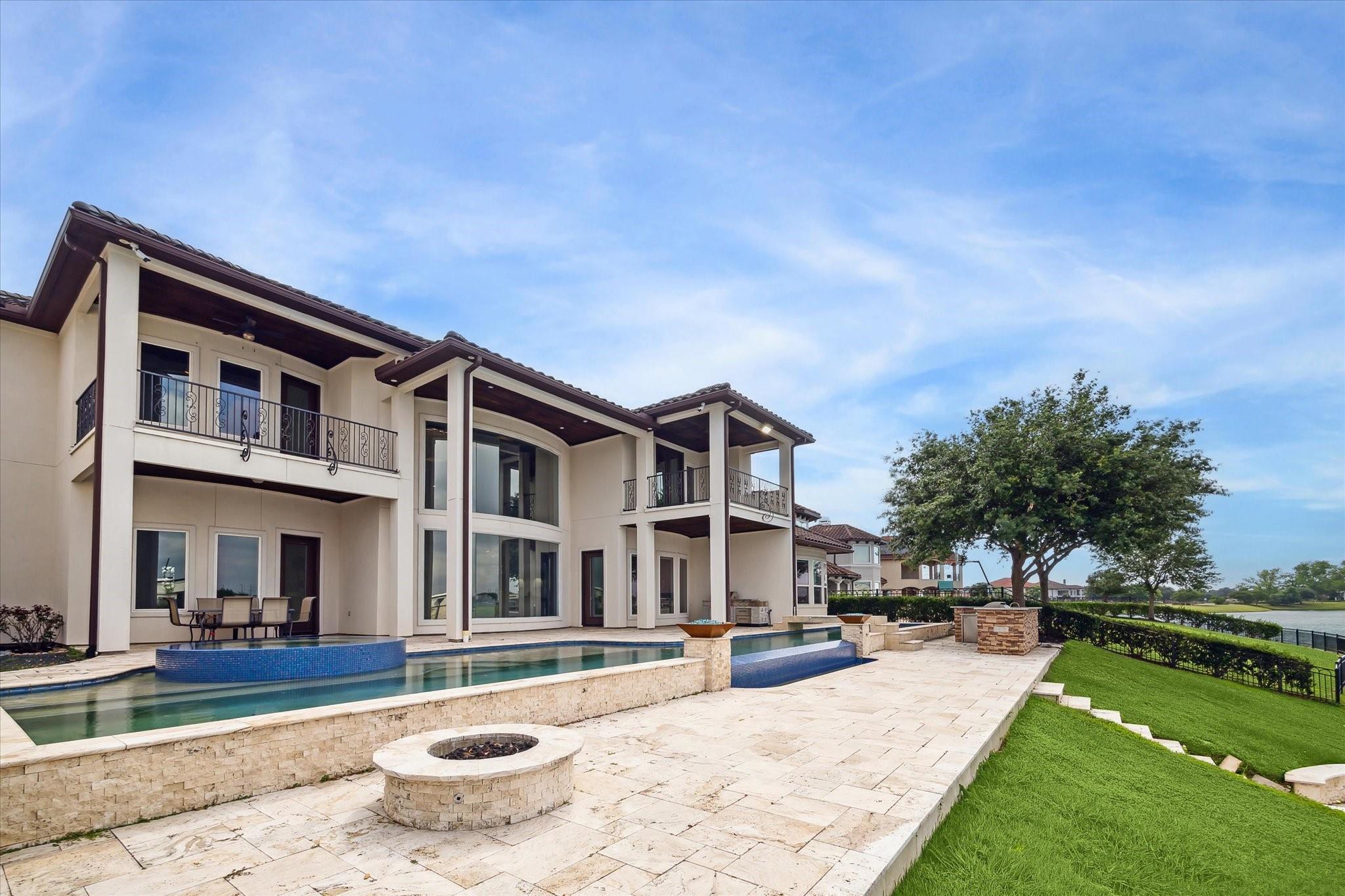 SLEEK, MODERN, CUSTOM WATERFRONT ESTATE in Riverstones ONLY GUARD GATED community! Gorgeous stucco & tile roof with circle driveway and porte cochere for added sophistication and style. Double iron doors lead to a dramatic entry with soaring ceilings, double stair cases, and huge oversized chandelier that is the star of the show! Fantastic floor plan with 2 TRUE PRIMARY SUITES and 2 BEDROOMS DOWN! 3 KITCHENS in the home - Stunning main kitchen with custom cabinetry, high end appliances and exotic granite counter tops. Catering/spice kitchen is a fully functioning kitchen and then there is a fantastic outdoor kitchen overlooking Lake Riverstone! Oversized living room w/modern two-story fireplace. Upstairs features the second primary suite, large game room, media, & generous secondary bedrooms. Multiple balconies, terraces, and seating areas outside to enjoy all the views. HUGE pool with bridge and hot tub make everyday feel like resort style living. Call the Aida Younis Team today!