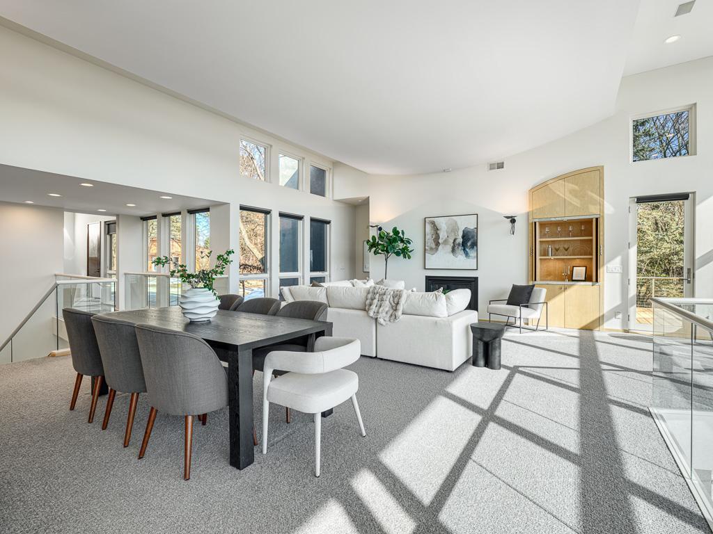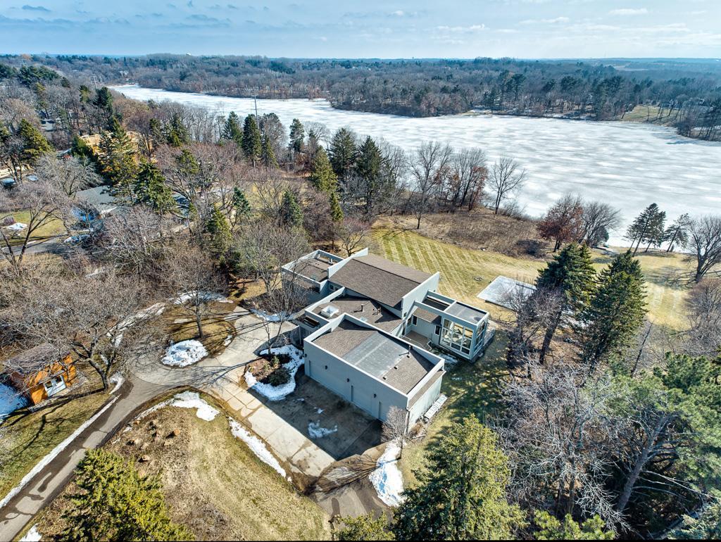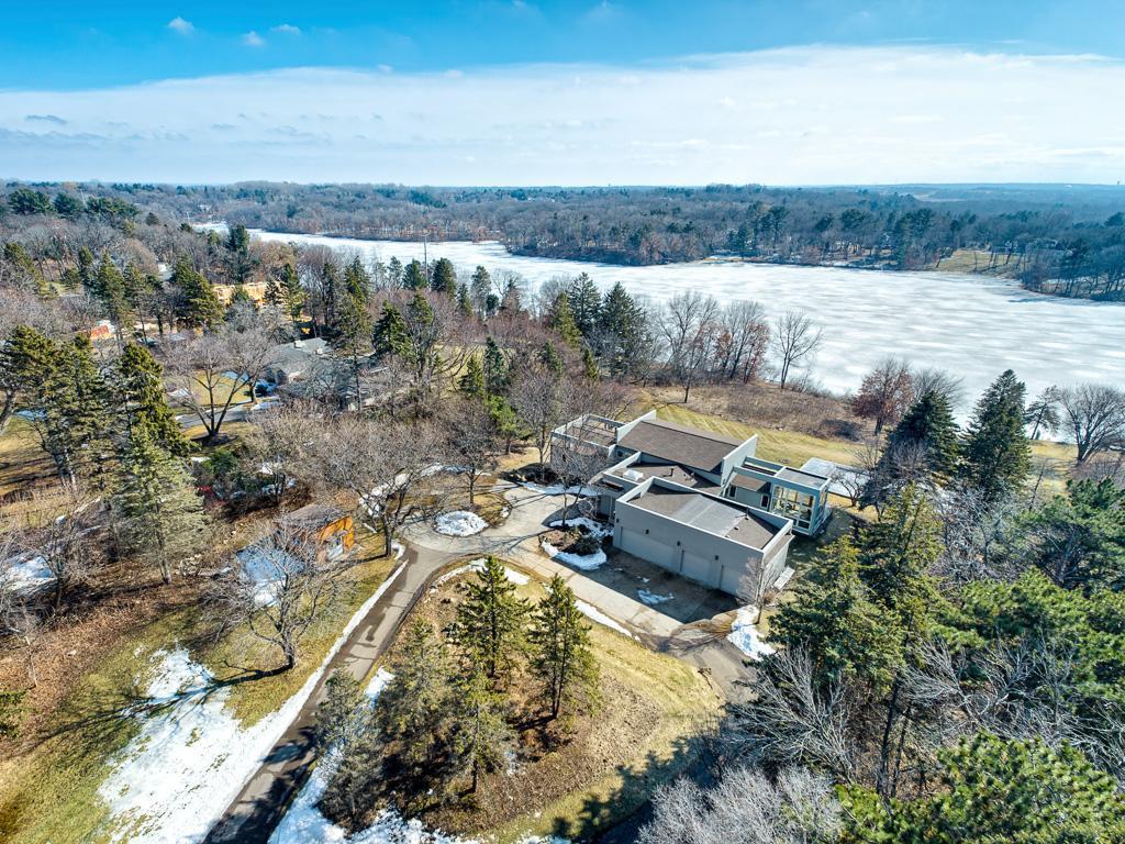 Situated on over five acres along the shores of Sunfish Lake, this extraordinary residence designed by Charles Stinson and built by Streeter is a true architectural retreat. Expansive walls of glass frame breathtaking lake and nature views from every room filling the home with natural light.
