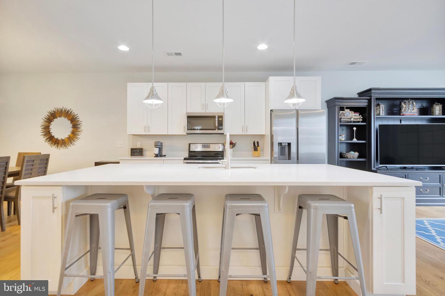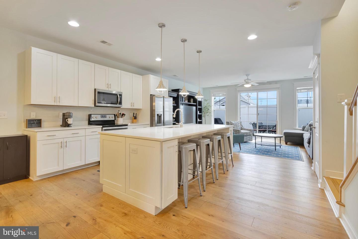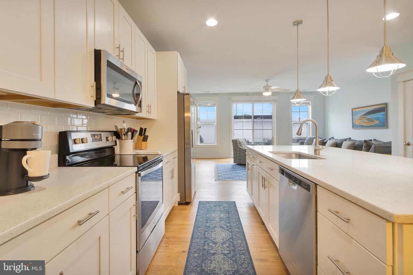 Welcome to Park Shoreone of Rehoboth Beachs most sought-after communities, ideally located just 1 mile from the beach and boardwalk!This beautifully maintained interior townhome offers 4 bedrooms and 3.5 bathrooms across three spacious levels, combining coastal style with low-maintenance living. The open-concept main level features hardwood flooring, abundant natural light, and a seamless flow between the kitchen, dining, and living areas.The kitchen is designed for gathering, featuring a large center island with seating, white cabinetry, stainless steel appliances, and ample prep space. The living area opens to a private outdoor space, perfect for relaxing after a day at the beach. Upstairs, the primary suite offers a peaceful retreat with a walk-in closet and en-suite bath complete with dual vanities and an oversized tile shower. Two additional guest bedrooms, a full bath, and convenient laundry complete the second level. The third floor provides exceptional flexibilityideal as a 4th bedroom, guest suite, or bonus living spacewith its own full bath and access to a private rooftop deck with awning.Additional highlights include a 1-car garage, driveway parking, ample storage for beach gear, and access to the communitys outdoor, saltwater pool. Tucked within a small community of just 22 townhomes and just steps to the Junction & Breakwater Trail, this location offers easy access to downtown Rehoboth, restaurants, breweries, and tax-free shopping.