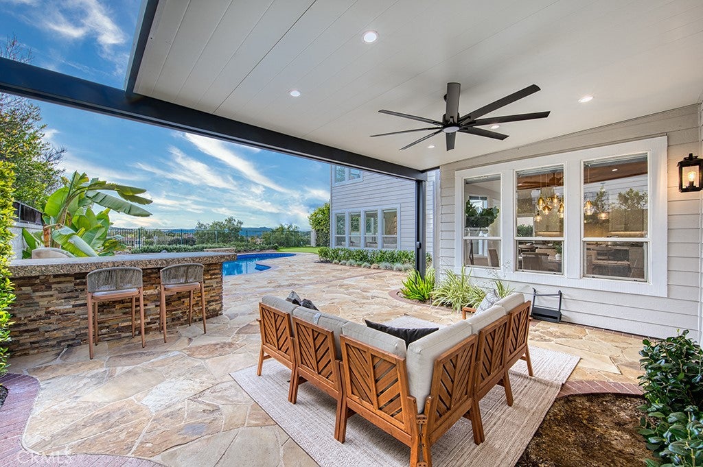 Perfectly positioned along the rolling fairways of Coto de Cazas prestigious golf course, 21 Portmarnoch presents an exceptional opportunity to experience refined indoor-outdoor living with panoramic sunset golf course views as your daily backdrop. This beautifully updated residence combines timeless elegance with modern comfort in one of the communitys most desirable neighborhoods. The home showcases a highly functional open layout centered around a stunning great room. The fully remodeled chefs kitchen serves as the heart of the home, featuring premium Sub-Zero and Wolf appliances, custom finishes, a large center island, beverage fridge, and an expansive walk-in pantry. The space flows naturally into the family room and formal dining area, creating an inviting environment ideal for gatherings large or small. Step outside to a private backyard retreat overlooking the golf course, where resort-style amenities elevate every occasion. Enjoy a sparkling pool and spa, outdoor BBQ center, and a private putting greenall thoughtfully designed to capture sweeping views and unforgettable sunsets year-round. The main level offers additional flexibility with a formal living room, a comfortable guest suite perfect for visitors or multigenerational living, and a beautifully appointed powder room. Upstairs, the oversized primary suite provides a true sanctuary, highlighted by a private retreat and luxurious remodeled bathroom featuring a soaking tub, oversized glass-enclosed shower, dual vanities, and two expansive walk-in closets. The upper floor also includes two secondary bedroomsone with its own en-suite batha generous bonus room ideal for a media or play room, an additional full bathroom, and a conveniently located laundry room. Modern living is enhanced with integrated smart home features, including a Lutron lighting system, automated window treatments and owned solar. Experience the best of Coto de Caza, where premier living meets award-winning schools, a world-class Golf & Racquet Club, scenic sports parks, and easy access to hiking, biking, and equestrian trails. No Mello rooslow tax rate.