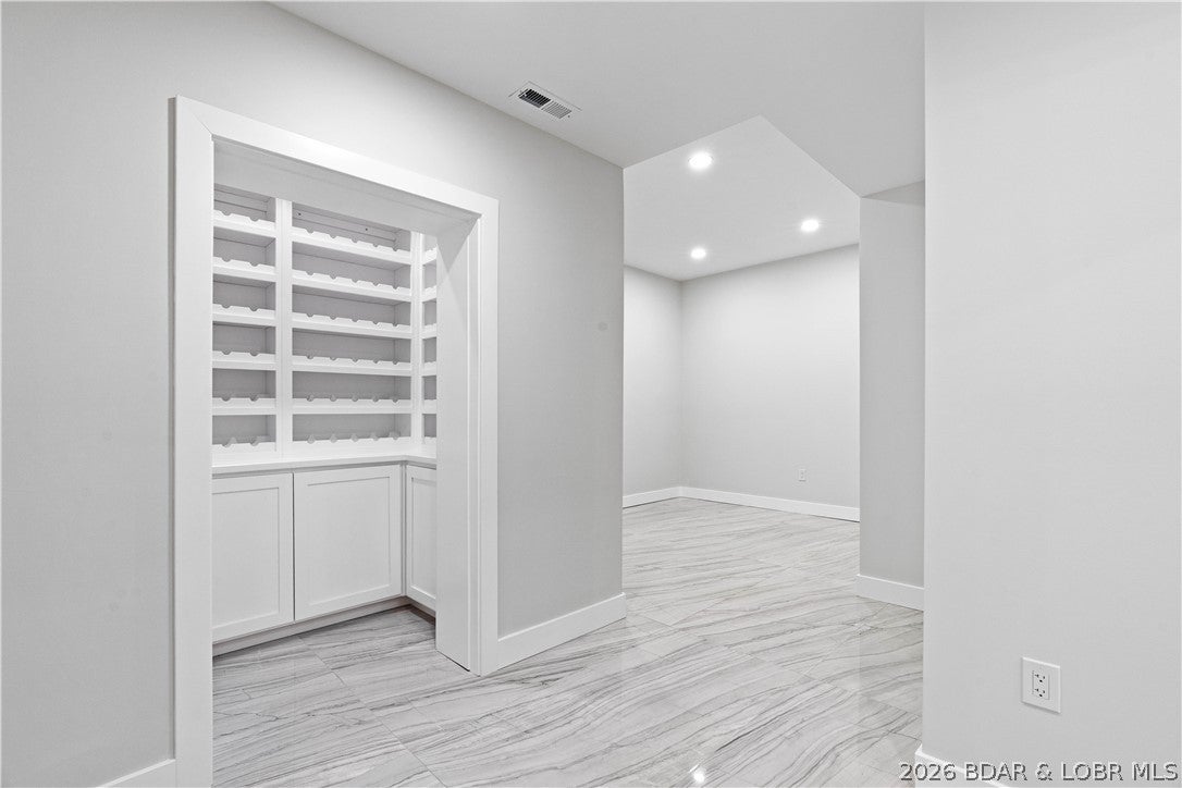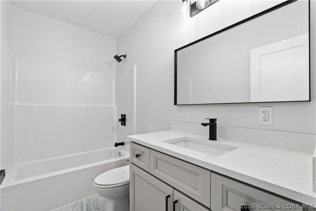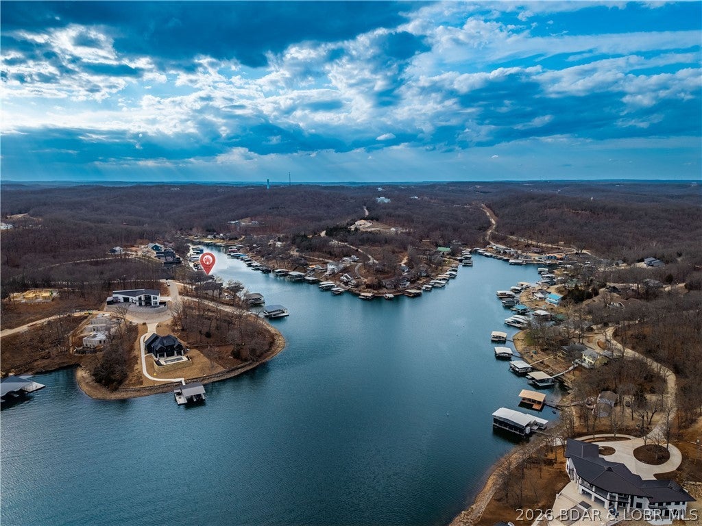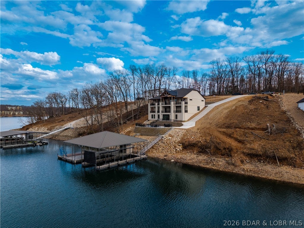 Stunning brand-new lakefront home offering the ultimate in luxury living. Grand entry welcomes you with soaring ceilings & a wall of windows with breathtaking views. The great room flows seamlessly into a gourmet kitchen w/ high-end appliances, formal dining, & a kitchen nook leading to expansive concrete decks. The lakeside primary suite features a spa-like bath, large walk-in closet, & access to the laundry room. The main level offers an additional lakeside suite & a third en-suite bedroom. Lower level includes a family room, three additional bedrooms (one Suite), 1/2 bathrm, a bonus room w/ custom wine cellar, second laundry, & ample storage. The pool room w/ bar, full bath, & storage opens directly to the 13x27 pool & large deck area. Dock featuring a 16x50 slip, 12x36 slip, PWC slip, & a filled-in 12x50 slip easily convertible for a performance boat. Oversized 3-car garage plus additional parking, 10 golf cart path w/ turnaround at the waters edge, deep-water cove, city water & sewer, & quick access to the main channel & amenities. Ideal as a luxury rental or executive retreat (see attched projections). Optional second-tier Lot 46 availableperfect for a guest home/man cave.