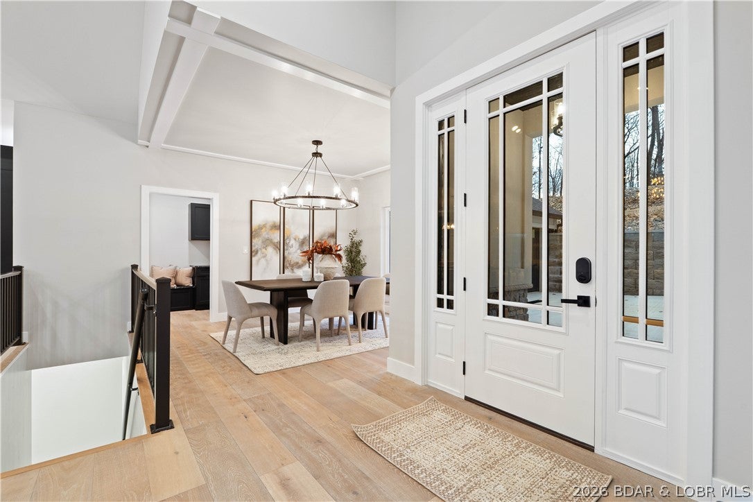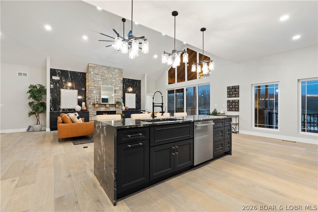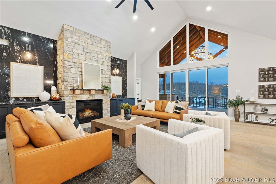 Stunning brand-new lakefront home offering the ultimate in luxury living. Grand entry welcomes you with soaring ceilings & a wall of windows with breathtaking views. The great room flows seamlessly into a gourmet kitchen w/ high-end appliances, formal dining, & a kitchen nook leading to expansive concrete decks.