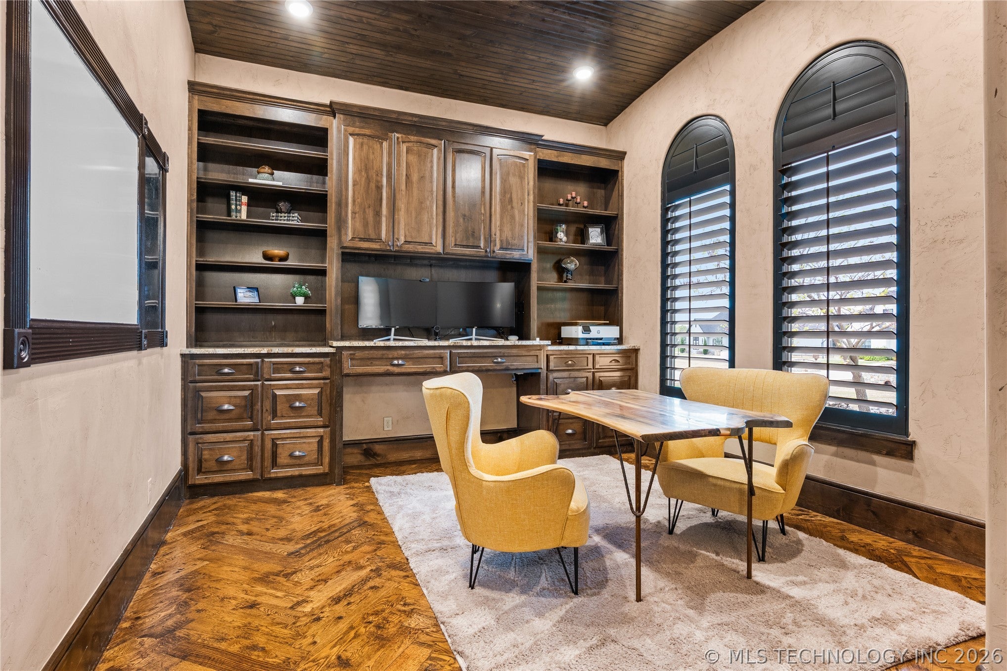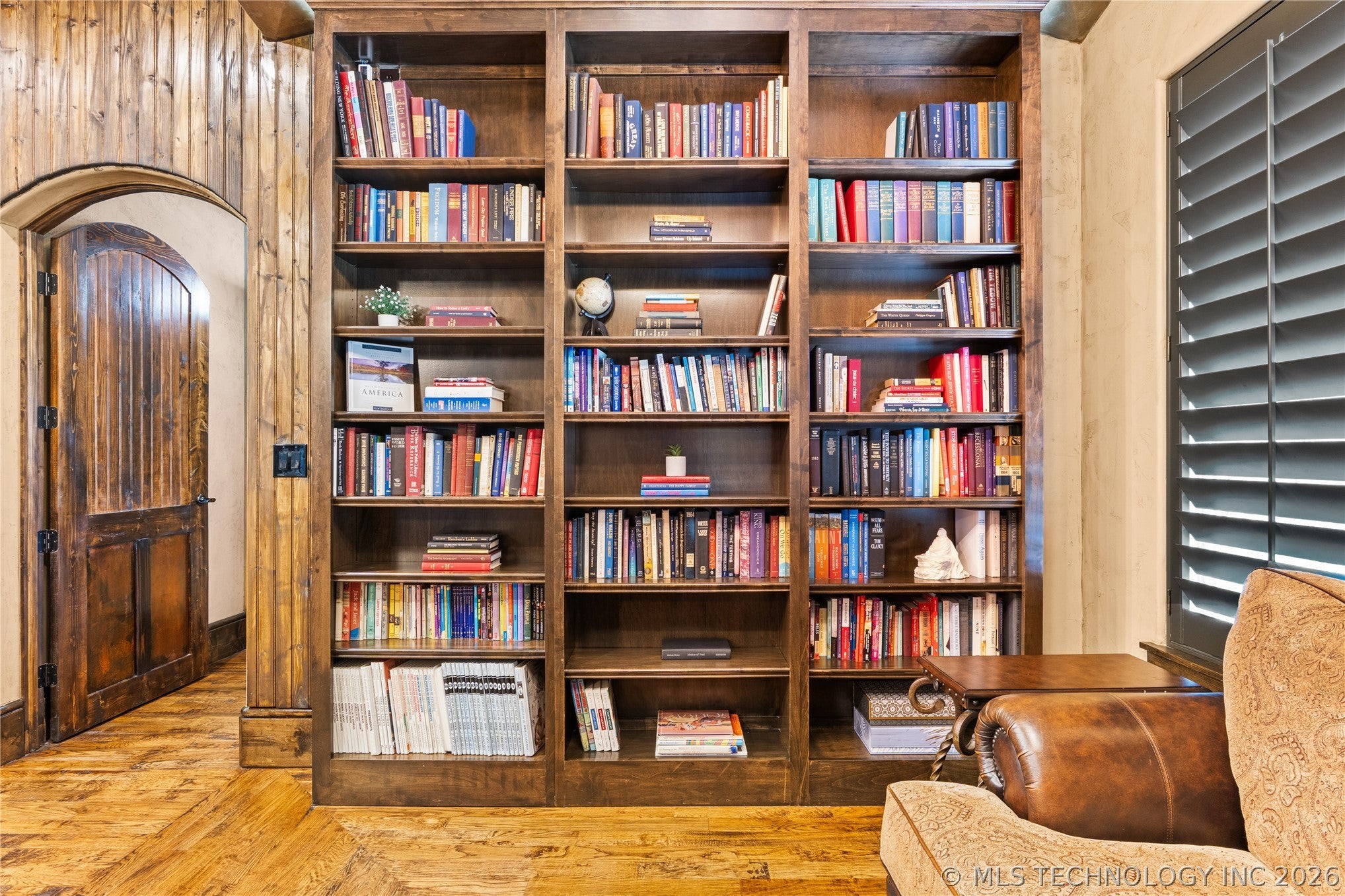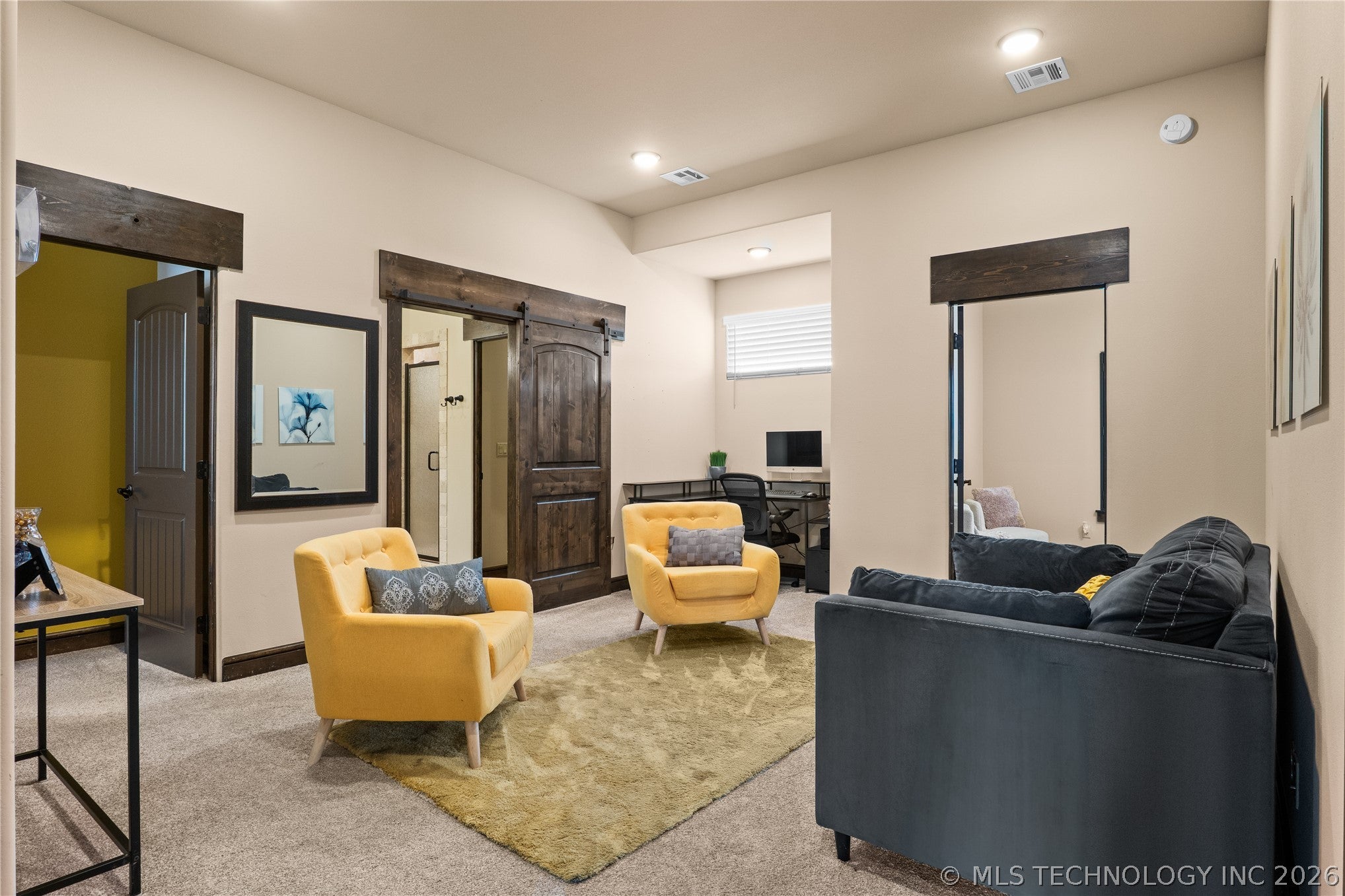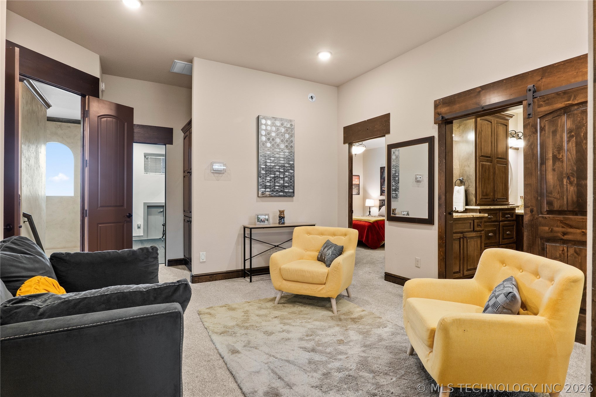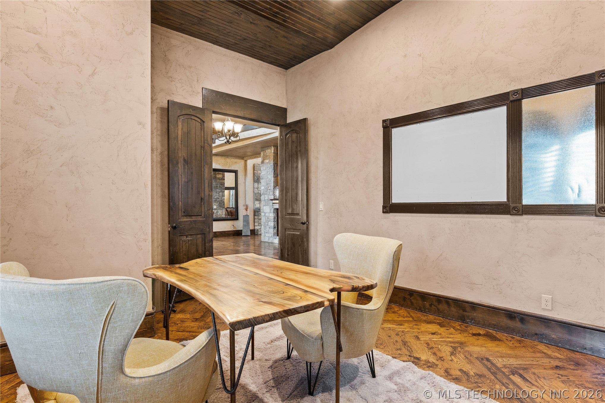 Experience the pinnacle of Mediterranean luxury in the exclusive, gated Highland Pointe of Stone Canyon. This Mission-style masterpiece commands a sprawling lot and features a signature tile roof, authentic stone masonry, and grand architectural arches. The interior reveals a sophisticated open-concept floor plan defined by 22-foot vaulted ceilings, rich hardwoods, and a gourmet chefs kitchen equipped with expansive granite countertops and professional-grade appliances. The primary suite offers a resort-style sanctuary with a spa-inspired bath including a hot rock steam sauna and double shower with body sprays and rain heads. There is a secondary downstairs suite complete w its own living room and bathroom, perfect for generational living options. An executive office, movie theater with snack bar, fitness room and another living area anchoring the bedrooms upstairs allows for function and fun! Residents enjoy elite community amenities including a gated entrance, the Patriot Golf Club (membership required), a 100-acre private lake, and scenic hiking trails, all within the top-rated Owasso school district.