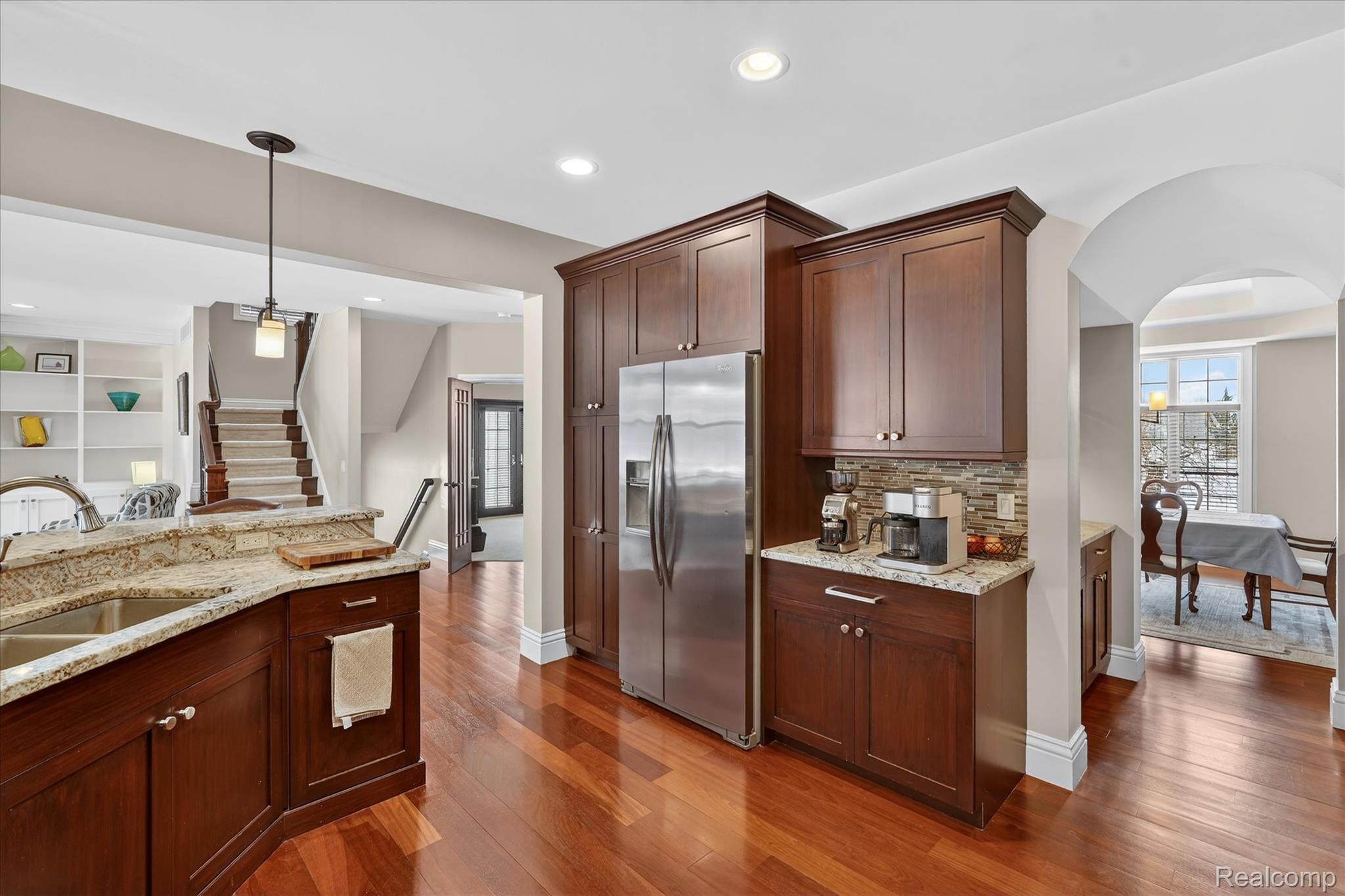 Dont miss the opportunity to own this one-of-a-kind custom home in the prestigious Oakhurst Golf & Country Club gated community. This exceptionally built two-story masterpiece offers 4 bedrooms, 3.5 bathrooms, and 4,557 finished square feet! Pulling up, youll notice the private setting on a quiet street in the most desirable area of Oakhurst. First, you cannot miss the huge attached garage and a quaint front porch. Inside, the spacious living room welcomes you with stunning wood floors and a cozy fireplace, making the space warm and inviting.Hosting a dinner party? The large kitchen sits at the heart of the home and was clearly designed for connection. It overlooks both the dining room and the living room, making conversations flow easily during meals and gatherings. The kitchen is fully equipped with top-of-the-line stainless steel appliances, plenty of counter space, and a pantry that keeps everything organized and within reach. Upstairs, the primary suite offers a private retreat with two walk-in closets and an en-suite toilet and bath.For the work-from-home family, this house offers two separate, fully equipped rooms, ideal for two working members of the family or one as a student study library.The finished basement is where this home truly shines for entertaining. Designed and built by renowned home interior and restaurant craftsmen, the Brazilian Cherry professional bar and 100-year-old reclaimed brick create a stunning masterpiece for entertaining guests. In addition, the family area of the basement, with 10-foot ceilings, is perfect for a golf simulator or a family play area. Need a family theatre? This house has the perfect space to host movie marathons with friends and family. This home truly has something for every member of the family.Finally, the outdoor space is perfect for entertaining, featuring a cozy covered porch and a large brick-paver patio.Want to see 7247 Ardsley Ln in person? Schedule a showing with your favorite agent today!