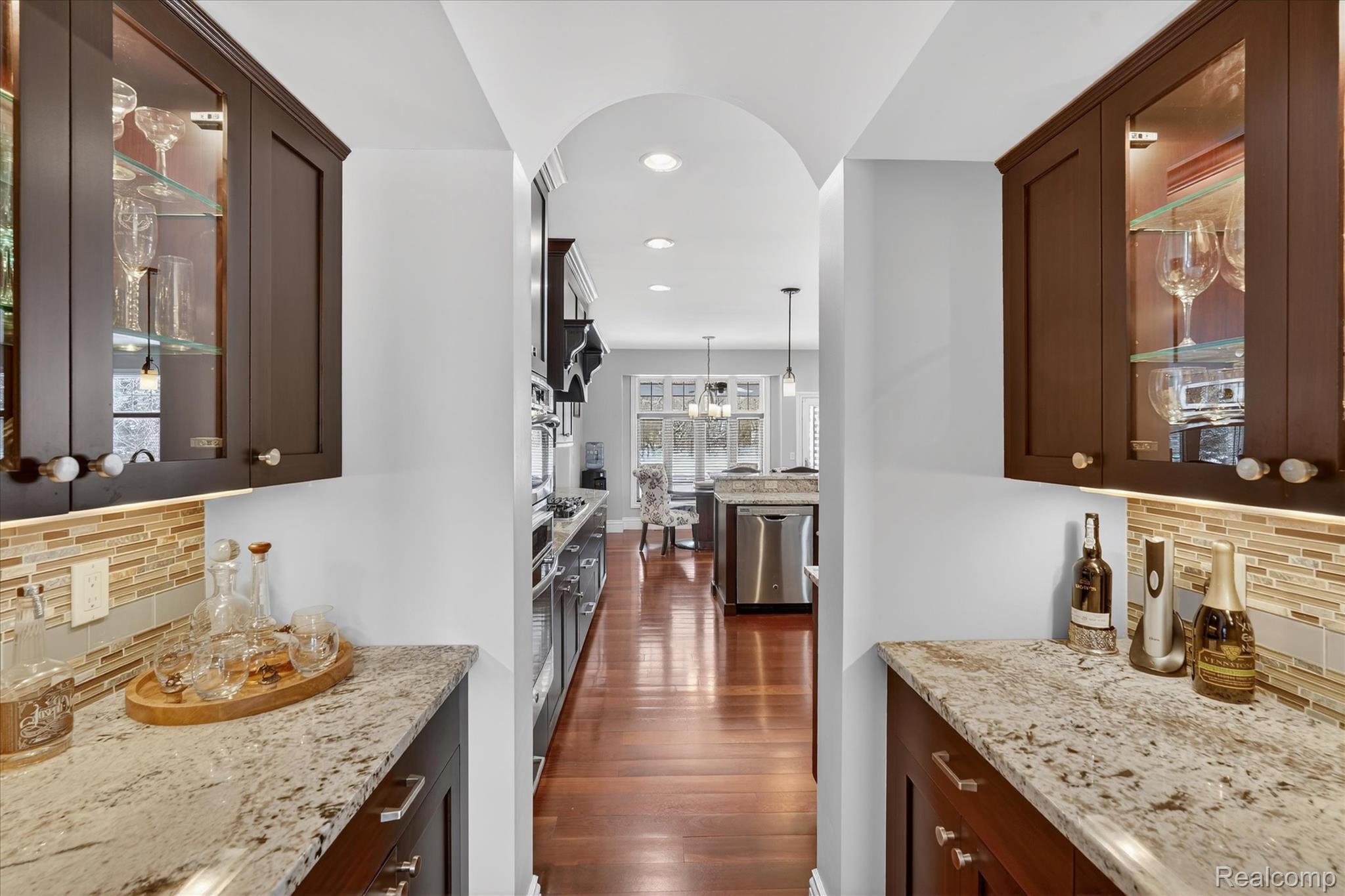 This four-level property is amazing, and the space that it provides with 6 en-suite bedrooms is unmatched.! Welcome to a lifestyle of luxury, refinement and timeless elegance in this stunning Craftmark executive-style detached home w/real hardwood flooring on 3 levels. Its perfectly positioned on the 18th golf fairway of a premier, 24-hour guard-gated golf community. Spanning four finished levels, this expansive residence with 7950 total sq. ft. features 6 bedrooms, 6.5 bathrooms, and every amenity for the discerning homebuyer.Step into elegance on the main level and youll immediately notice the spaciousness of every room because the sellers spared no expense when they opted for the four-foot expansion which runs the entire length of the property on every floor. The living and dining rooms have incredible space and will invite many memorable gatherings. The family room, flanked with tons of windows, impresses with soaring two-story ceilings and a striking stone fireplace, while the spacious sunroom offers a tranquil spot for morning meditation or coffee. The gourmet kitchen is a chefs dreamcomplete with a generous island, state-of-the-art Monogram stainless steel appliances, and plenty of room to entertain. A private office, with a large bay window and custom built-ins, provides the perfect space for working from home. Enjoy relaxing or hosting on the deck, capturing picturesque fairway views buffered by fall foliage.Retreat upstairs using one of the two stairwells to your sumptuous primary suite, where a sitting room and a cozy two-sided fireplace create a true sanctuary. Dual walk-in closets and a spa-like bath offer exceptional comfort, while three additional en suite bedrooms each feature walk-in closets and private baths, ensuring space and privacy for everyone. The top/loft floor presents a private suiteperfect for guests or familywith a spacious bedroom, walk-in closet, and full bathroom. On the lower level, enjoy versatile spaces for recreation and relaxation, complete with a wet bar featuring built-in appliances, a family room, bedroom, full bathroom, and two extra rooms which could be used for a gym, media center, or storage. Walkout access leads directly to the beautiful yard and beyond. The three-car sideload garage provides ample space for parking along with the space in the extended driveway.Step outside and experience exceptional community amenities: enjoy an original Ault, Clark & Associates design 18-hole championship golf course (fee based), a welcoming Pro Shop, The Grove Restaurant, a pristine Swim & Tennis Center w/exercise room, impressive community entrance w/fountains, and miles of scenic walking trails. All of this awaits in a community defined by elegance, convenience, and security. The nearest Metrorail is approximately 5 miles away and the convenience of stores, schools, restaurants, shopping, Bowie Town Center, Woodmore Town Center, Joint Base Andrews, UMD Hospital, Childrens Medical Center, and other establishments are in close proximity! Live every day like a resort getawayschedule your private tour of this exquisite property today.