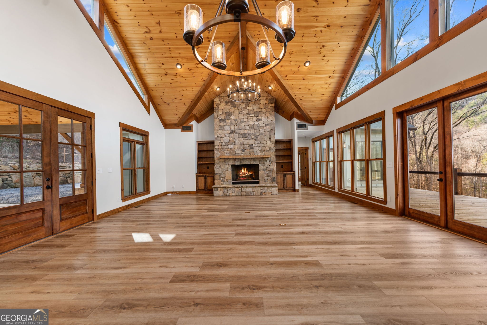 Own a rare fee simple home on beautiful Lake Rabun, one of North Georgias most treasured communities. This exceptional waterfront home offers direct access to the lake and a two-slip boathouse making sunrise cruises, afternoon swims, and sunset rides effortless. With ample room for family and guests, the home is designed for gathering and making memories. Inside, warm and inviting living spaces frame sparkling lake views at every turn. Step outside to expansive decks and lakeside sitting areas made for morning coffee, sunset dinners, and unforgettable evenings under the stars. Privacy, recreation, and open water views with the rare advantage of fee simple acreage on Lake Rabun offers lake life at its finest.