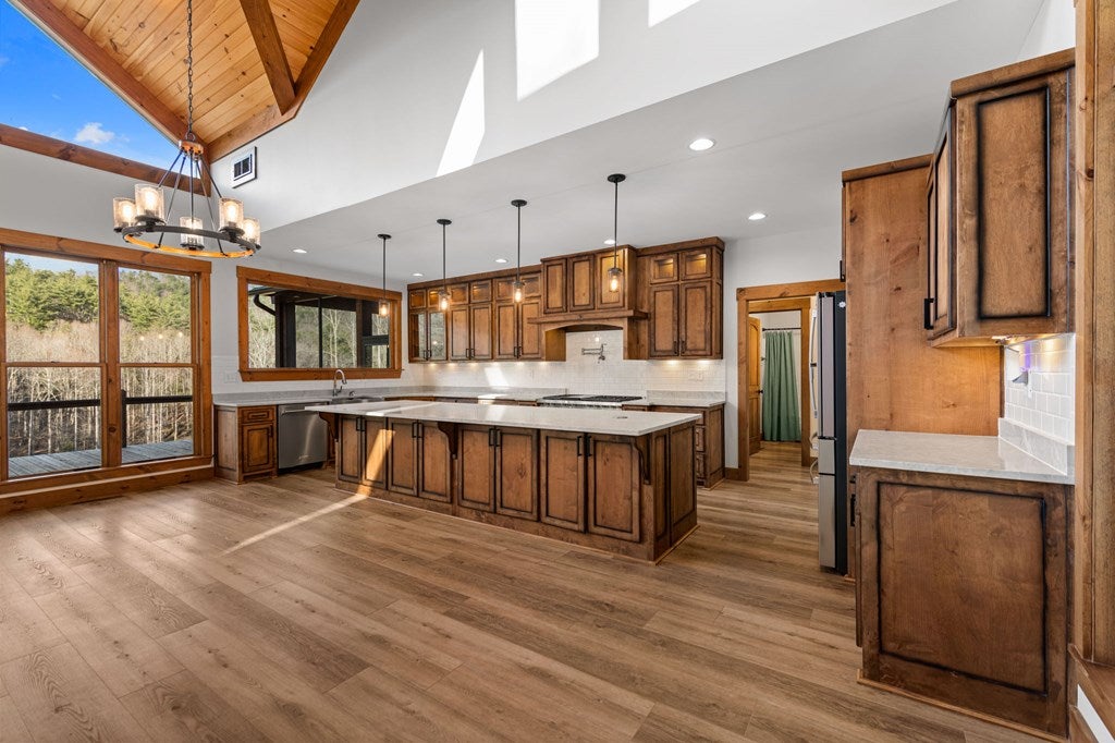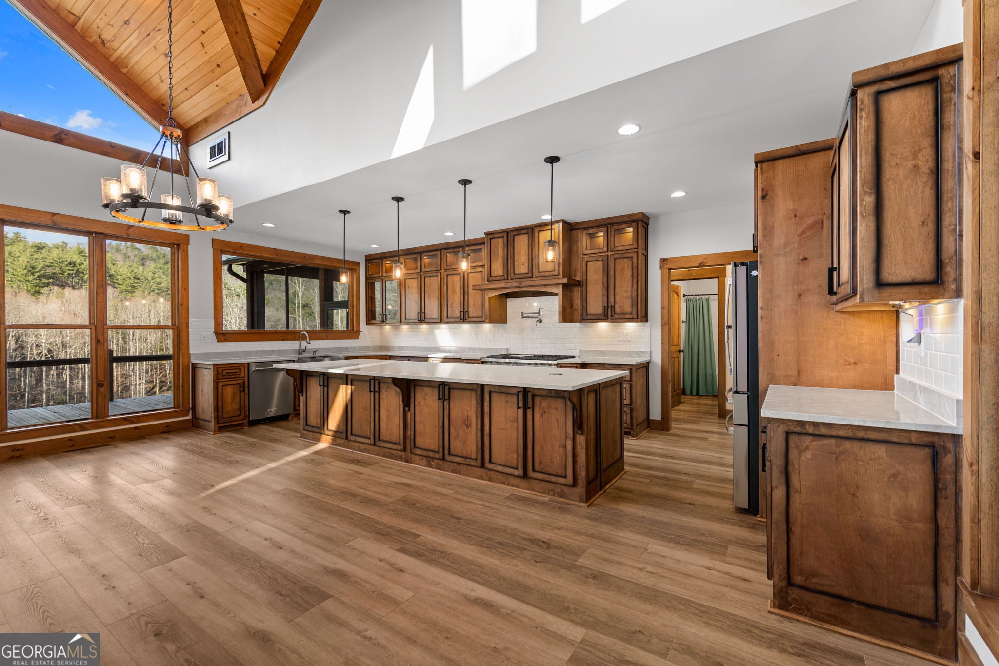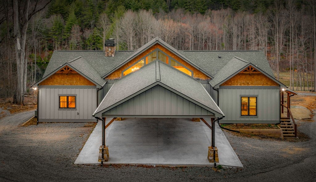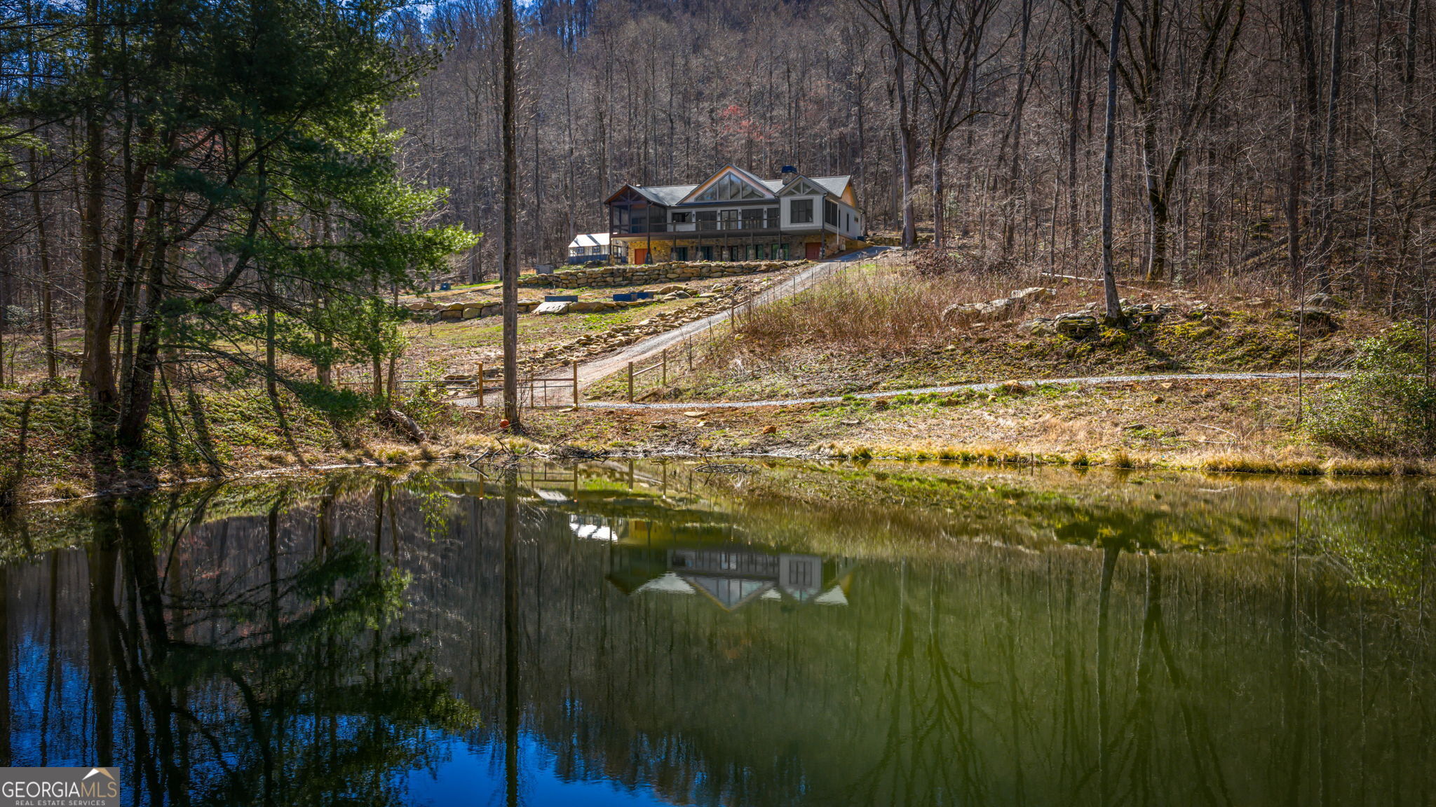 Discover a rare opportunity to own a Craftsman Style Home built in 2023 on 78.96 ACRES in the mountains of Blue Ridge, GA featuring Mountain Views, Higdon Creek frontage, a private pond, large metal building, and direct borders with U.S. FOREST SERVICE LAND-creating exceptional privacy and endless opportunities for outdoor adventure. This thoughtfully designed home offers 3 bedrooms and 3 bathrooms with a flexible layout perfect for multi-generational living, guests, or rental potential. With two kitchens, this home provides convenience and versatility whether youre hosting family, entertaining friends, or creating a separate living space. Inside, youll find comfortable living areas that flow seamlessly to the outdoors where the beauty of the mountains truly shines. Enjoy peaceful mornings and sunset views from the expansive deck overlooking the mountain scenery or relax and entertain on the large patio below. This property is equally impressive outside with features designed for both function and recreation. Drive-through carport and circular driveway for easy access. Huge metal building/barn ideal for equipment, farming, hobbies, workshop space, or storage. Unfinished apartment located in metal building. Private pond perfect for relaxing or enjoying nature. Higdon Creek flowing through the property. Borders U.S. Forest Service land for unmatched privacy and direct access to thousands of acres! With nearly 79 acres of mountain land, this property offers endless possibilities-whether youre dreaming of a private mountain estate, family compound, homestead, recreational retreat, or investment property. Tucked away in a secluded setting yet within driving distance of downtown Blue Ridge, youll enjoy the perfect balance of peaceful mountain living and convenient access to dining, shopping, hiking, and outdoor adventures.