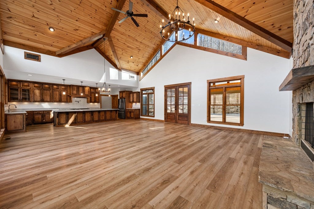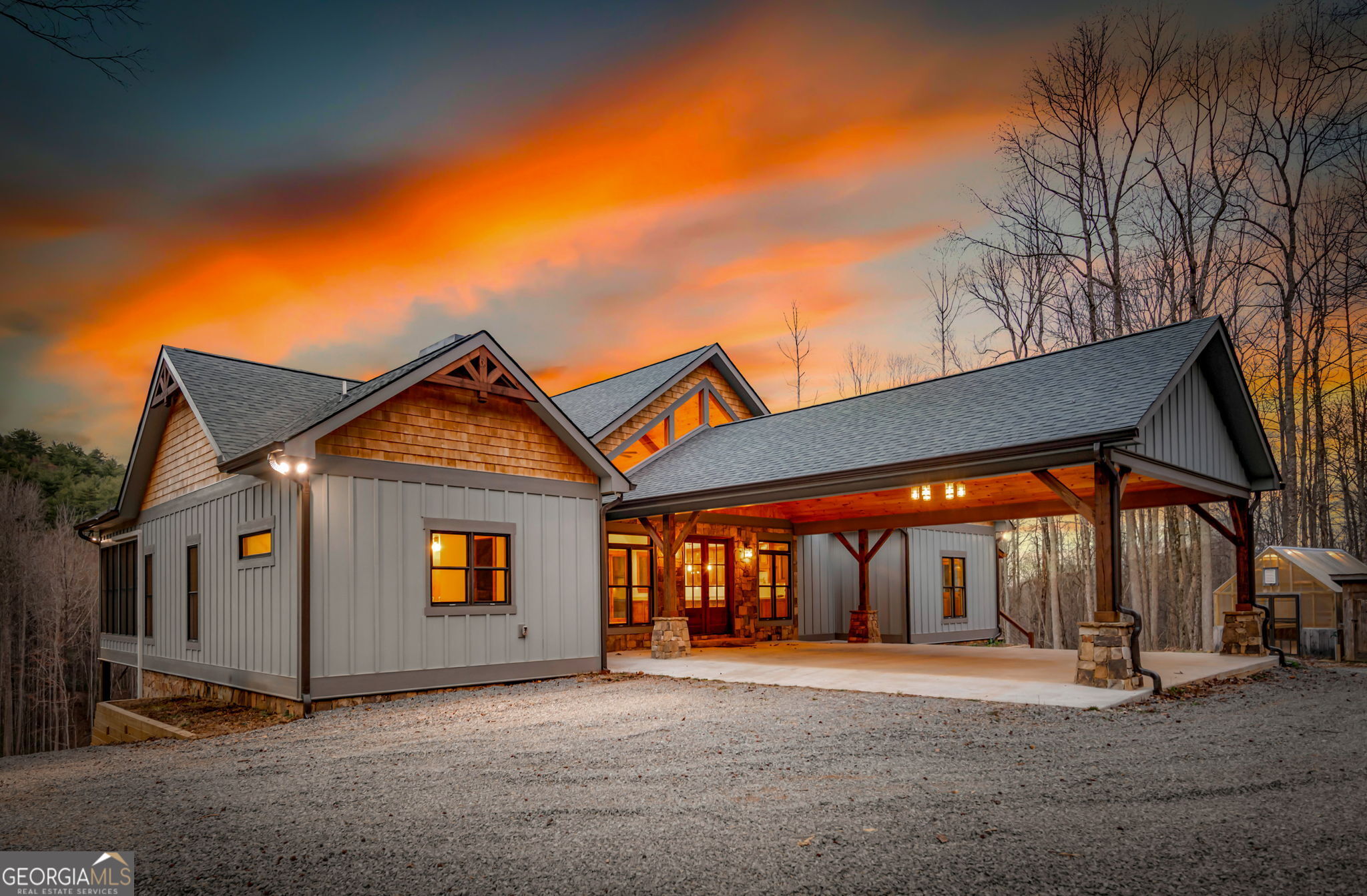 Discover a rare opportunity to own a Craftsman Style Home built in 2023 on 78.96 ACRES in the mountains of Blue Ridge, GA featuring Mountain Views, Higdon Creek frontage, a private pond, large metal building, and direct borders with U.S. FOREST SERVICE LANDcreating exceptional privacy and endless opportunities for outdoor adventure. This thoughtfully designed home offers 3 bedrooms and 3 bathrooms with a flexible layout perfect for multi-generational living, guests, or rental potential. With two kitchens, this home provides convenience and versatility whether youre hosting family, entertaining friends, or creating a separate living space. Inside, youll find comfortable living areas that flow seamlessly to the outdoors where the beauty of the mountains truly shines. Enjoy peaceful mornings and sunset views from the expansive deck overlooking the mountain scenery or relax and entertain on the large patio below. This property is equally impressive outside with features designed for both function and recreation. Drive-through carport and circular driveway for easy access. Huge metal building/barn ideal for equipment, farming, hobbies, workshop space, or storage. Unfinished apartment located in metal building. Private pond perfect for relaxing or enjoying nature. Higdon Creek flowing through the property. Borders U.S. Forest Service land for unmatched privacy and direct access to thousands of acres! With nearly 79 acres of mountain land, this property offers endless possibilitieswhether youre dreaming of a private mountain estate, family compound, homestead, recreational retreat, or investment property. Tucked away in a secluded setting yet within driving distance of downtown Blue Ridge, youll enjoy the perfect balance of peaceful mountain living and convenient access to dining, shopping, hiking, and outdoor adventures.
