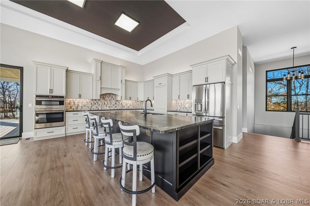 Lakefront, a large dock envelope, deep water, cove protection, and a rare compound-style layout designed for both everyday living and unforgettable entertaining this property delivers a truly exceptional lake lifestyle. The completely flat driveway welcomes you in, setting the tone for easy access and effortless living.