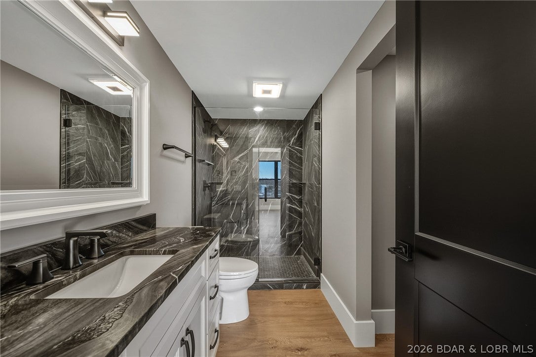 Experience breathtaking views for miles with this extraordinary waterfront property! This stunning home, accompanied by a charming guest house, sits securely on a gated lot and offers the ultimate lakeside living experience. The main house features 5 spacious bedrooms and 4.5 luxurious baths, while the guest house includes 2 additional bedrooms and 1 bath, perfect for hosting family or friends. Step into the exquisite upper-level kitchen, complete with top-of-the-line stainless steel appliances, elegant granite countertops, and an expansive center island that comfortably seats 6 or more. An oversized picture window frames picturesque views of the lake and the enchanting Texas Hill Country, enhancing the inviting atmosphere of the open-concept kitchen, family room, and dining area. Recent Pella windows and doors. The living room exudes warmth with a cozy gas fireplace, soaring ceilings, and large double sliding doors that create a seamless transition to the covered patio, ideal for entertaining or relaxing. Retreat to the serene primary bedroom, which boasts a private balcony offering panoramic vistas. The adjoining primary bath is a spa-like oasis featuring double vanities, a generous walk-in closet, a separate shower, and a jetted tub with stunning views to unwind after a long day. On the upper level, youll also find a guest bedroom with an ensuite bath along with a convenient hall guest bath. The lower level of the main house offers 3 more bedrooms, 2 baths, and a game room that leads directly to the lakefront. The guest house provides a delightful 2-bedroom layout divided by a spacious living room complete with a coffee bar, perfect for leisurely mornings. Includes washer and dryer. Embrace outdoor living at its finest! This property boasts over 150 feet of prime waterfront, featuring 2 boat lifts and a jet ski lift, along with multiple patios and decks that showcase mesmerizing views of the lake. The Community has a boat ramp for homeowner use. To make it even more enticing, youll discover a putting green and an exhilarating water slide, making this the ultimate lake house retreat. This exceptional home comes fully furnished and has an elevator! Start making unforgettable memories today!