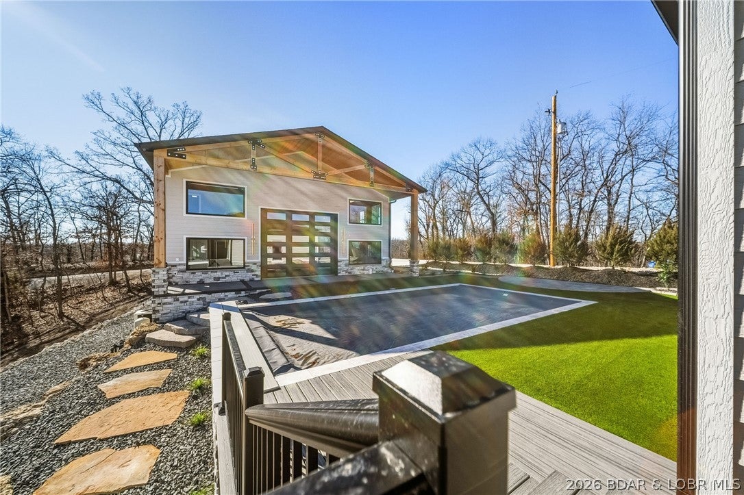 Lakefront, a large dock envelope, deep water, cove protection, and a rare compound-style layout designed for both everyday living and unforgettable entertaining this property delivers a truly exceptional lake lifestyle. The completely flat driveway welcomes you in, setting the tone for easy access and effortless living. To the left sits the private main residence, thoughtfully designed to maximize lake views with an abundance of windows that flood the home with natural light. To the right of the main home, a resort-style pool and courtyard create the heart of the property perfect for entertaining, relaxing, or enjoying long summer days by the water. This central gathering space gives the home a true compound feel that is incredibly rare at the lake. Included with the property is an additional on-water lot offering approximately 130 feet of lake frontage, providing dock potential and exceptional flexibility for future waterfront expansion. This property truly has it all views, space, and versatility. Investors this is a rare opportunity and is an absolute must-see. Brand new 2 slip dock available for additional cost OR dock included in a full price contract for the month of March.