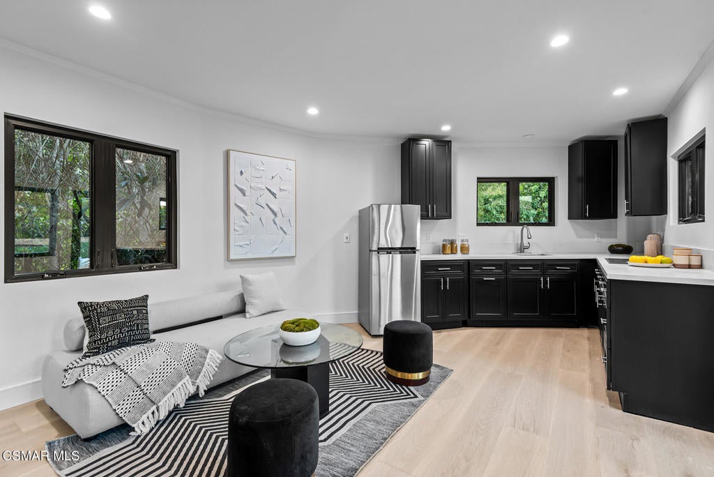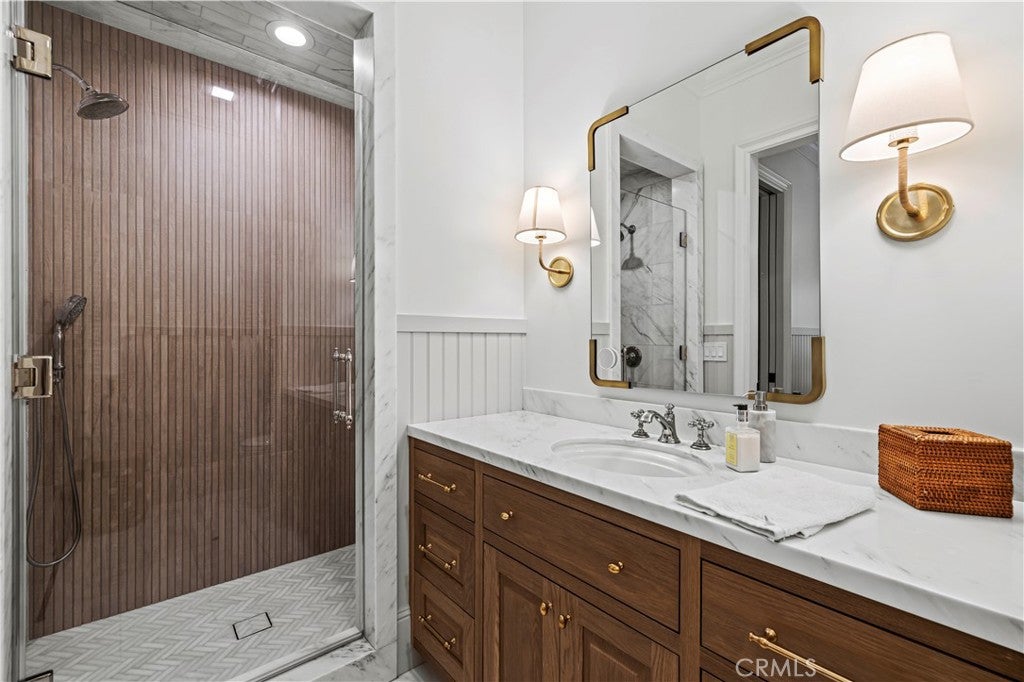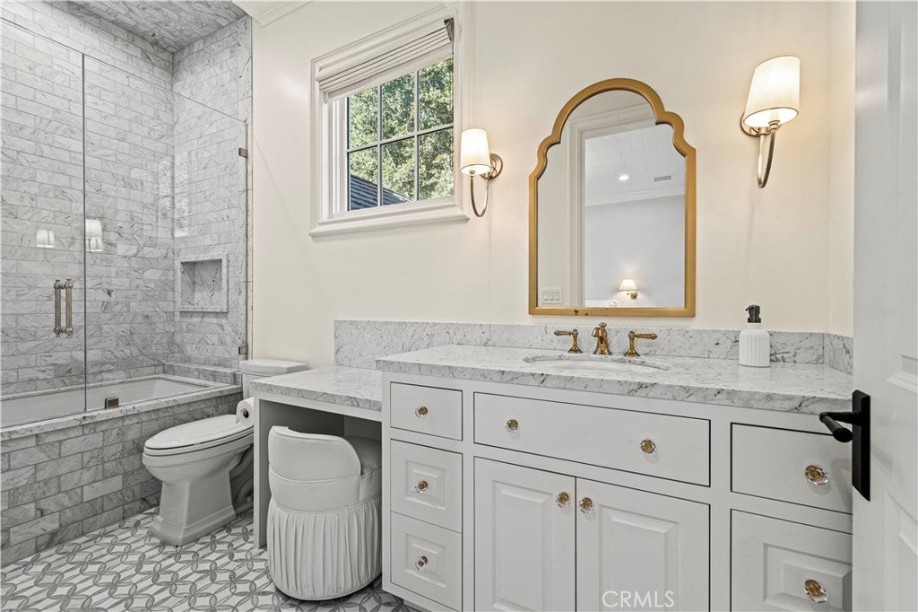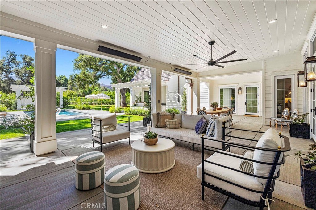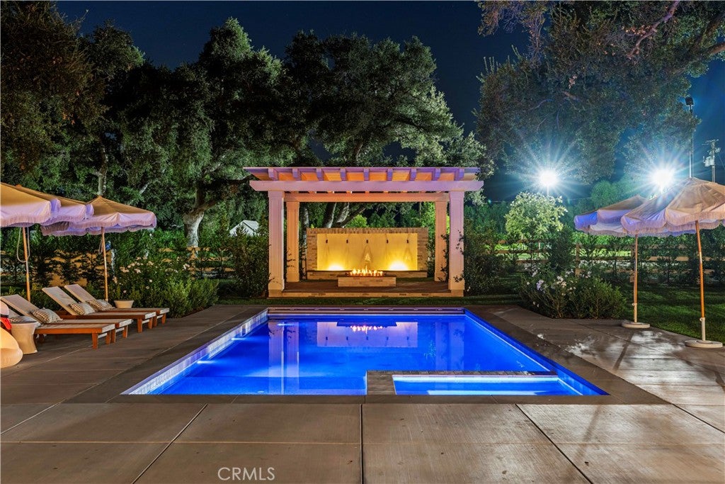 North Ranch masterpiece! Completely rebuilt and reimagined modern traditional with the ultimate end of cul-de-sac location in the heart of North Ranch! Spanning approximately 7300 square feet with every amenity desired! Professionally designed and masterfully built using the very finest finishes throughout! Interior Features include an all new center island kitchen which boasts state of the art custom cabinetry, quartzite counters and top of the line appliances. The wide open floorplan is graced with massive two story custom ceilings, wood floors, floor to ceiling stone fireplaces and much more. The awe inspiring great room is second to none and provides a walk in wet bar and wine cellar. Upstairs there is an awesome bonus area/lounge, 3 large secondary en-suite bedrooms and an exceptional primary suite that will leave you speechless. The primary suite is graced with custom wood detailed ceilings, fireplace, two finished walk in closets and a Four Seasons quality bathroom. There is also a large 5th en-suite bedroom on the main level. The resort quality grounds are second to none with an epic SELF CONTAINED guest apartment with separate entrance. The completely private backyard also provides a remodeled pool and spa, firepit, all new outdoor kitchen and an abundance of manicured lawns. Other amenities include new doors and windows, new HVAC and too much more to mention. This is a rare offering for an extraordinary like new estate with the perfect location and setting!!