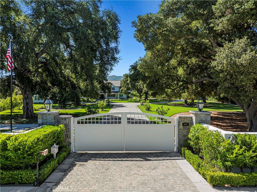 Tucked behind private gates and approached by a long paver stone driveway, this truly magnificent Sand Canyon estate spans approximately 7,815 sqft across five exquisitely manicured acres. The 6,800 sqft main residence is complemented by a spacious 653 sqft ADU above the attached three car garage, along with a separate two car carriage garage connected to a 362 square foot gym or office.