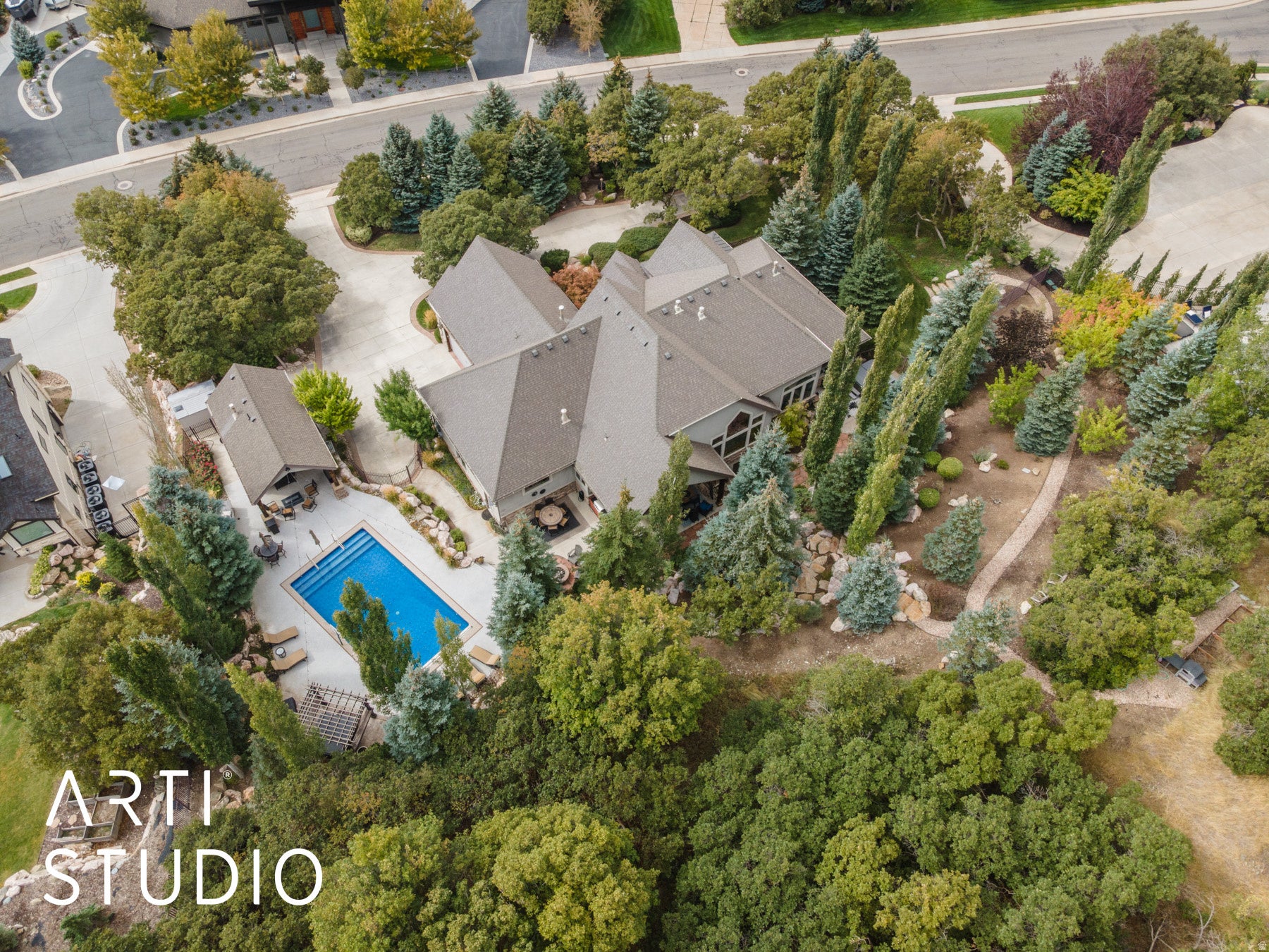 Heres your chance to own your own private mountain resort! Perched gracefully on 3.67 private acres along Laytons coveted East Bench, this extraordinary Estate offers a rare blend of refined craftsmanship, natural beauty, and resort-inspired living. Framed by sweeping, unobstructed vistas of the Wasatch Mountains, valley below, and shimmering Great Salt Lake, the setting is nothing short of breathtaking. A winding circular drive, bordered by curated stonework and artful landscaping, sets a grand tone upon arrival. The residence itself is a masterclass in design, where timeless materials and impeccable attention to detail converge. Inside, a dramatic foyer welcomes you with rich hardwood flooring, new carpet throughout, soaring ceilings with natural beams, and a striking floor-to-ceiling stone fireplace-creating an atmosphere both warm and sophisticated. The homes expansive layout is designed for both elegant entertaining and everyday comfort. A vaulted great room captures natural light through oversized picture windows, seamlessly connecting indoor living with the surrounding landscape. Multiple fireplaces throughout the home add depth and ambiance, while custom millwork, solid alder doors, and refined finishes underscore the homes elevated character. At the heart of the home, the gourmet kitchen is thoughtfully appointed for culinary excellence, featuring premium appliances, double ovens, a warming drawer, and an oversized granite island ideal for gathering. A butlers pantry with additional cooling drawers enhances both functionality and style, while a nearby wet bar-complete with beverage fridge and custom cabinetry-creates the perfect setting for hosting. The primary suite is a serene retreat, offering a private sanctuary with its own fireplace, spa-inspired bath with heated floors, soaking tub, dual vanities, and a spacious walk-in closet. Direct access to an outdoor hot tub invites relaxation beneath the stars. Additional spaces include a beautifully appointed home office with private entrance, formal and informal dining areas, and a thoughtfully designed mudroom and laundry area. The lower level continues the homes entertaining focus with a large gathering space, fireplace, game area, and a full bar with wine cellar -perfect for hosting on any scale. Outdoors, the estate transforms into a private resort. A heated in-ground pool with automatic cover anchors the backyard, complemented by a pool house featuring a kitchenette and changing facilities. Expansive covered patios, fire features, and multiple seating areas provide year-round enjoyment in a setting designed for both relaxation and celebration. Car enthusiasts and hobbyists will appreciate the oversized 3-car garage with additional toy storage, while modern conveniences such as a whole-home generator, tankless water heating, and advanced air systems ensure comfort and efficiency. Bordering protected land, this property offers exceptional privacy while still being moments from city amenities! You are only 20 minutes from a world renowned ski resort, and 25 minutes to Pineview reservoir. Want more, there are hiking and biking trails just a few hundred yards from your driveway, -This estate creates a lifestyle that is as tranquil yet convenient.