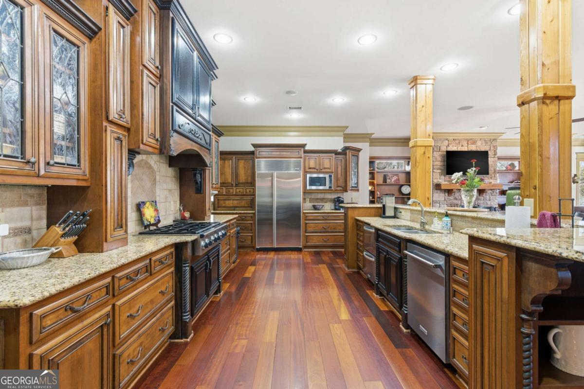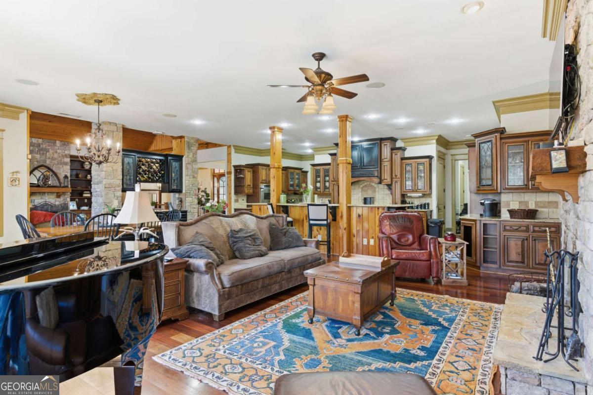 **PRICE REFRESH**FIRST TIME ON THE MARKET! A RARE OPPORTUNITY TO OWN A SOUTHERN ESTATE ON 5 ACRES IN DAWSONVILLES EXCLUSIVE GATED COMMUNITY! Welcome to your own private retreat-where timeless Southern elegance meets modern luxury. This hidden gem, tucked away on more than five acres, offers the rare combination of complete privacy, breathtaking natural beauty, and the warmth of refined design. From the moment you arrive, the setting captures your heart. A long, tree-lined driveway winds its way to a circular drive surrounded by lush landscaping, while a grand rocking-chair front porch greets you with the charm and grace of true Southern hospitality. Every detail of this estate has been thoughtfully reimagined with over 300,000 in custom upgrades since 2019, creating a home that is both sophisticated and family-friendly. Inside, sunlight spills across gleaming hardwoods, illuminating a graceful dining room, private office, and an inviting great room anchored by soaring windows with serene views of the backyard oasis. At the heart of the home is a designer kitchen that any chef or busy mom will adore. Outfitted with Sub-Zero and Wolf appliances, a prep kitchen, and a custom open layout, its designed for effortless family meals, entertaining, and everything in between. The main level primary suite feels like a true sanctuary, with a spa-inspired bath, an oversized walk in closet with its own washer/dryer, and tranquil views that make mornings feel like a retreat. Upstairs, four spacious bedrooms each with its own private bath provide every family member or guest their own personal haven. The finished terrace level transforms into an entertainers dream: a full second kitchen, fitness/playroom, bedroom and bath, plus a cozy fireplace perfect for gatherings. Step outside, and the lifestyle youve dreamed of unfolds a sparkling heated saltwater pool and hot tub, pool house, and covered outdoor lounge where laughter and memories come alive, all framed by mountain breezes and the sounds of nature. Peaceful, private, and perfectly polished. This is more that a home-its an irreplaceable lifestyle, nestled in one of Dawsonvilles most exclusive gated communities yet just minutes from every modern convenience. Located near North Georgia Premium Outlets, Lake Lanier, restaurants, fantastic parks and the majestic Blue Ridge Mountains, this home offers a lifestyle that dreams are made of. With wineries not to far away, youll have endless opportunities to indulge in the finest that Georgia has to offer. Welcome Home!
