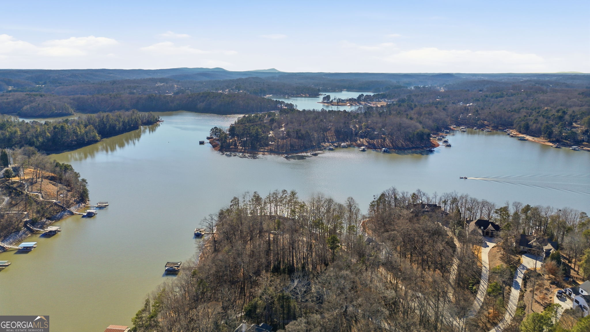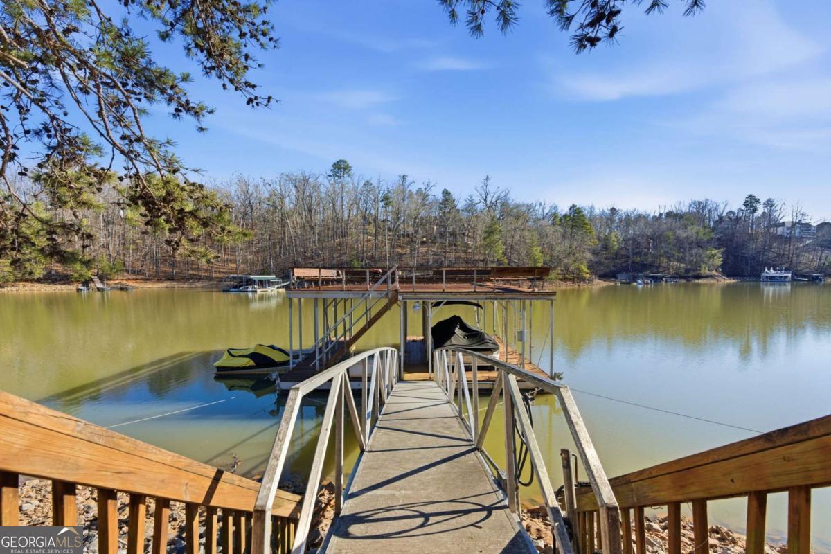 A rare opportunity to own an extraordinary lakefront retreat with deepwater access year-round where luxury, comfort, and thoughtful design come together effortlessly. This sprawling custom-built ranch with a fully finished terrace level was designed for both grand entertaining and everyday ease. A private elevator connects the main and terrace levels, making multi-generational living seamless and allowing you to enjoy the home for years to come. Every room is tastefully curated with exceptional craftsmanship - coffered ceilings, vaulted tongue-and-groove details, elegant barrel vaults, custom cabinetry, and stone details create warmth and architectural interest throughout. The main-level primary suite is a true sanctuary, featuring separate vanities, his-and-her walk-in closets, and an expansive dual shower in the en suite. At the heart of the home, the expansive main kitchen is a chefs dream. Outfitted with a 6-burner gas cooktop, double ovens, warming drawer, refrigerated drawers, and abundant custom cabinetry, blending beauty with high performance. A spacious island with breakfast bar anchors the room, while natural light pours in, creating an inviting space where everyone will gather. Just off the fireside keeping room youll find a graceful spiral staircase leading to the sun-drenched solarium, a peaceful retreat to unwind with a book or morning coffee. All secondary bedrooms are generously sized and offer private en suites. Two dedicated offices provide ideal work-from-home flexibility, while the terrace level boasts high ceilings, a game room, media room, and even a second kitchen - perfect for hosting unforgettable gatherings. Above the three-car garage, a private guest suite offers a bedroom, living area, full bath, and kitchenette - ideal for extended stays. Outdoors, a gentle path leads to your 32x32 double-slip dock with party deck and waverunner floats - just hop on the golf cart and head to the water where youll enjoy deepwater access year-round. Entertain with ease on the curved, double-stacked deck designed for grilling, relaxing in the hot tub, or unwinding by the beautiful outdoor fireplace and patio. Meticulously maintained with pride of ownership evident at every turn, this is a must-tour lake property offering more than can be listed here - an exceptional place to call home.