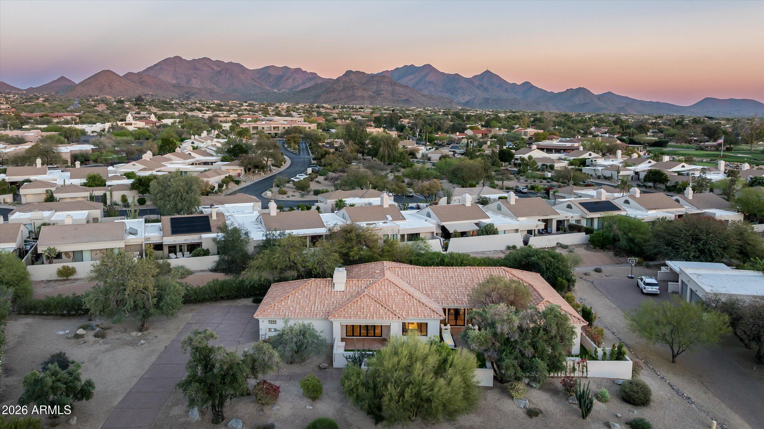 Masterfully remodeled single-level split floor plan home located within the 24-hour guard-gated golf community of Pinnacle Peak Country Club. Designed to embrace Arizonas signature indoor-outdoor lifestyle, multiple expansive sliding doors and an open-concept layout create a seamless connection between the main living spaces, the resort-style courtyard, and the backyard.This 4-bedroom, 3-bathroom residence showcases high-end designer finishes throughout, including wide-plank flooring, stone accents, custom cabinetry, Taj Mahal quartz, a stunning iron entry door, and soaring vaulted ceilings complemented by designer lighting. An elegant hidden butlers pantry complements the chefs kitchen - perfect for entertaining and additional prep space. The outdoor living environment has been thoughtfully designed with custom landscaping, highlighted by three beautiful fountains, two fire pits, and multiple spaces to gather, creating a true private and relaxing atmosphere.The luxurious primary suite offers a peaceful retreat, complete with a spa-inspired bathroom featuring premium finishes, a spacious walk-in shower, soaking tub, and a thoughtful layout that delivers both comfort and sophistication.