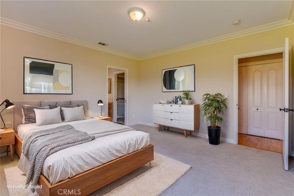 Coastal living at its best in the desirable Marine Terrace neighborhood, just steps to beach access. Built in 2005 and thoughtfully designed for the Central Coast climate, this beautifully crafted home sits on a corner lot and offers approximately 2,303 sq. ft. of living space.The flexible floor plan includes 3 bedrooms, a study/office, and 3.5 bathrooms. The main level features a private secondary bedroom suite with exterior access, an additional bedroom, study/office, hall bath, and interior laundry. The upper level offers the primary suite along with the main living areas, including the kitchen, dining room, living room, powder room, and access to an exterior deck ideal for enjoying the coastal air.The kitchen features natural birch cabinetry, granite countertops, Dacor stainless appliances, Grohe faucet, Kohler chefs sink, prep sink, and pantry.Quality craftsmanship throughout includes Andersen casement windows, durable Hardie board siding and shingles, solid core interior doors, and Emtek burnished bronze hardware. Interior finishes include maple hardwood floors in the foyer, stairway, upper hall, powder room, dining room, and kitchen, crown molding in downstairs bedrooms, tile bathroom floors, and carpeted bedrooms.A well-built coastal home offering comfort, craftsmanship, and a prime location near the scenic Fiscalini Preserve nature trails and the stunning Cambria coastline.