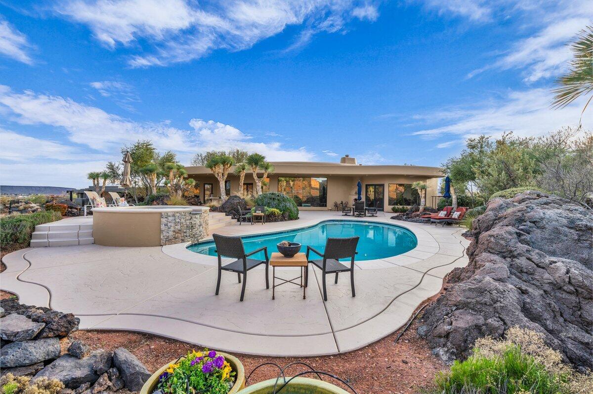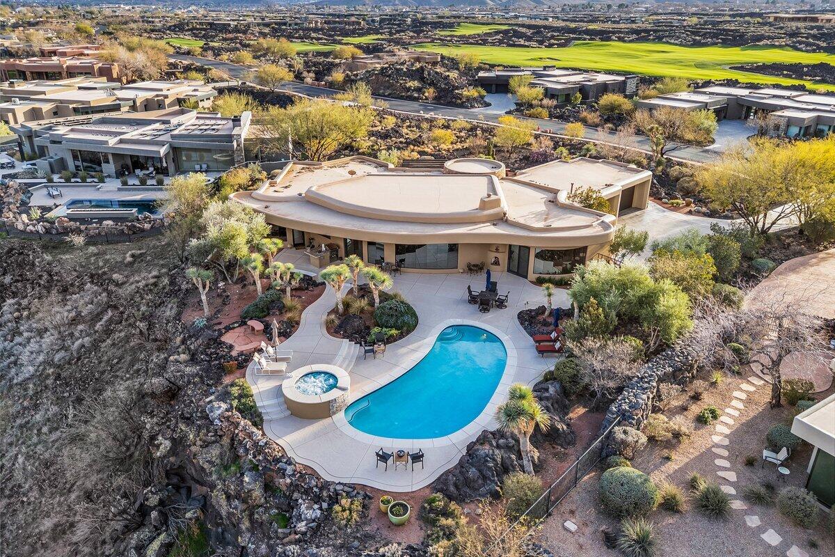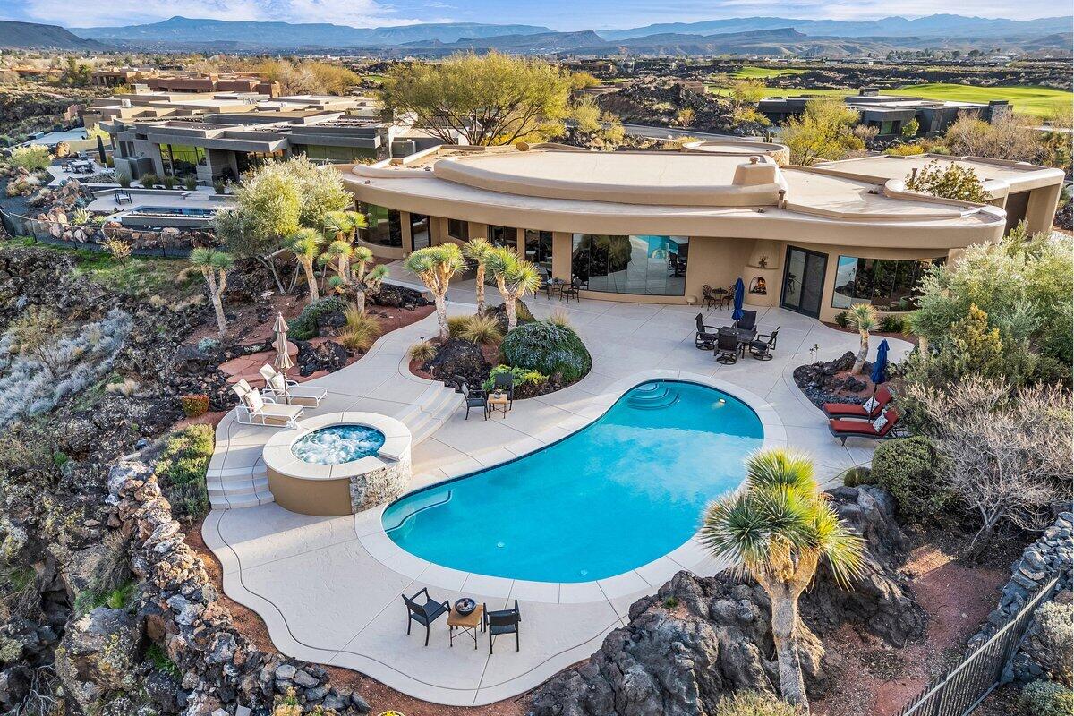 Welcome to Villa BellaVista, A true jewel of Arrowhead Lakes; this Mediterranean-style lakefront estate offers exceptional lake and mountain views, curb appeal, and a rare combination of timeless architecture and modern upgrades throughout. The first floor offers exceptional flexibility with two primary bedrooms, both featuring ensuite bathrooms, along with two dedicated office spaces, ideal for multi-generational living, remote work, or guest accommodations. The open-concept floor plan features new flooring throughout and a fully remodeled kitchen with custom cabinetry, premium appliances, statement range hood, expansive island, that seamlessly flows into the living and dining areas. New bifold doors that effortlessly open to the covered patio, pool, and lake, creating an ideal indoor-outdoor living. All four bathrooms were upgraded in 2024. The primary suite was also remodeled and offers a spacious retreat with a spa-inspired ensuite. Additional improvements include a new first-floor office, upgraded laundry room, removal of dated columns and soffits, new Low-E tinted windows, new hot water heater, and a spacious upper-level loft perfect for a game room or additional living space. and lake, creating an ideal indoor-outdoor living. All four bathrooms were upgraded in 2024. The primary suite was also remodeled and offers a spacious retreat with a spa-inspired ensuite. Additional improvements include a new first-floor office, upgraded laundry room, removal of dated columns and soffits, new Low-E tinted windows, new hot water heater, and a spacious upper-level loft perfect for a game room or additional living space. Outdoor highlights include a 30-ft dock with stone steps, new pool heater, and a mister system for year-round enjoyment. A rare opportunity to own a thoughtfully updated waterfront residence in Arrowhead Lakes that is unparalleled in its amenities, space and location.