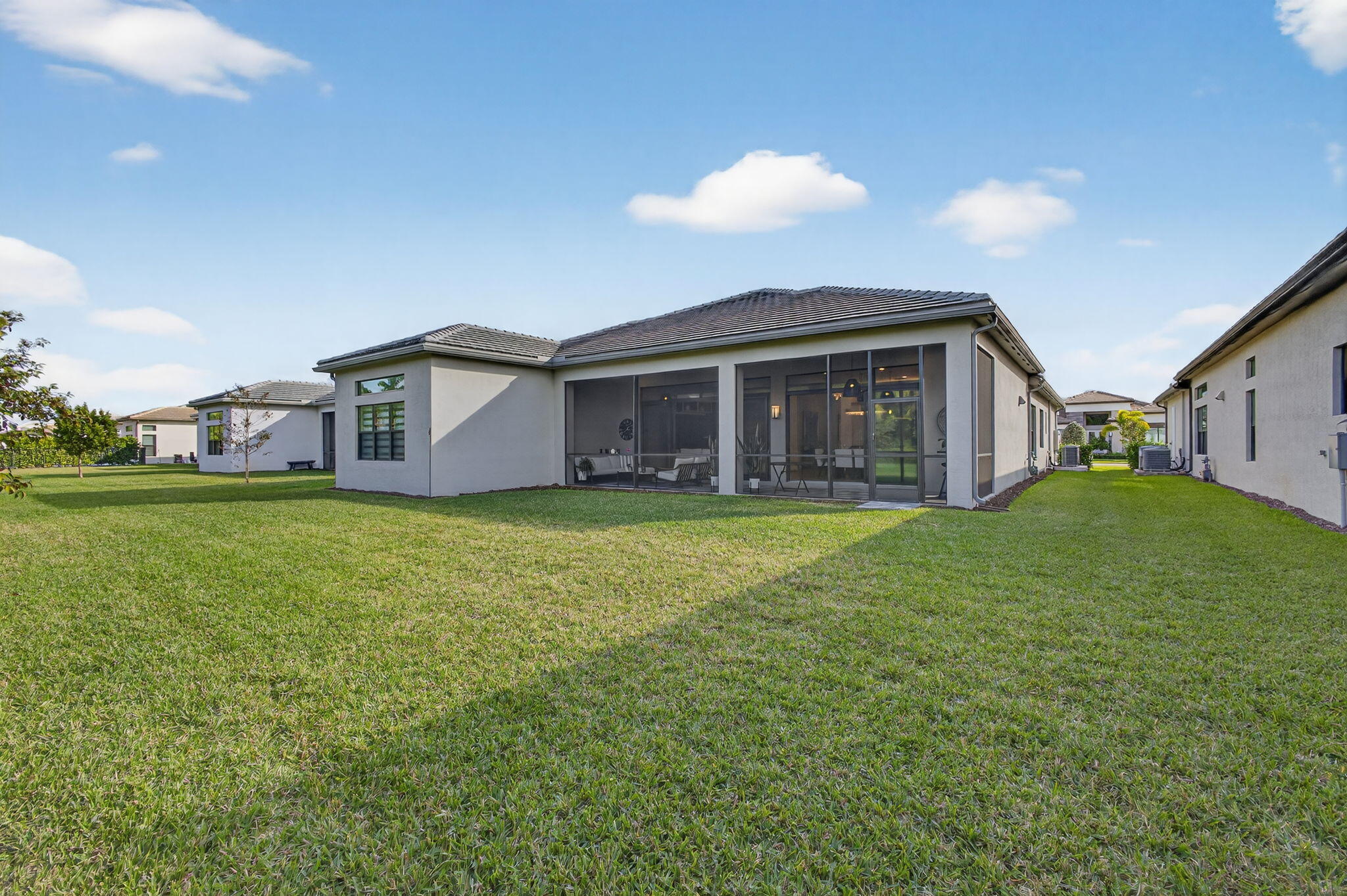 Welcome to luxury living in Valencia Grand, a premier gated 55 community. This desirable NAPA model offers 4 bedrooms plus Clubroom/office, NO zero lot line, and a private backyard, providing exceptional space and privacy on the expanded screened patio. A beautifully designed home offers a split-bedroom floor plan, soaring ceilings, fabulous custom walk-in closets, and wide-plank wood flooring throughout. Elegant finishes include quartzite countertops, custom cabinetry, and designer lighting, creating a home that truly shows like a model.The chefs kitchen is ideal for entertaining with premium finishes and generous storage, while the large laundry room with sink and cabinetry adds everyday convenience. Enjoy the Florida lifestyle in this gorgeous home! An abundance of upgrades, such as the AC Whole House water filtration system. The Community boasts a 44,000 sq ft Clubhouse, Indoor Pickle Ball, Pro Shop, Tennis Courts, Grand Ball Room, Cafe, Exercise Studio & Fitness Center, Bocce, Yoga Zen Garden, Salon for haircare, Facials & Massages, 10 Miles to the Beach & minutes to all your shopping Needs. A Great place to call home!!