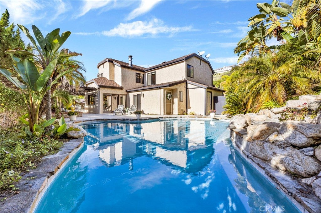 If youve ever wanted a circular staircase rising from a formal entry hall, here is your home!! This home is in the Emerald Isle distrct, one of the most coveted locations in the hills of Glendale. Its modern version of English Tudor style and three-car garage coupled with beautiful landscaping and an expansive frontage give it great curb appeal. As you enter the home through tall double doors, on the right is a step-down living room that welcomes you with high, open beam ceilings and the warmth of an inviting fireplace. Immediately adjacent is the spacious formal dining room which opens to the kitchen/family room area. The kitchen has custom-made cabinets that have pullout shelves, a large pantry, and deep drawers to house pots and pans for maximum functionality. Other features include a gas cooktop, double electric ovens, granite countertops, a heat lamp to keep food warm, a breakfast bar, a breakfast area -- all open to the family room with easy access to the backyard that has a covered patio and waterfall pool with a solar heating system and removeable fence. The family room has a fireplace and concealed doors that allow the room to be closed off from the entry hall. Also on the main floor is one ensuite bedroom with a 3/4 bath and separate entrance the bath can also be accessed from the pool area. The other three bedrooms are upstairs where there is a massive primary suite that includes a large walk-in closet, sitting room or office area, and full bath. The other two bedrooms share a Jack & Jill bathroom and have walk-in closets. At the top of the stairs, there is a landing area that can be used for an office or simply a quiet space to relax. Other amenities include a 3-zone HVAC system with separate thermostats, tankless water heater with recirculation pump, copper plumbing, attic fan with thermostat, central vacuum system, and a large storage shed attached to the side of the garage. This wonderful home is a must-see!