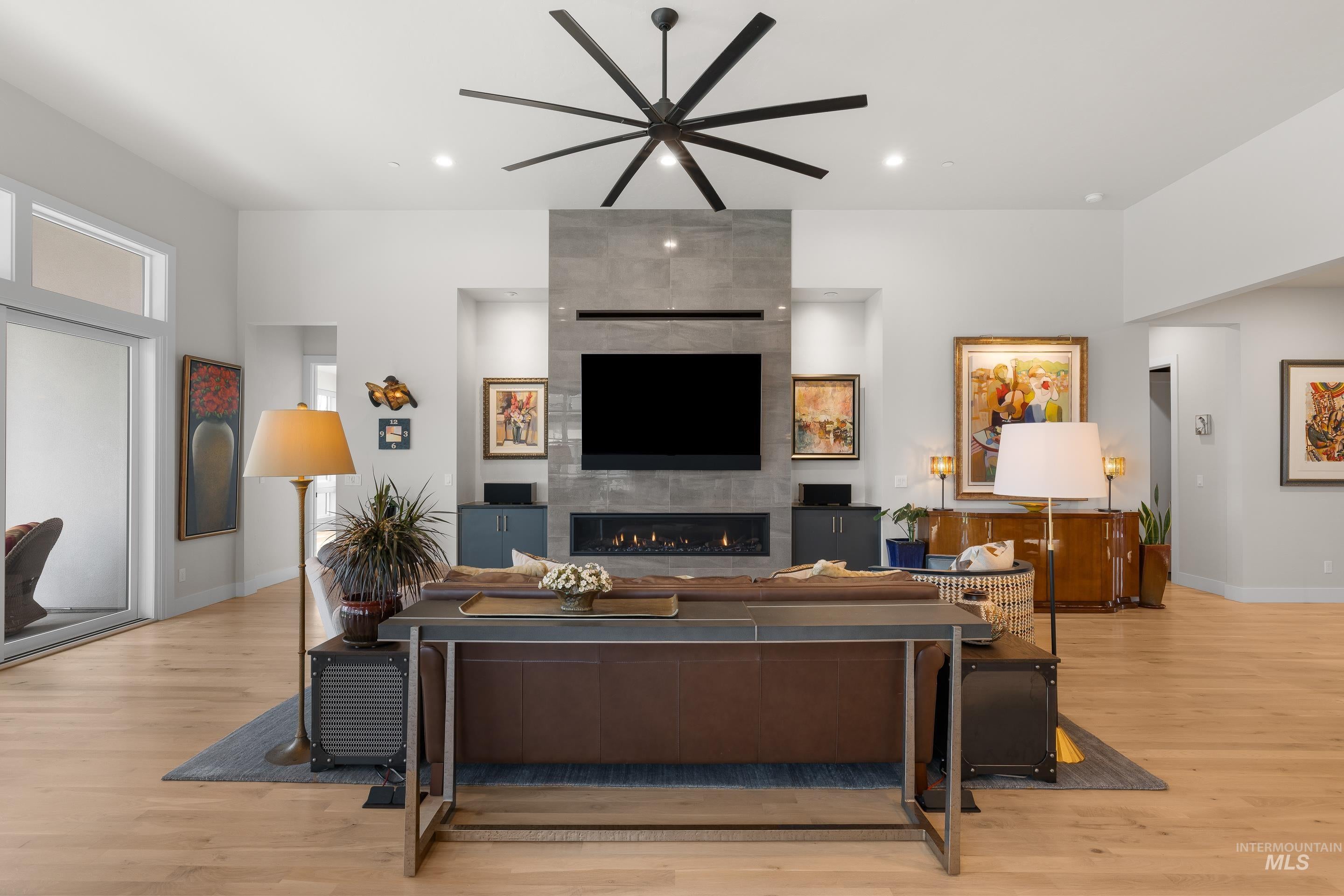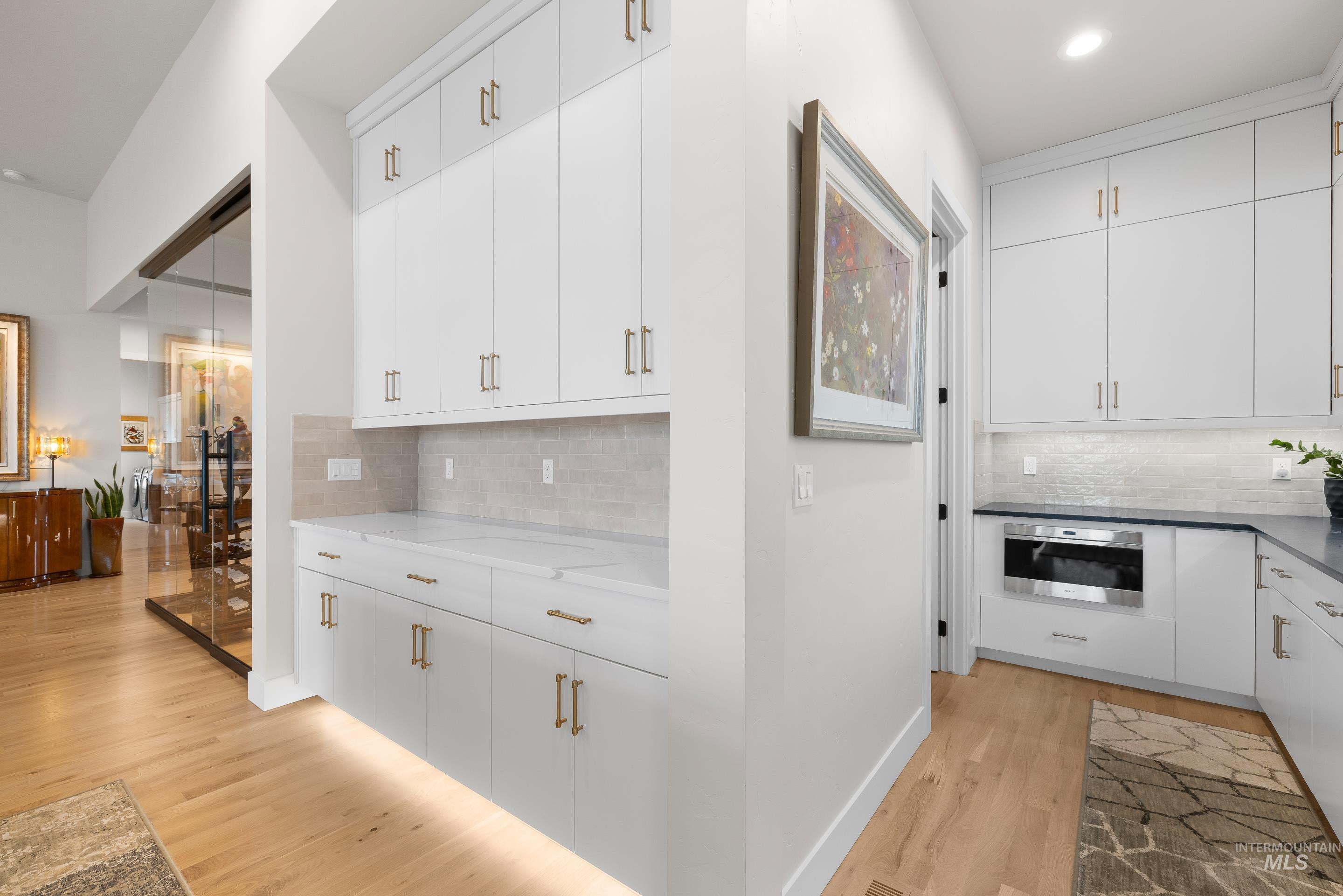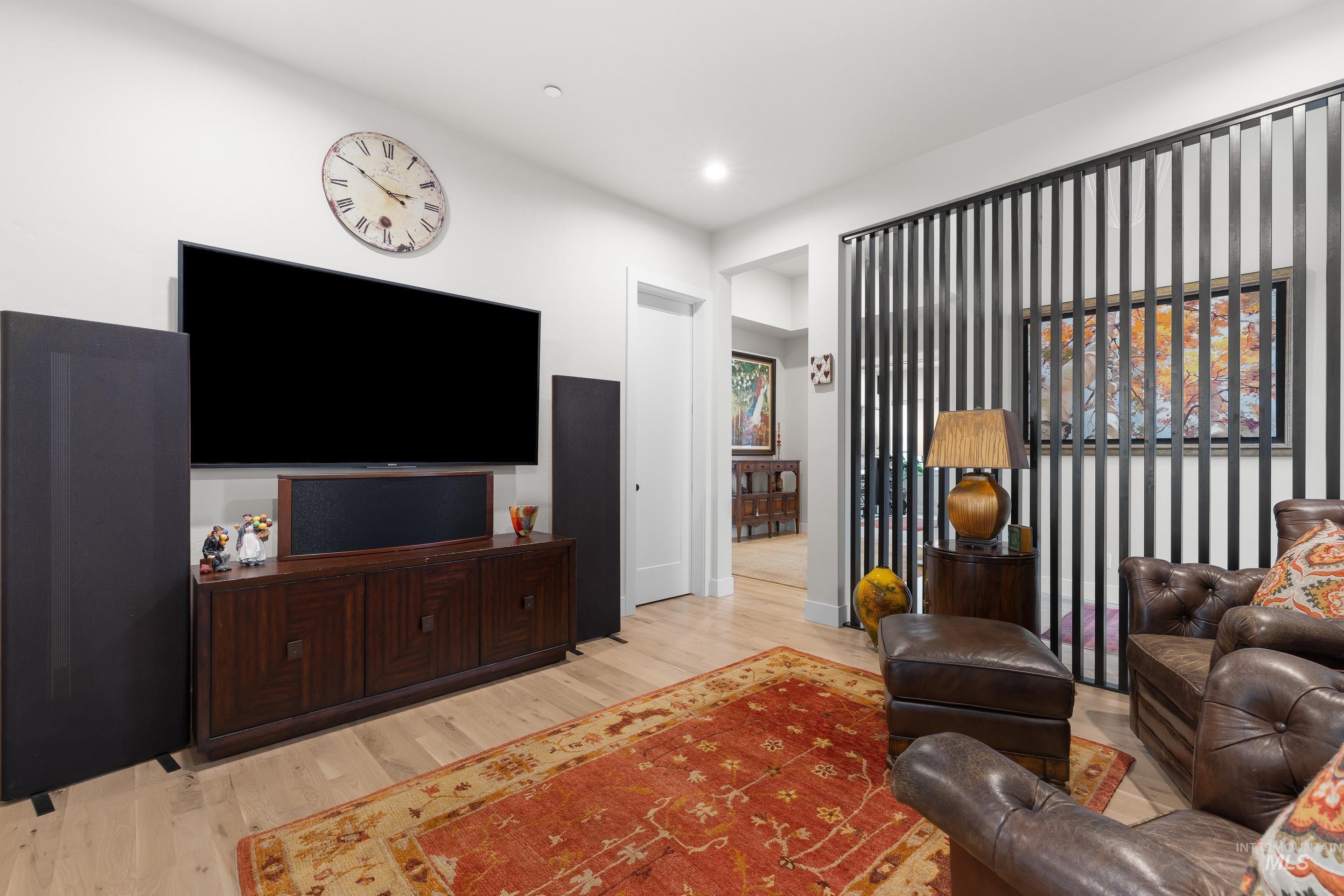 Experience the finest luxury living that NE Boise has to offer in this modern Harris North property. Enjoy incredible views of the Boise Foothills off the main living areas and primary suite. Abundant natural light floods into this open concept single level floor plan. Expansive kitchen with Wolf appliances and butlers pantry. The main area includes a linear fireplace and sliders that open up to the covered patio with premium low maintenance turf. The real show stopper of this space is the wine cellar, finished with glass walls and a climate controlled humidifying system. Large primary suite with dual vanities, and a luxurious walk in shower opposite the soaking tub. This property lives large with a guest suite, Jack and Jill bedroom with shared bathroom, bonus room and a den. Two separate garage bays fitting three units finished with epoxy floors. Upgrades include real hardwood floors, built in audio speaker system with upgraded low voltage package, two dishwashers, under cabinet lighting, premium cabinetry with dovetail cabinet drawers, electric blinds and more! Harris North includes a community pool, easy access to DT Boise, local rivers, parks and Lucky Peak recreation.