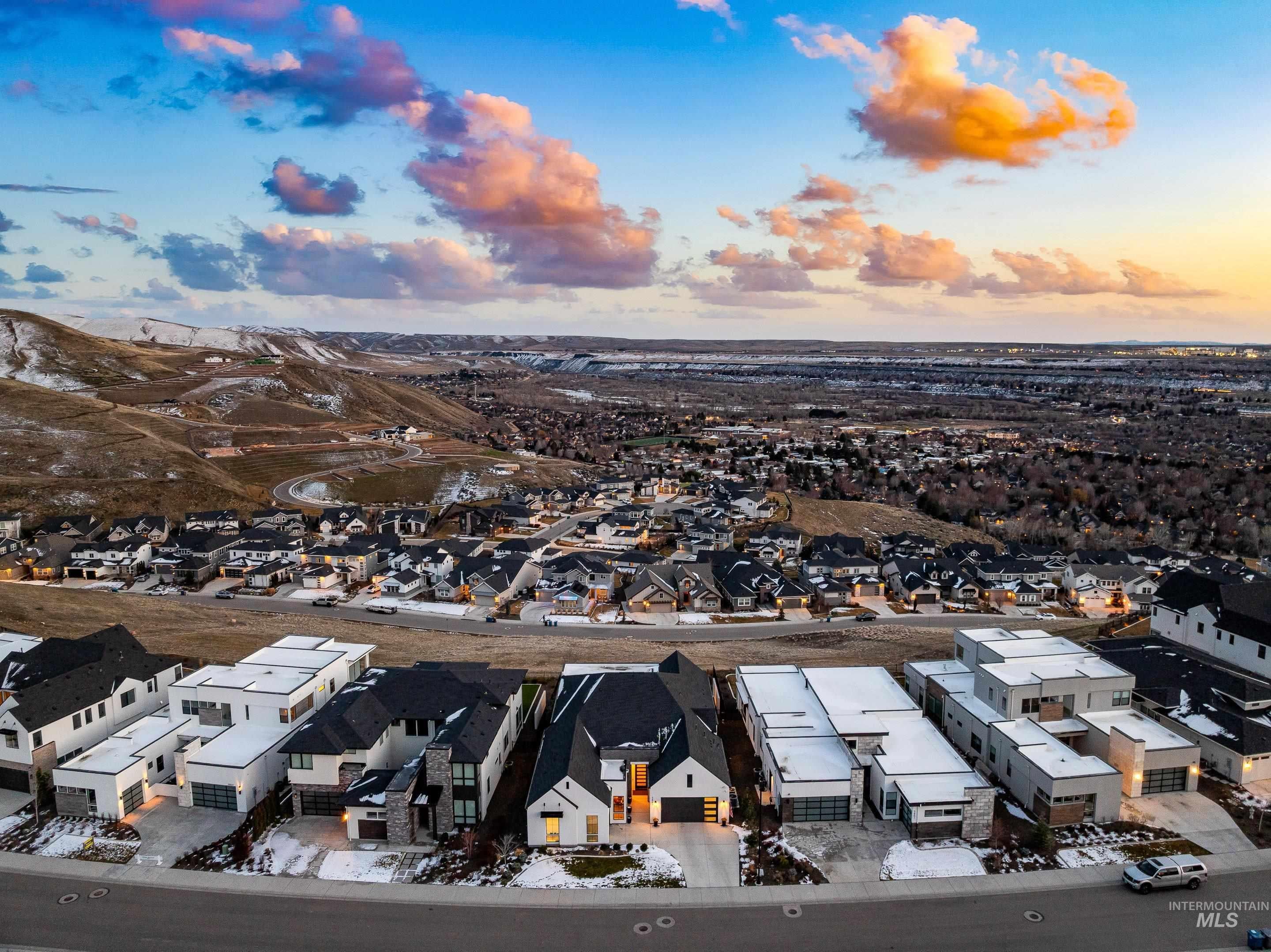 Experience the finest luxury living that NE Boise has to offer in this modern Harris North property. Enjoy incredible views of the Boise Foothills off the main living areas and primary suite. Abundant natural light floods into this open concept single level floor plan. Expansive kitchen with Wolf appliances and butlers pantry.