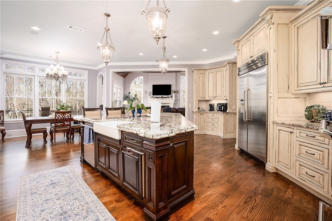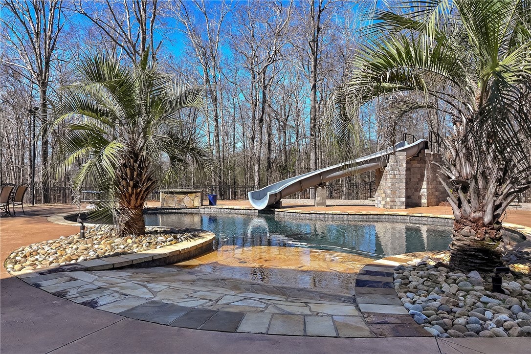 Welcome to one of Auburns most exclusive private estates, where nearly six acres and almost 10,000 square feet come together inside the city limits. From the moment you arrive, the setting sets this home apart. Two separate lots provide flexibility. Keep both for unmatched seclusion, sell the additional lot, or build another home to keep loved ones close. Inside, the main level offers over 4,000 square feet designed for everyday comfort and large scale entertaining. The primary suite is a true retreat featuring oversized closets with dressing areas and built in dressers. The primary bath includes heated floors, an oversized shower, and a soaking tub, creating a spa like experience at home. A private guest suite on the main level provides an ideal option without stairs. The kitchen is fully equipped with all appliances remaining, including a dedicated ice maker, and opens to the breakfast room and keeping room with fireplace. A separate great room with fireplace, formal dining room, dedicated office, and laundry room with additional workspace complete the first floor. Upstairs features five additional bedrooms and three full baths, including two suites with private bath access and three bedrooms connected by a shared bath. The finished basement adds more than 3,300 square feet of exceptional living space with a full second kitchen and ice maker, theatre room, large open living area with fireplace, game room with exterior access, workout space with a future bath framed, safe room with cinder block walls, extensive storage. A storage garage is also accessible from this level. Outdoor living is where this property truly shines. The saltwater pool features zero entry, dolphin slide, diving board, and gas heater. A hot tub remains. The covered patio with fireplace, pool bath access, lighted basketball court, gas firepit, fenced yard, dog wash and run, RV parking/hookup & generator round out the back yard. Opportunities of this caliber within Auburn city limits are rare.