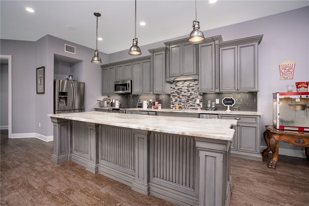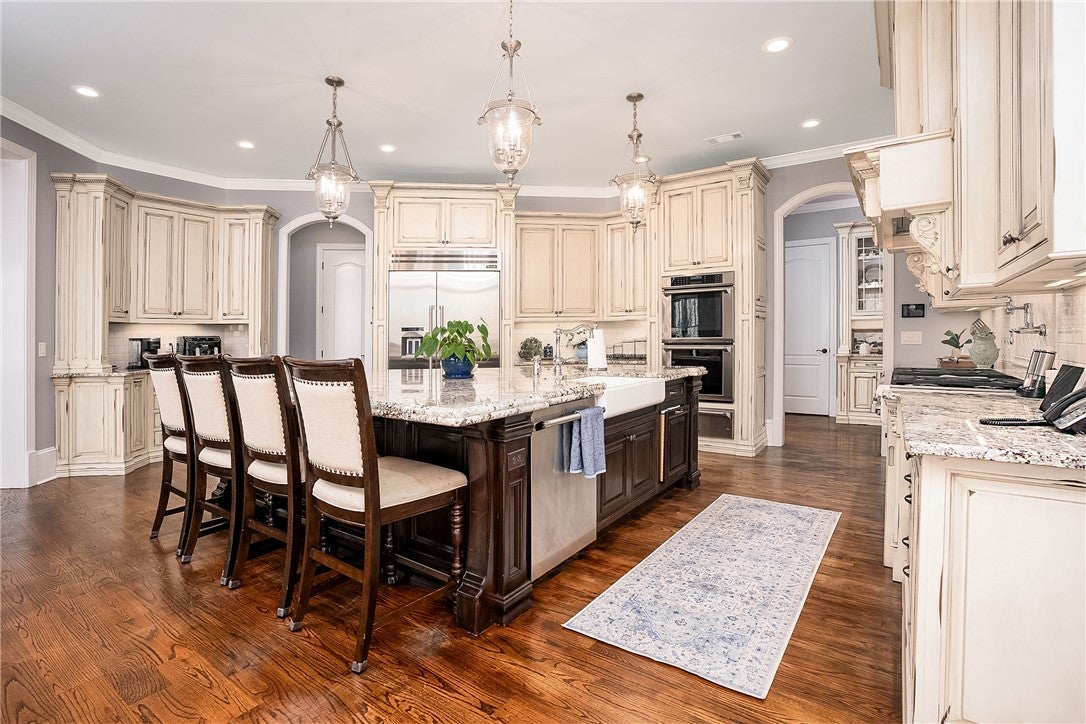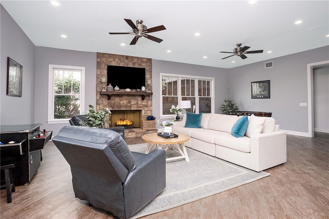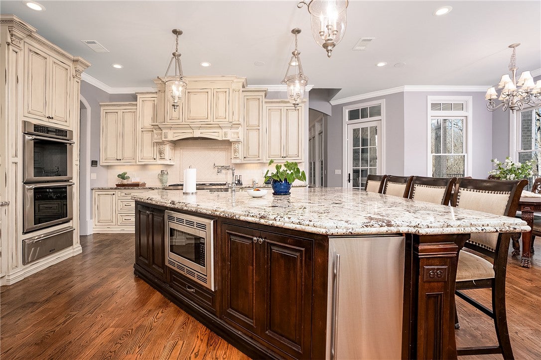 Escape to your resort-caliber property where architectural details and sophistication meet fun in the sun! Situated on a private .86ac lot, this 1.5-story masterpiece offers over 7,400sf of meticulously curated living space, and outstanding recreation areas that are designed specifically for those who host with flair. This beautiful property has 5-bedrooms, 7-bath areas, 4-fireplaces, 4-car garage, office/den, and a formal dining room. Take note of the remarkable custom woodwork throughout the property as well as beautiful natural stone accents, granite countertops, travertine tile, and custom ironwork. Walk into the home and be greeted with soaring ceilings, grand windows, and custom touches throughout. The chefs kitchen has multiple prep areas with large pantry; a casual dining area opens to your deck with built-in grill and retractable screens. The spacious owners suite includes a sitting area, fireplace, and a spa-like en suite with a boutique-style walk-in closet. The 2nd floor includes 3-bedrooms, each with en suite baths, and a catwalk overlooking the main floor great room. The lower level is an entertainers dream with a superior wet bar, multiple gaming areas, relaxing great room, home theater, and access to the resort-style back yard with pool and patios. Significant updates have been done to enhance your living area including new decks with premium maintenance free materials. This home does not disappoint and is ready for you to enjoy the summer around the pool!