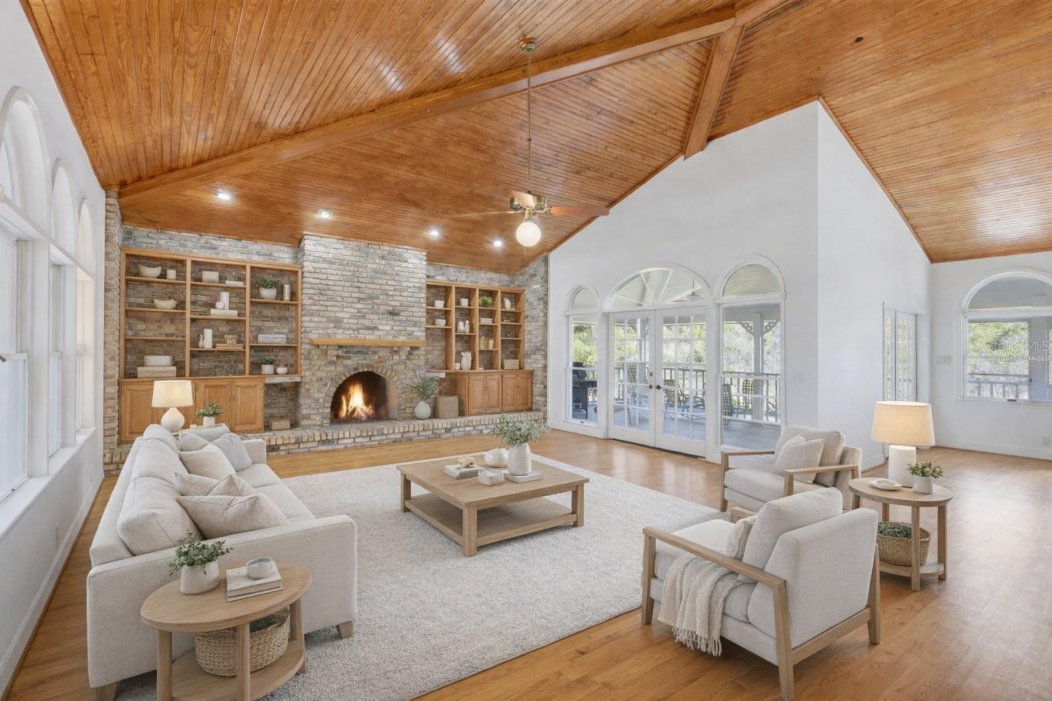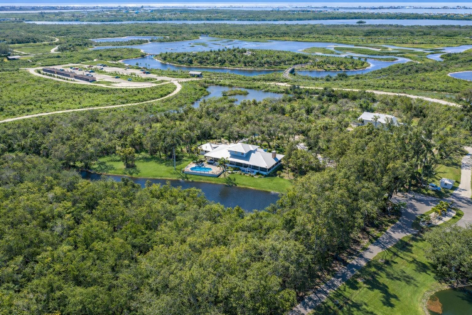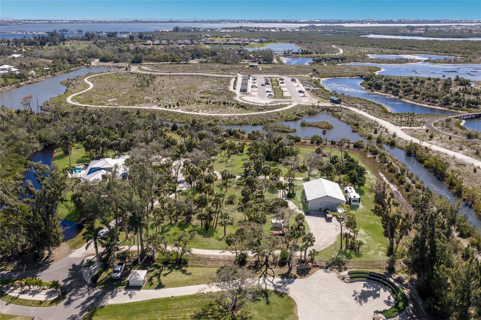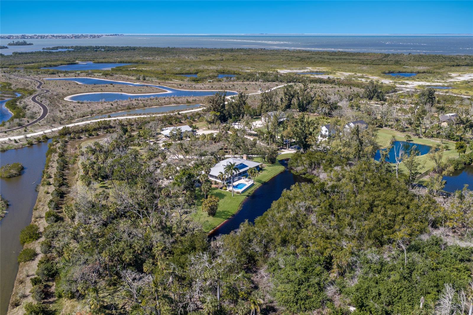 Under contract-accepting backup offers. One or more photo(s) has been virtually staged. A truly irreplaceable estate offering, this five-plus-acre lakefront property backing to Robinson Preserve represents one of the rarest opportunities in all of Northwest Bradenton. This elevated coastal residence offers more than 3,300 square feet of living space surrounded by water, mature oaks, and protected natural beauty, just minutes from Anna Maria Island and Palma Sola Bay. Five-acre parcels in this highly sought-after coastal corridor are extraordinarily limited, and properties that border the preserve are even more scarce, creating a setting that simply cannot be replicated. An oak-lined approach leads to a private estate atmosphere defined by expansive green space, lake views, and complete tranquility. Designed to embrace its surroundings, the elevated home features expansive porches and French doors that seamlessly blend indoor and outdoor living. Inside, soaring vaulted wood ceilings, exposed beams, rich hardwood floors, and a dramatic brick fireplace with custom built-ins anchor the main living area. Walls of windows and arched transoms frame serene water and preserve views throughout, filling the home with natural light and an undeniable sense of warmth and character. The spacious kitchen offers custom wood cabinetry, granite countertops, high end appliances featuring a gas cooktop, built-in wall oven and microwave, and a generous center island, all flowing naturally into the dining and great room spaces to create an inviting layout ideal for both entertaining and everyday living. The primary suite serves as a peaceful retreat with elevated views, French doors opening to the wrap around porch, and a spacious ensuite bath featuring dual vanities, a soaking tub, separate shower, and abundant storage. A dedicated office and an oversized laundry room with extensive cabinetry add both function and convenience. Upstairs there are two additional bedrooms and a full bathroom, providing flexibility for guests or family. Outdoor living is equally impressive, with a lakefront pool and expansive paver deck perfectly positioned for stunning views and quiet evenings overlooking the lake. The covered wraparound porch captures breezes off the water and offers year-round enjoyment of the propertys exceptional setting. Enhancing the estates versatility is an impressive 40 by 76 barn with three oversized garage bays and over 3,000 square feet under roof, ideal for RV and boat storage, car collection, workshop space, equipment storage, or future customization. Structures of this size and utility are rarely found this close to the beaches. Northwest Bradenton is prized for its proximity to Robinson Preserves miles of trails and waterways, quick access to Palma Sola Bay, and the world-renowned beaches of Anna Maria Island, all while offering convenient access to dining, shopping, top-rated schools, Sarasota, and Tampa. Despite being minutes from everything, the property feels entirely private and secluded. A property of this caliber and setting is simply not replaceable.