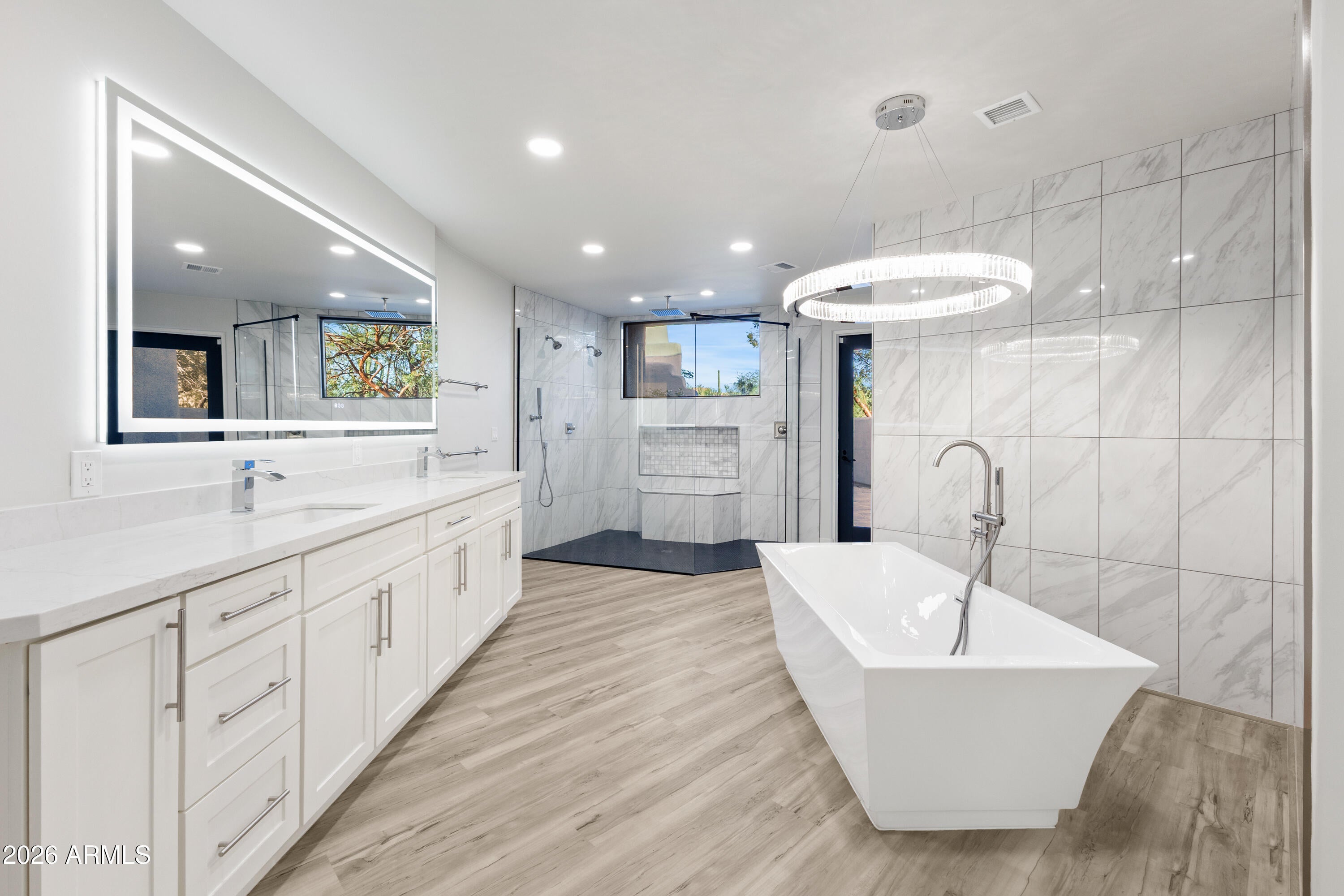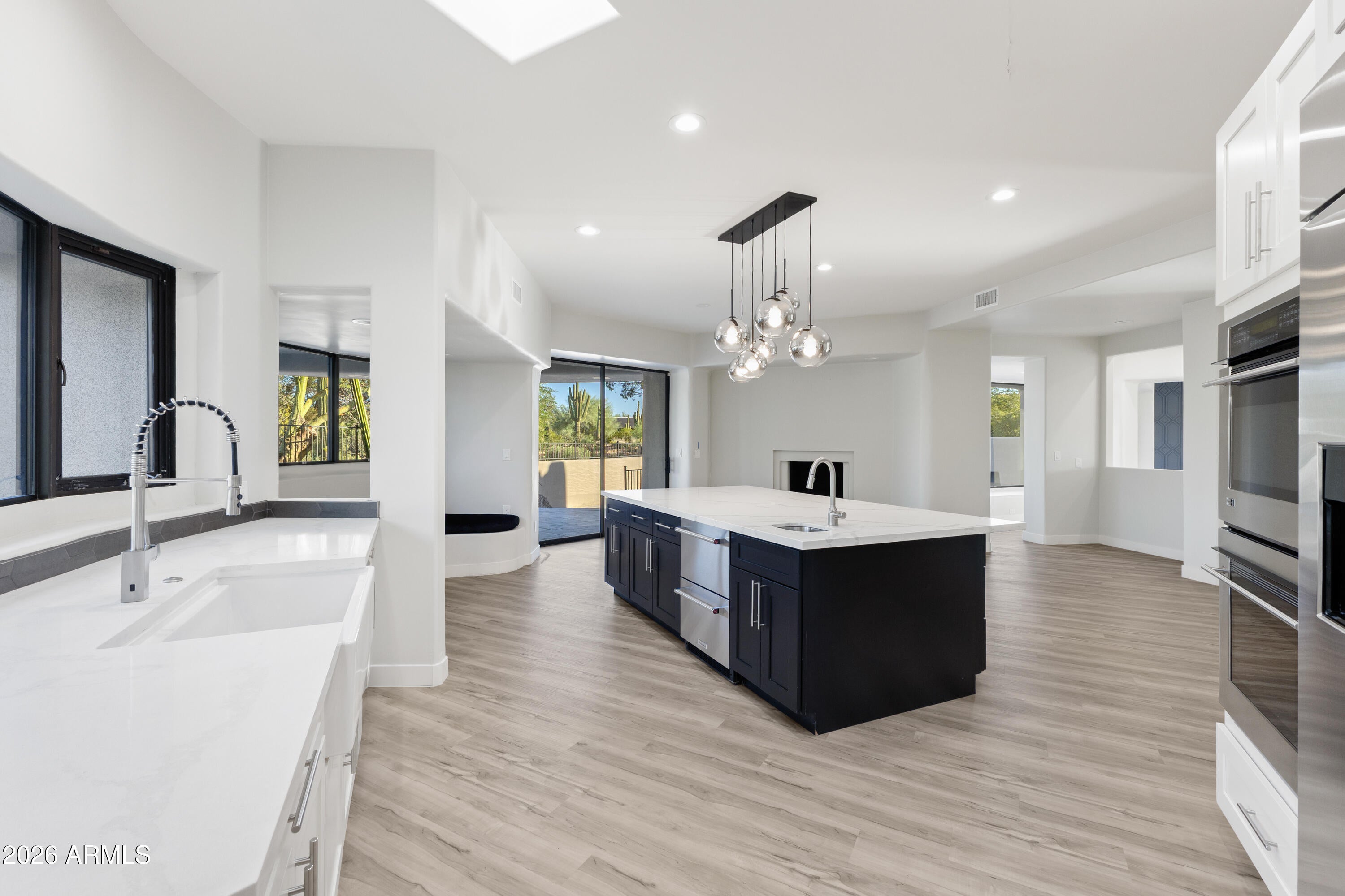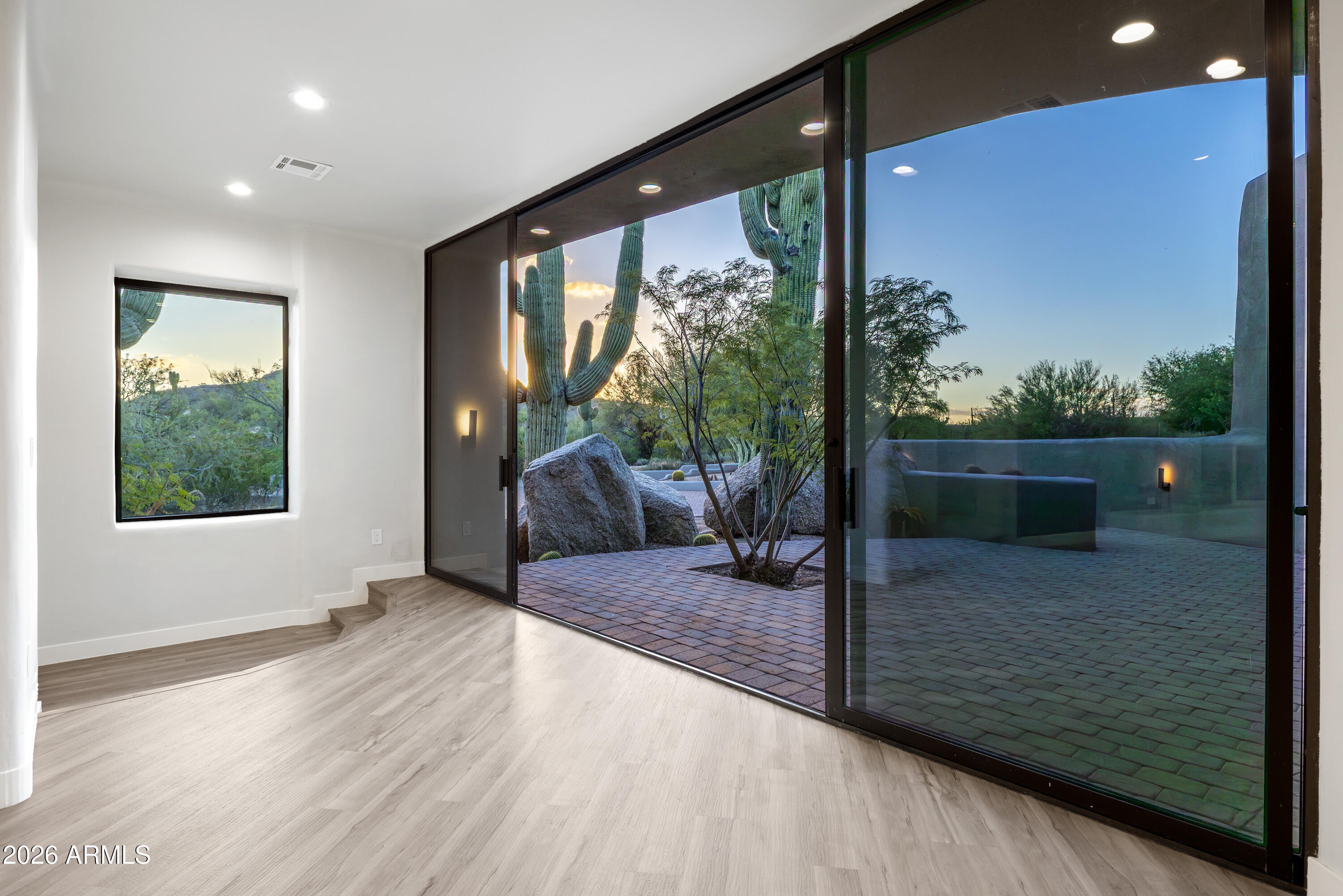 Nestled on a private, interior acre-plus lot within the prestigious guard-gated community of Sincuidados, this beautifully remodeled modern residence offers refined living surrounded by pristine Sonoran Desert beauty. Upon entry, youre welcomed by an abundance of natural light streaming through floor-to-ceiling sliding glass doors in the spacious living room and a wall of windows in the formal dining area, seamlessly blending indoor and outdoor living. The thoughtfully designed split-level floor plan features four ensuite bedrooms, including an oversized guest suite with its own private paver-stone courtyard and direct access to a single-bay garage, ideal for guests or multigenerational living. The luxurious primary suite is a true sanctuary, complete with a gas fireplace, private bonus room/den with separate entrance, and direct access to a cozy courtyard featuring a gas fireplace. The spa-inspired primary bath showcases designer lighting and finishes, a generous walk-in closet, and the convenience of a full-sized washer and dryer. The light-filled chefs kitchen has been remodeled to perfection, centered around an expansive quartz island with vegetable sink and beverage drawers. A large picture window frames serene desert views, while premium features include a ZLine gas range, built-in stainless-steel appliances, walk-in pantry, banquette seating, and a charming gas fireplace. Outdoor living is equally exceptional. A deep covered patio off the kitchen is equipped with a built-in BBQ, extensive counter space, and ample room to create a custom outdoor kitchen. The resort-style backyard offers a sparkling pool, two-way gas fireplace, and two lush grass areasperfect for pets, play, or a putting green. Sincuidados is a low-density, guard-gated community spanning nearly 600 acres of private, protected Sonoran Desert. Residents enjoy a 100-acre nature preserve encompassing most of Lone Mountain, complete with private hiking trails. Community amenities include tennis and pickleball courts, basketball, a clubhouse, and private streets ideal for walking, jogging, and biking. Directly across from the entrance, residents have access to the 25,000-acre Scottsdale Desert Preserveone of the largest urban preserves in the countryoffering hiking, horseback riding, and mountain biking. A vibrant social committee hosts regular community events throughout the year. Conveniently located near North Scottsdale, Grayhawk, Kierland, Cave Creek, and Carefree, this home offers easy access to world-class golf, dining, shopping, and outdoor recreation.