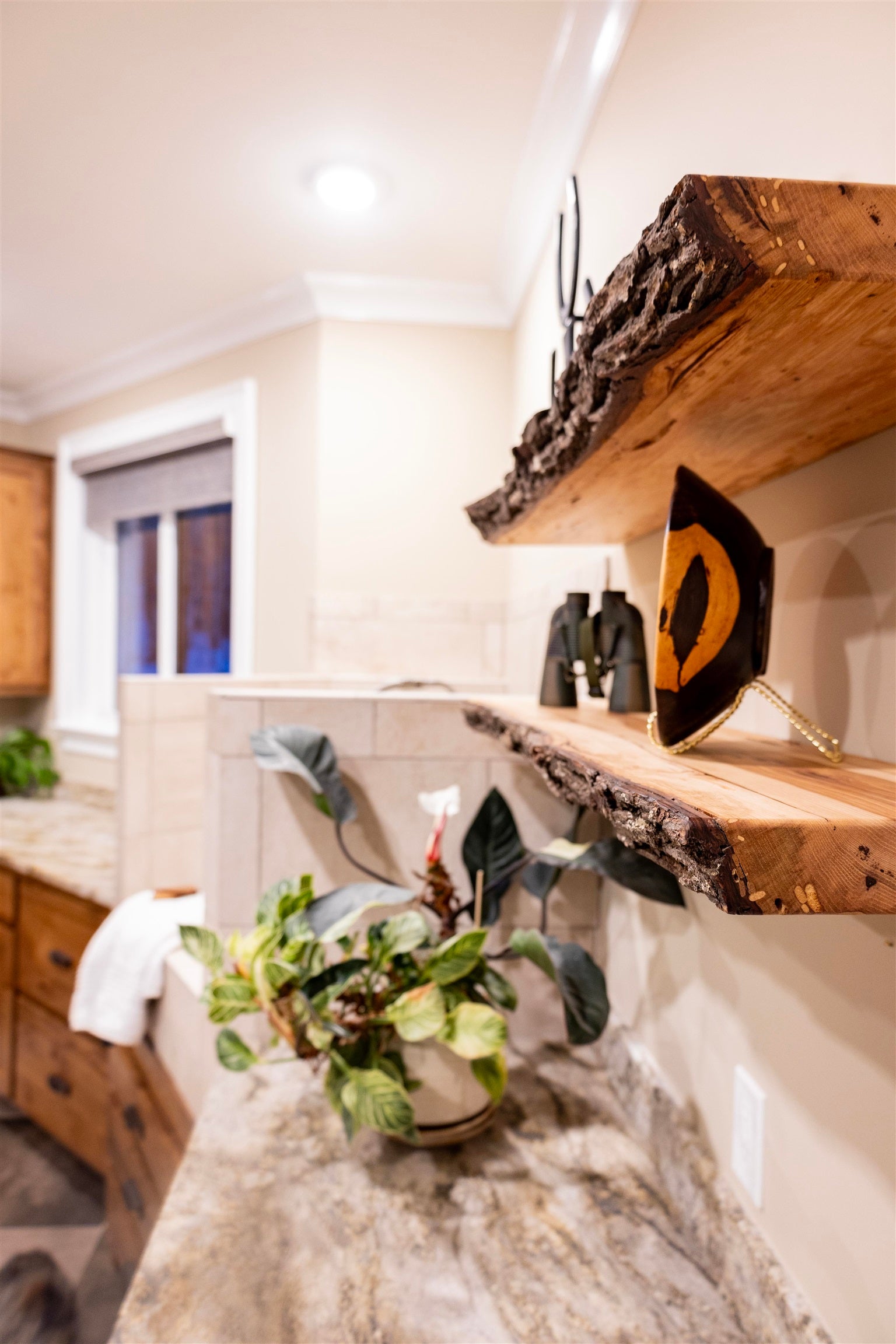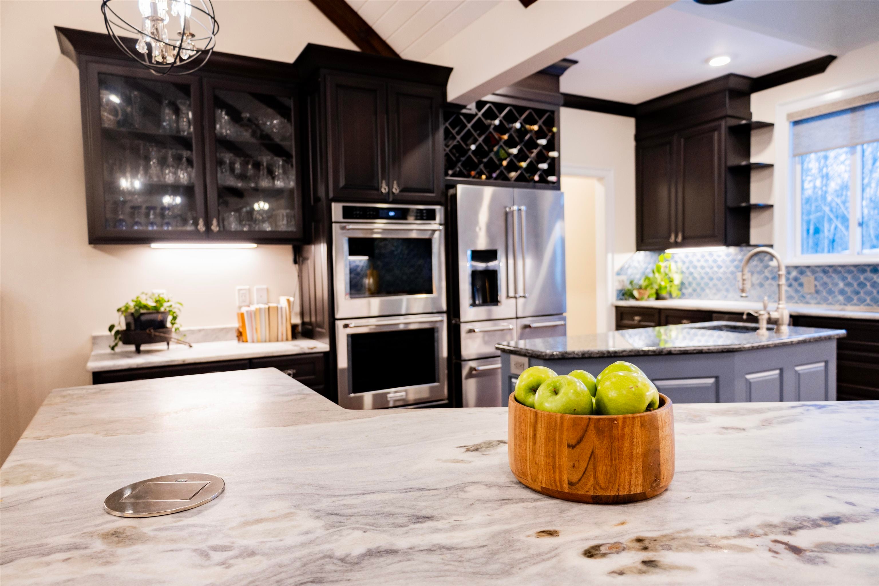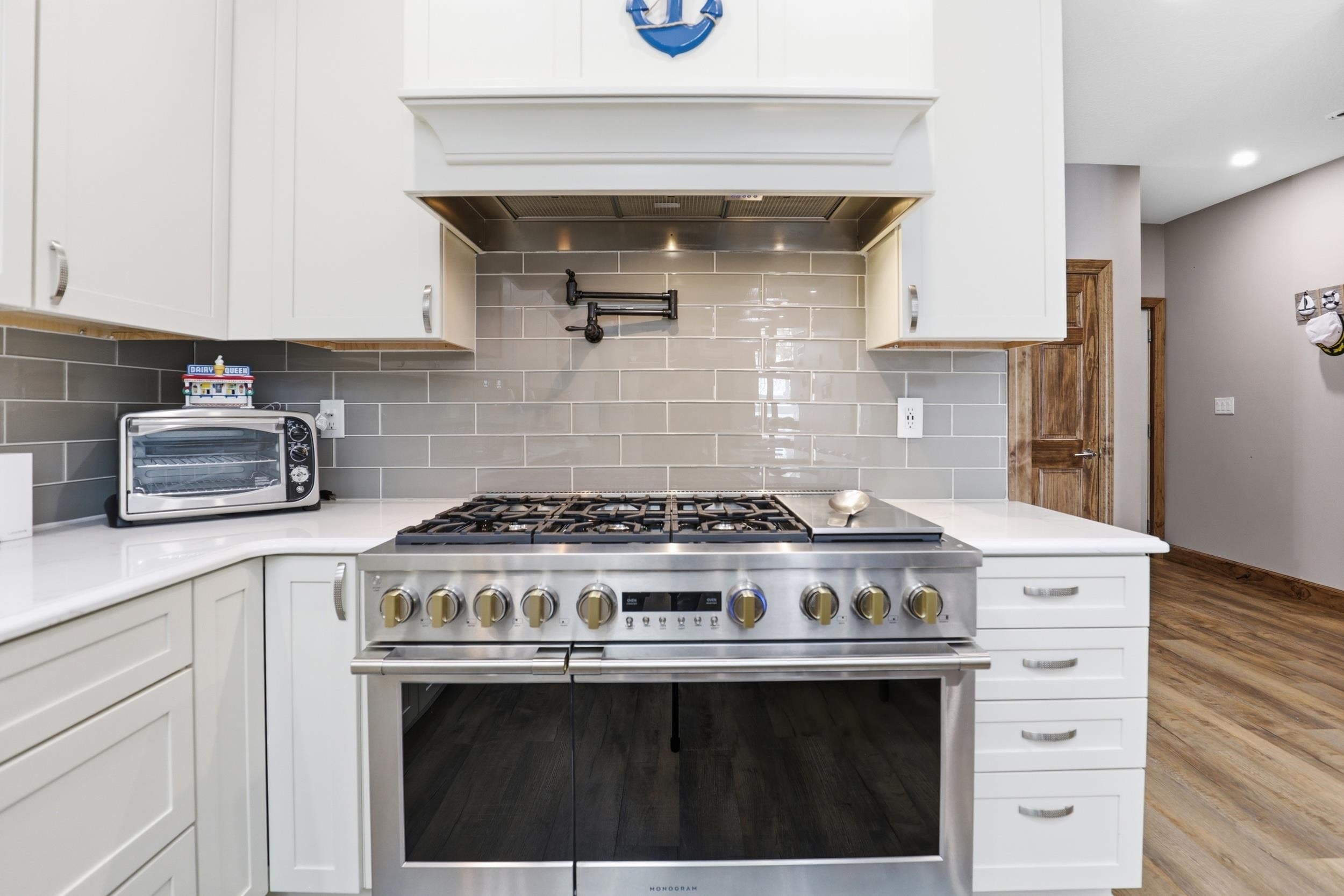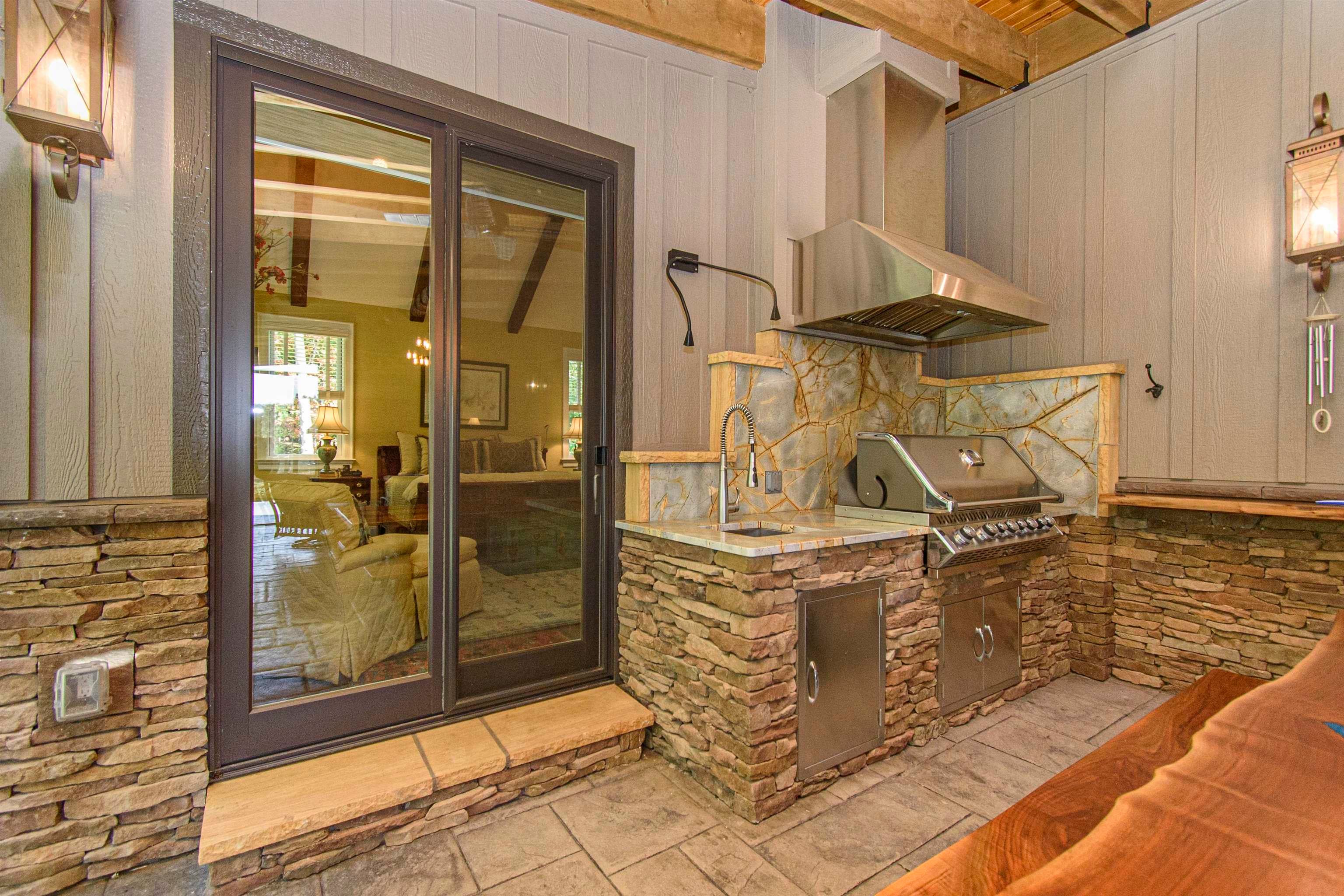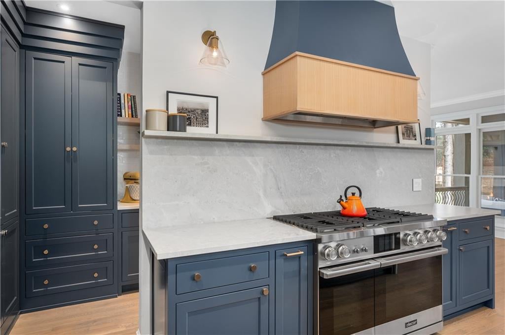 Dont miss your chance to make memories in this gorgeous lake home on Lake James. The kitchen is absolutely stunning and designed with both beauty and function in mind. It features custom Kraft Maid cabinets, quartz countertops, a glass tile backsplash, GE Monogram appliances, and a pot filler no-touch kitchen faucet.
