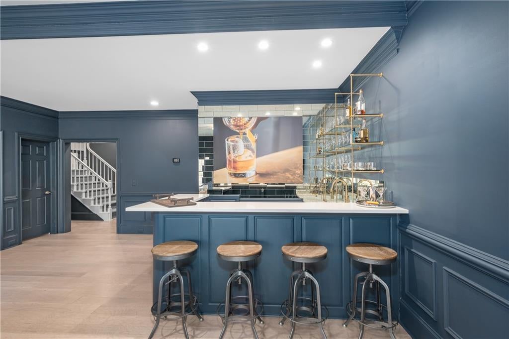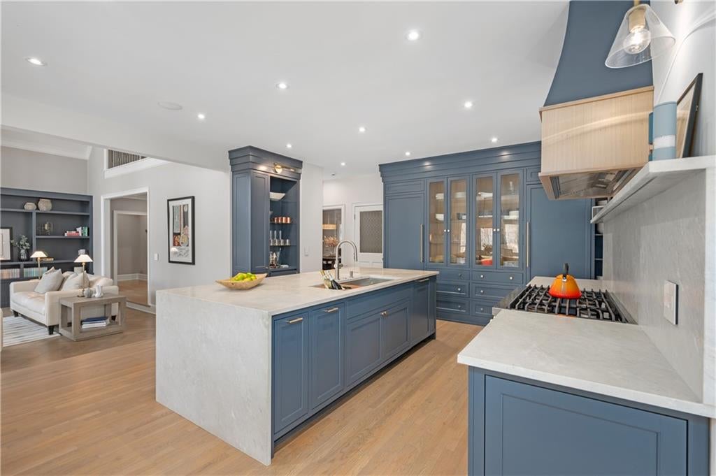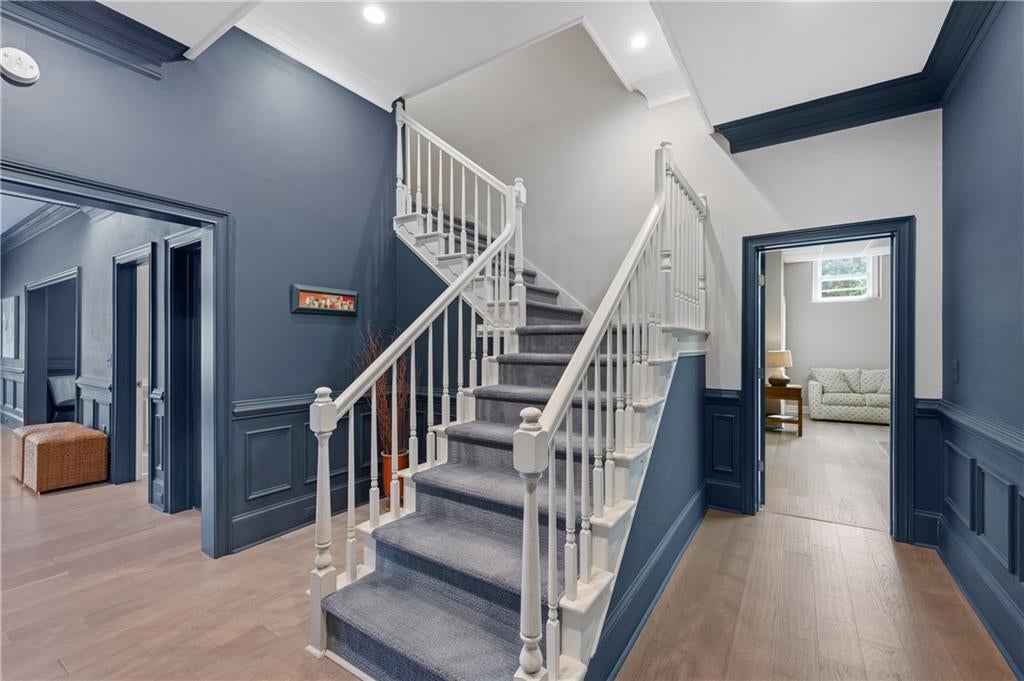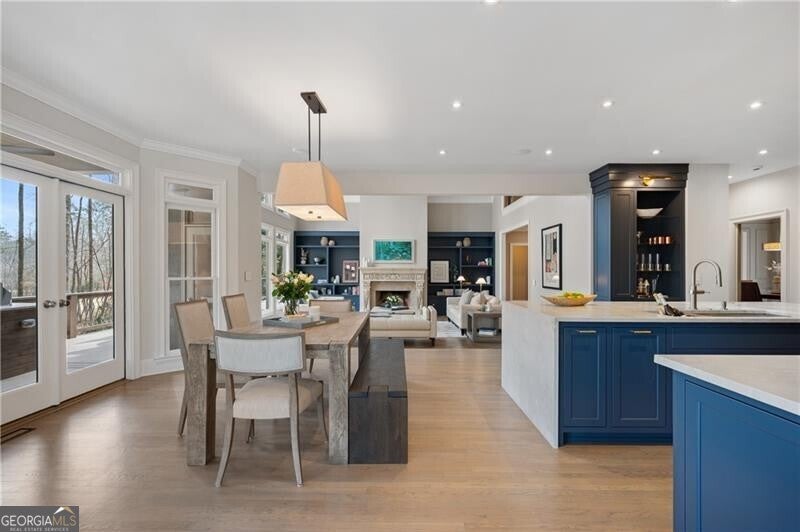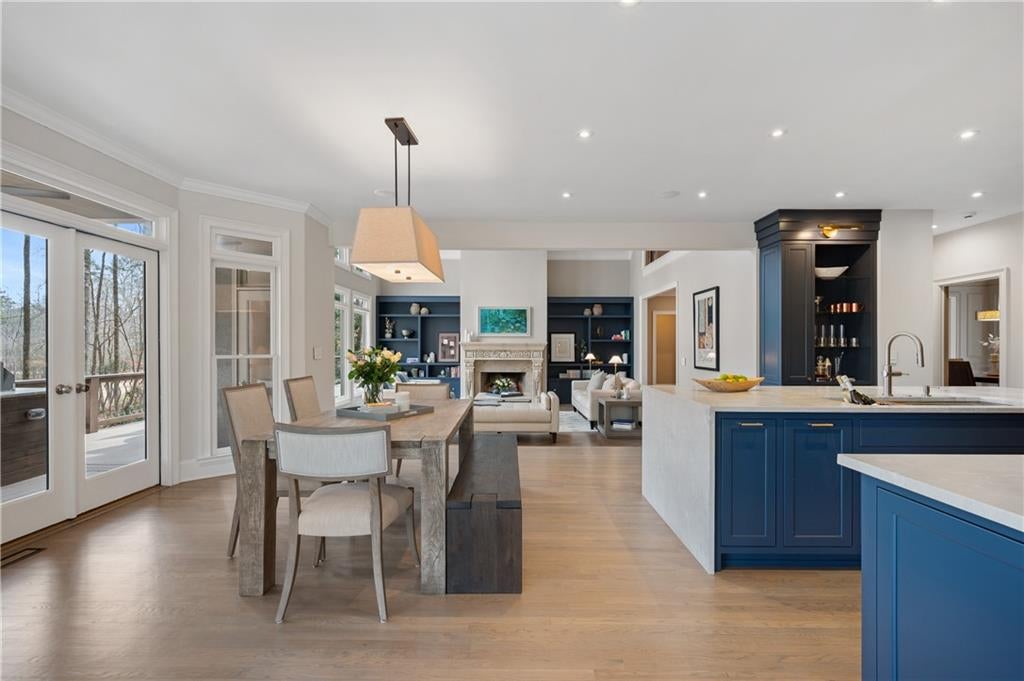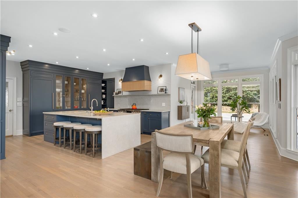 A Fully Reimagined Golf Course Estate in Country Club of the South Perfectly positioned along the sweeping third fairway of the prestigious, gated Country Club of the South, this completely renovated residence presents a rare opportunity to own a true turnkey masterpiece where refined design, modern luxury, and breathtaking golf course vistas converge. From the moment of arrival, the home makes an unforgettable impression. A grand two-story foyer, enhanced by new hardwood treads and custom architectural balusters, introduces interiors defined by elegance and thoughtful craftsmanship. Sunlight pours into a stunning vaulted office framed by floor-to-ceiling windows and bespoke built-ins, while the formal dining room sets a sophisticated tone with tailored millwork and designer finishes curated for elevated entertaining. At the heart of the home, the dramatic fireside great room rises beneath a soaring vaulted ceiling, its custom fireplace and built-in cabinetry anchoring the space while walls of windows capture uninterrupted panoramic views across the manicured fairway a living work of art that changes with every season. Designed for both grand entertaining and effortless daily living, the open gathering spaces flow seamlessly into a professionally designed chefs kitchen of exceptional caliber. A striking leathered marble island anchors the room, complemented by an eight-burner Dacor range, separate Dacor refrigerator and freezer, custom cabinetry with concealed storage, an elegant bar, and dedicated coffee station. A coveted scullery kitchen complete with secondary dishwasher, sink, and extensive storage ensures flawless hosting behind the scenes. The main-level owners retreat is a sanctuary of quiet luxury, offering a spacious bedroom and sitting area overlooking the course, dual custom closets, and a spa-inspired bath finished to perfection. Heated marble floors, a sculptural soaking tub, an expansive walk-in shower with dual rain heads, and vaulted wood-accented ceilings create a private wellness escape rivaling five-star resorts. Upstairs, three generously scaled bedrooms are complemented by beautifully renovated baths, blending timeless design with modern comfort. The terrace level transforms into an entertainers haven, featuring a fireside billiards lounge, gentlemans bar, expansive media and family spaces, exercise room, two additional bedrooms, a fully updated bath, and abundant storage. Outdoor living is equally extraordinary. A covered porch with fireplace, large-screen television, and fully equipped outdoor kitchen invites year-round enjoyment, while an adjoining open deck provides the perfect vantage point to take in the magnificent, million-dollar golf course views. Set within one of North Atlantas most sought-after gated communities, residents enjoy resort-style amenities including tennis and pickleball courts, playgrounds, sports fields, a junior Olympic pool with water slide, and an elegant clubhouse along with optional membership to the renowned Country Club of the South Golf Club for an unparalleled private club lifestyle.