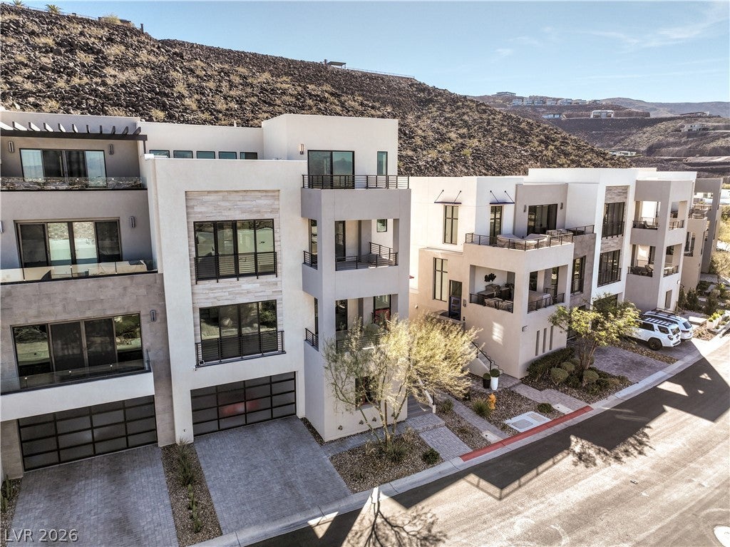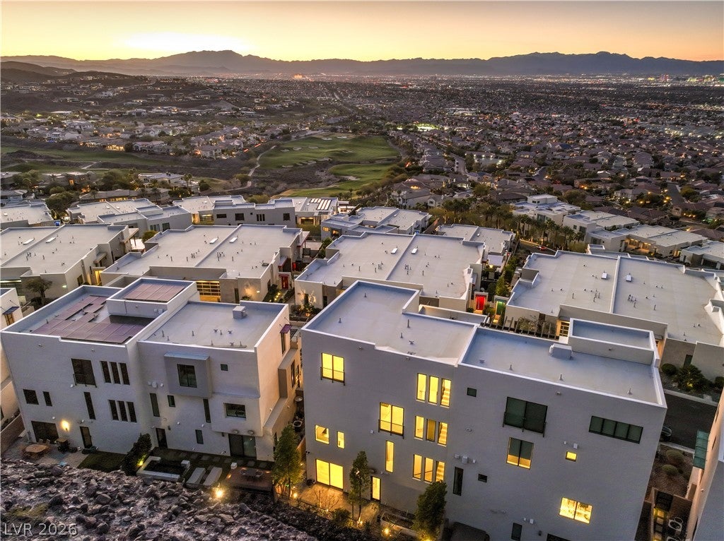 Experience elevated living in this 4-story modern architectural showpiece offering panoramic, unobstructed views of the Las Vegas Strip, city skyline, golf course, & mountains from the 2nd, 3rd, & dramatic 4th-level penthouse. This is the crown jewel & signature residence of the neighborhood. Located in the prestigious guard-gated Dragon Ridge Country Club, this rare residence spans over 4,600 square feet w/ 4 bedrooms & 5 bathrooms, showcasing light-filled interiors, 10-foot ceilings, & an open, contemporary floor plan. The gourmet kitchen features top-of-the-line Bosch appliances, quartz countertops, & seamless indoor-outdoor flow through 8-foot glass sliding doors. Enjoy surround sound, two fireplaces, tankless water heater, & impeccable finishes throughout. The penthouse retreat complete with bath, wet bar, & private terrace delivers top-of-the-world views typically reserved for a helicopter. Immaculate & like brand new! Control 4 System stays. Lock & leave luxury lifestyle.