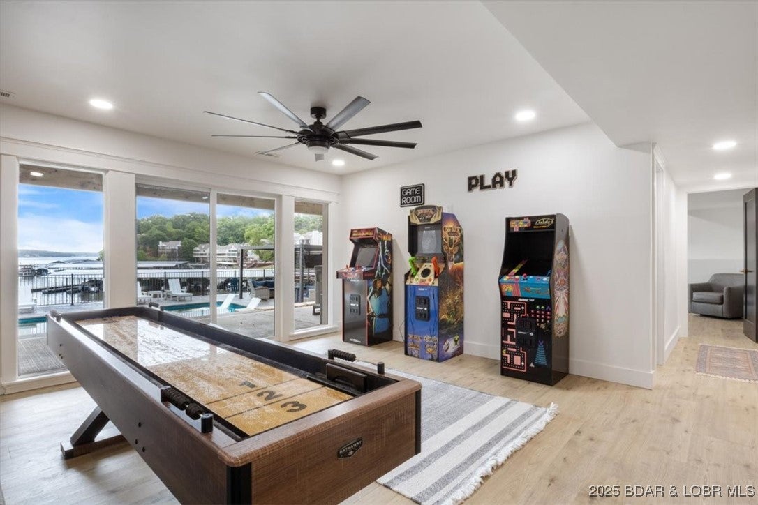 Experience exceptional lake living in this beautifully designed home offering comfort, space, and unmatched amenities. With over 500,000 plus put into this property inside and out to make this an outstanding luxury rental with numbers to support! Over 140,000 since June of 2025 and 127,000 already for 2026 and on pace for 250k plus! This home features a main floor that welcomes you w/ a spacious chefs kitchen ideal for daily living and entertaining, along with a primary suite with a ensuite bath and crib. A converted garage creates the perfect recreation space with TV, pop-a-shot, ping pong, and more. Upstairs, three well-appointed bedrooms provide ample sleeping space for family and guests, served by a shared full bath. The finished lower level extends your living area w/a game room, poker room, TV lounge, pullout sofa, arcade games, a full bar w/ice maker and beverage coolers, a second primary walkout w/king bed, laundry room, and a hidden dry sauna. Outside, enjoy a fenced pool, hot tub, an upper deck w/seating and grill, a concrete cruiser dock w/swim pad, lots of parking and a very gentle lot offering easy access to the water. This is the lakefront investment for you!