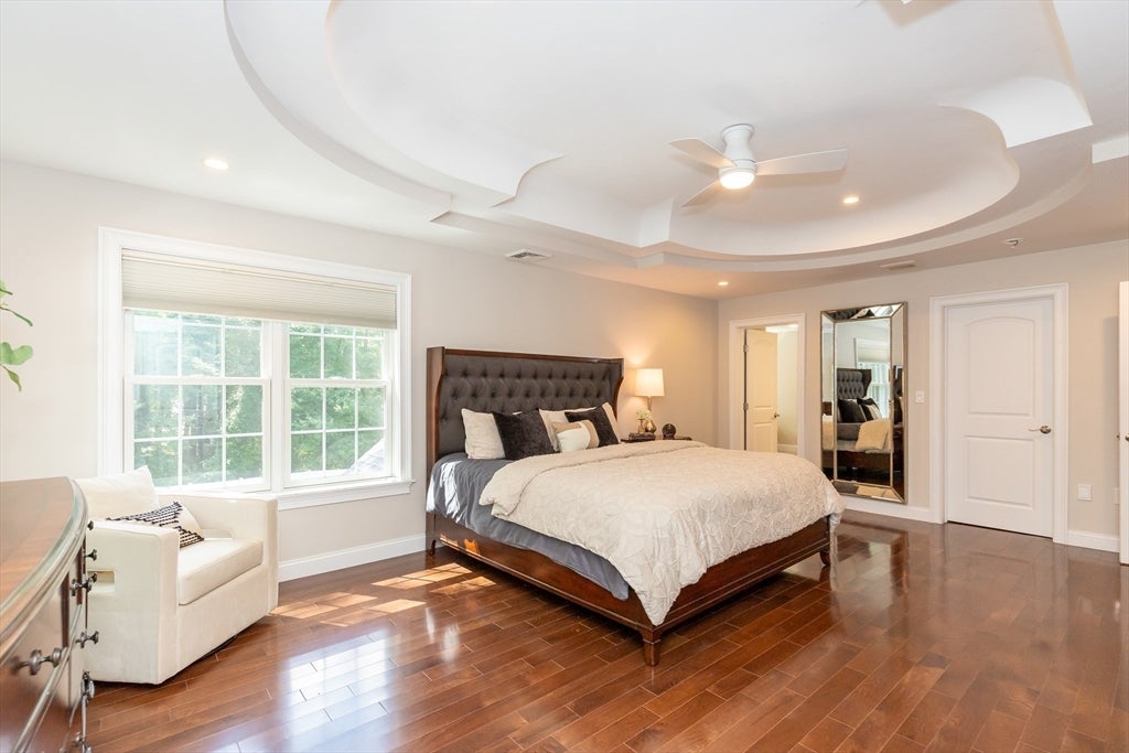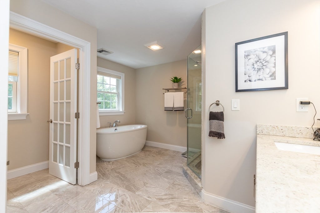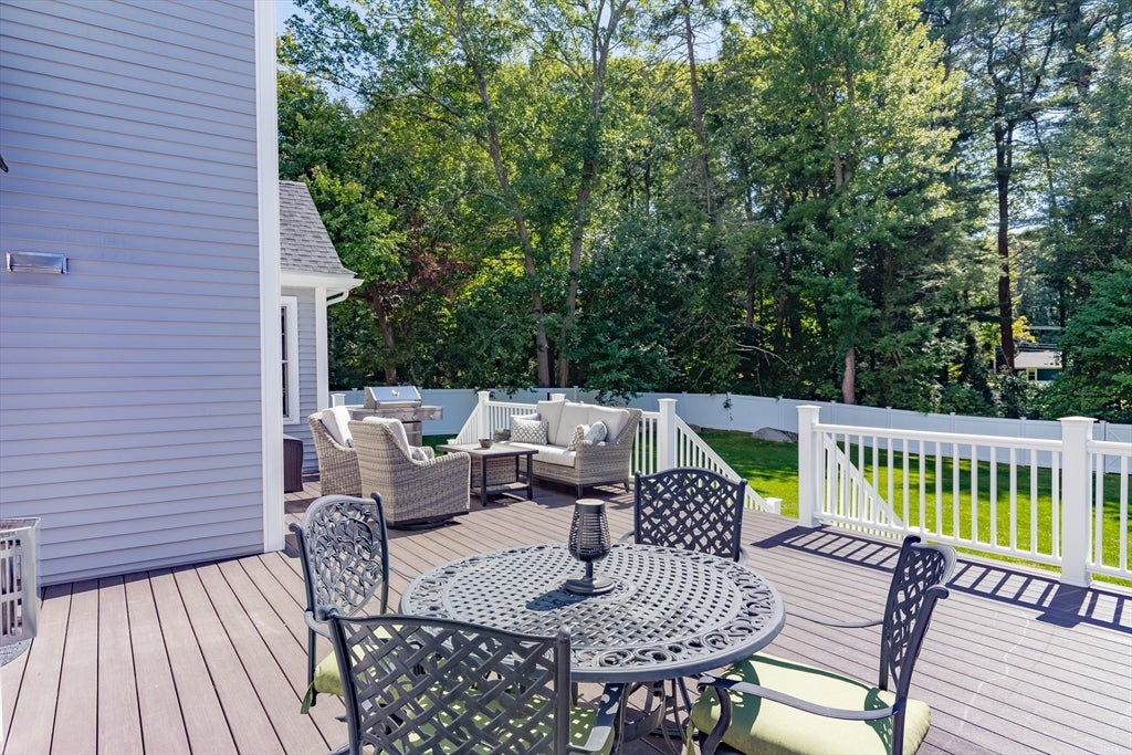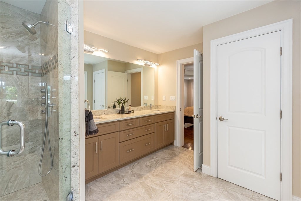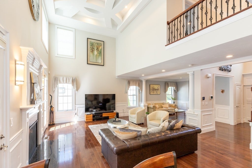 Custom built home with exceptional design, and quality throughout. Main level features an ensuite bedroom,spacious family room with fireplace, 18-ft ceiling, and French doors to exterior, half bath . Chefs kitchen offers custom lighted cabinetry, 48 Sub-Zero & Wolf appliances, pantry, quartz counters, and marble backsplash. Open living and dining areas with two-story foyer create ideal entertaining space.Two additional ensuite bedrooms on and the Primary suite includes private balcony, detailed ceiling, and steam shower bath. Two additional second-floor bedrooms and full bath. Finished lower level includes exercise room, game area, second family/playroom,and half bath. Sunroom overlooks large fenced yard with oversized deck. Three-car EV-ready garage. Gas heat, central air, irrigation, foam insulation, and first-floor HVAC with air purifier.Large, level fenced yard with privacy! Enjoy all that Burlington dining has to offer- 3rd Ave, The District and Burlington Mall!
