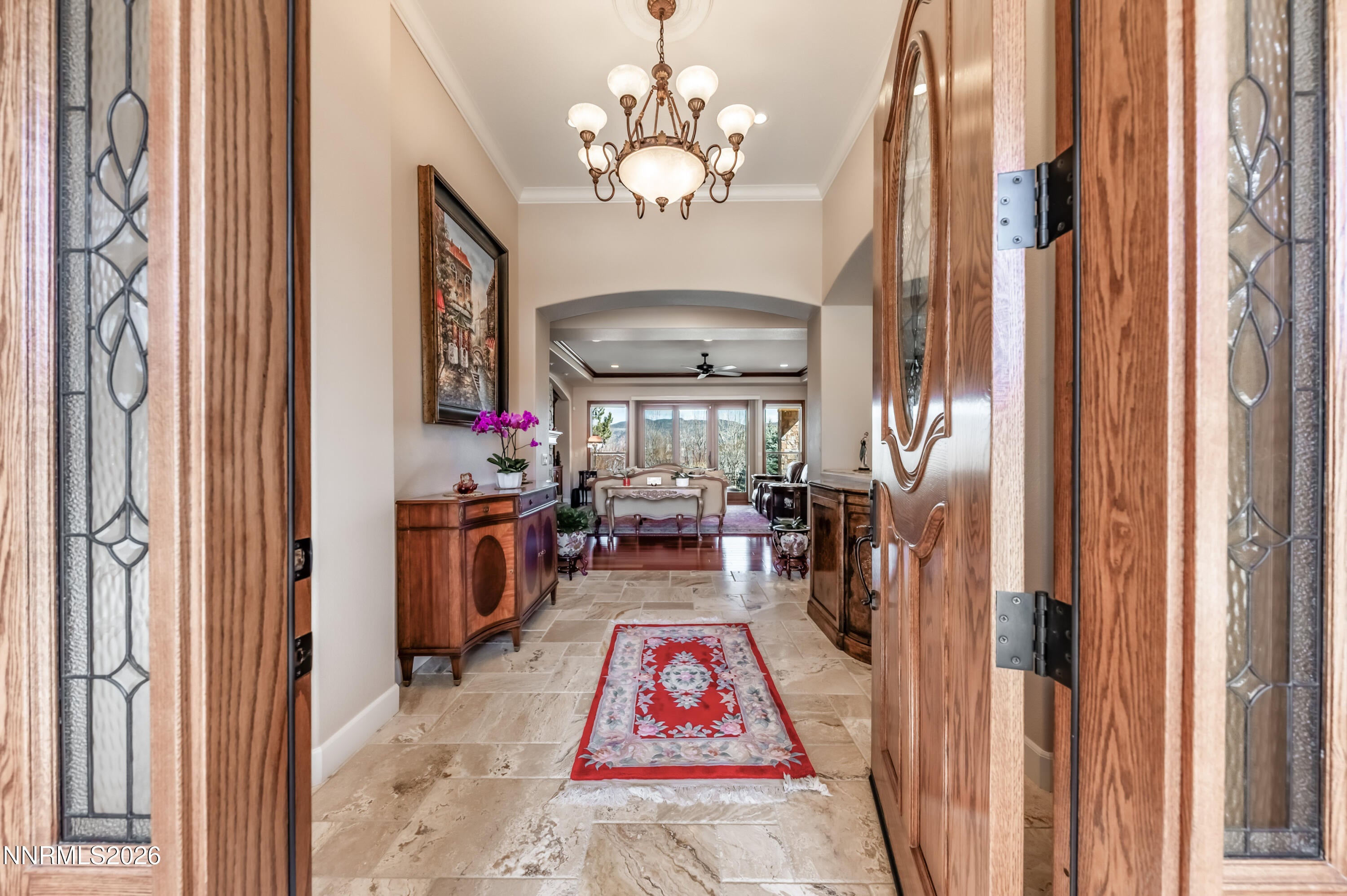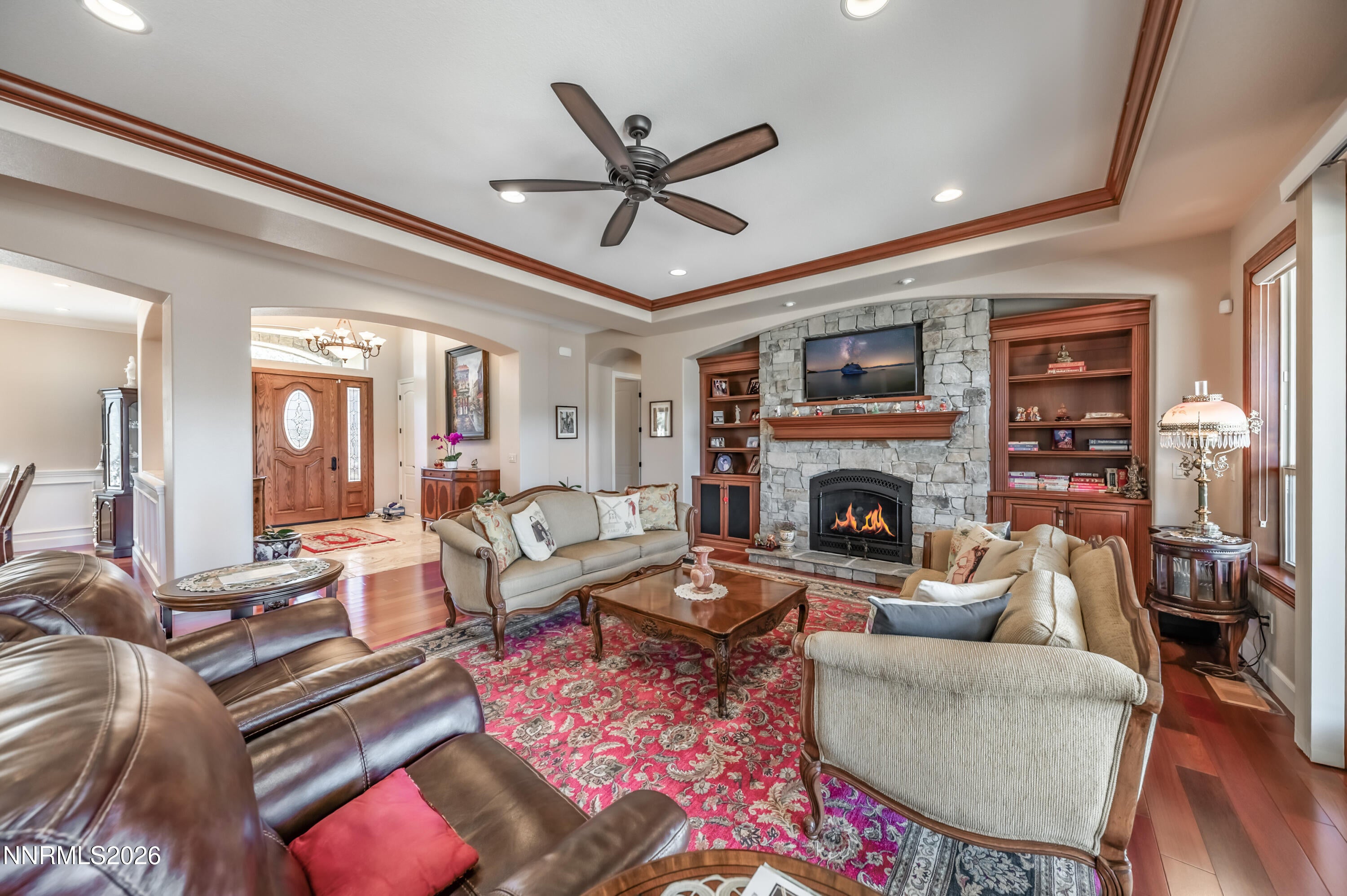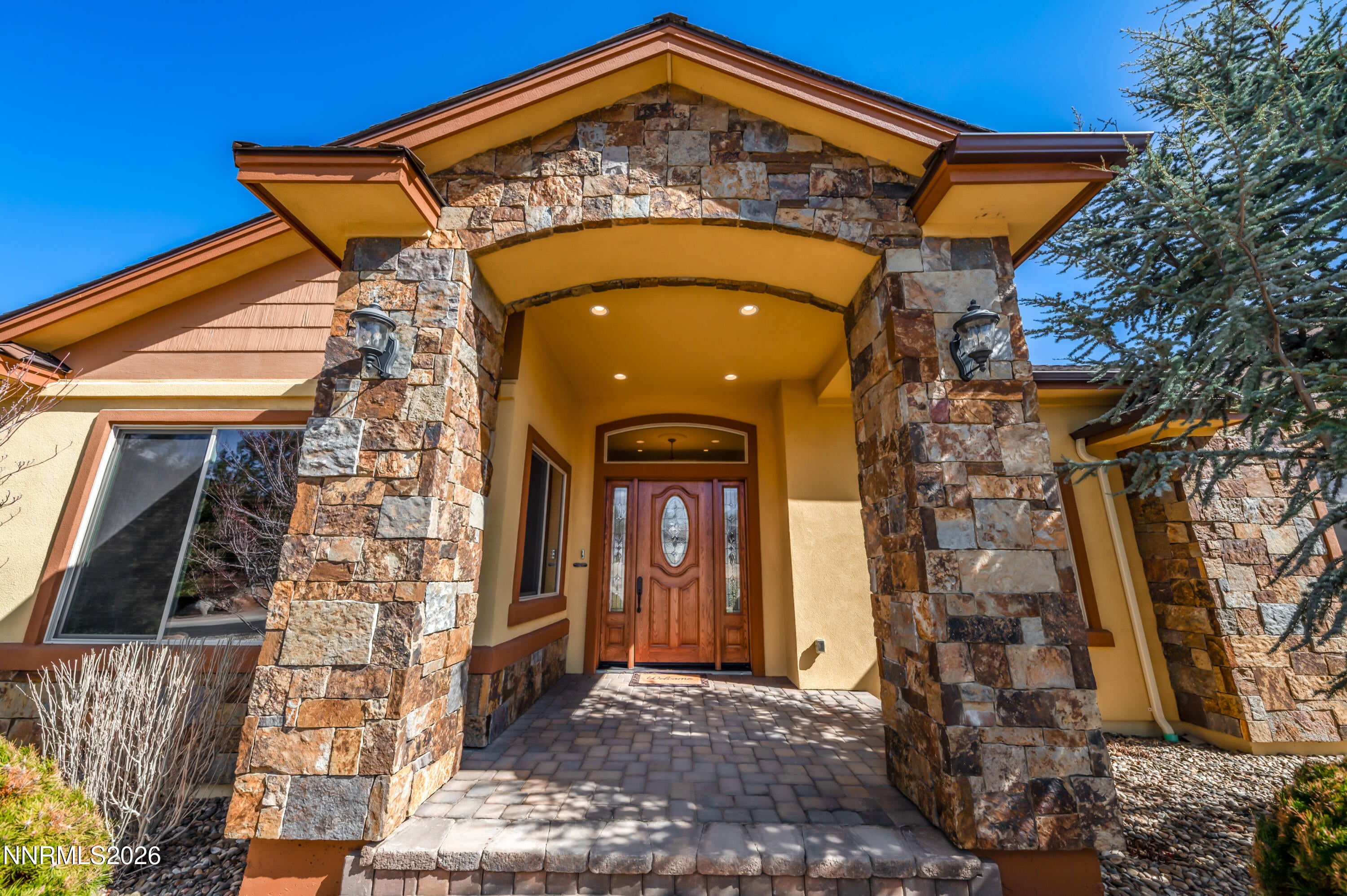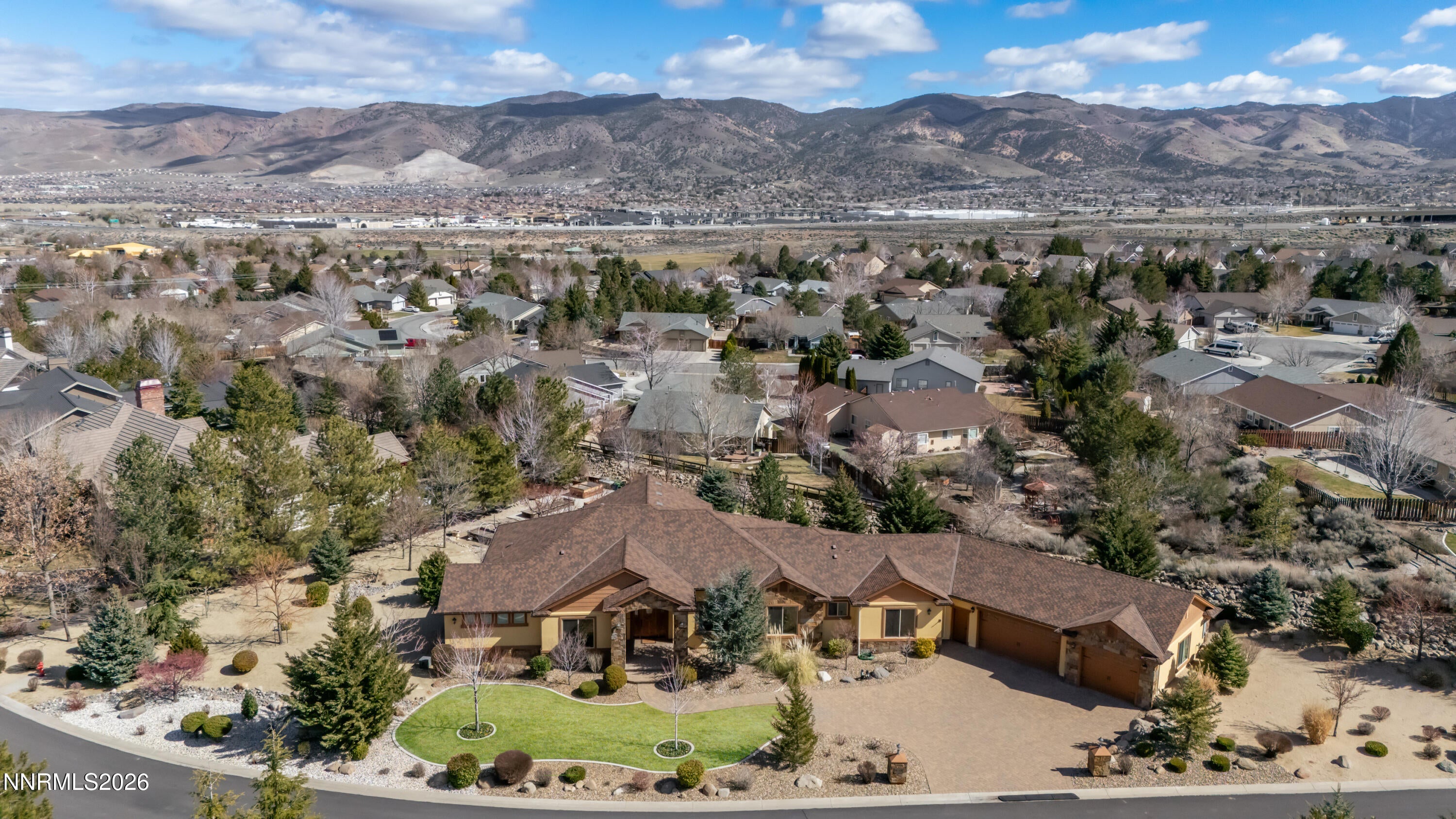 Nestled on a private street with beautiful mountain views, this exceptional custom home offers space, craftsmanship, and thoughtful upgrades throughout. Spanning approximately 3,697 sq ft with 4 bedrooms and 4 bathrooms, the home showcases high quality materials and timeless design, including engineered solid cherry hardwood floors and stunning natural stone accents sourced from Montana and Arizona. The chefs kitchen is designed for both everyday living and entertaining, featuring custom cherry cabinetry by Unique Design Cabinet Co. in Reno, custom granite countertops with double bullnose edges, stainless steel appliances, and a large walk in pantry. The open layout flows seamlessly into the great room anchored by a striking natural stone fireplace and built in cabinetry, creating a warm and inviting gathering space. The spacious primary suite is a true retreat with a large spa style bathroom featuring custom tile work, an oversized shower, and expansive his and hers walk in closets with custom cabinetry by Closet Masters of Nevada. Additional highlights include a heavy duty floor bolted safe in the office closet, three zone HVAC system with a separate thermostat for the guest room, and a pier and beam floor system with a large illuminated crawl space. Quality construction continues throughout with custom red oak front doors from Oregon, professionally finished white pine and cherry woodwork with five coats of finish, an enclosed mechanical area in the garage, and a massive 1,160 sq ft garage with durable epoxy flooring. The outdoor space is just as impressive, featuring a paver driveway, patio, and walkways, extensive landscaping on an automated drip system, 10 fruit trees, grapes, raised vegetable beds, and a beautiful Annabella water feature on the rear lawn. The front landscaping features Johnny and Josey bronze sculpture, and exterior lighting on automatic timers enhances the propertys curb appeal. Additional improvements include motion sensor lighting in the mudroom, and a brand new vapor barrier installed in the crawl space in November 2025. This thoughtfully designed property blends privacy, craftsmanship, and functional upgrades in one of the areas most desirable settings. *4.99 percent owner financing available. Please call the listing agent for more details.*