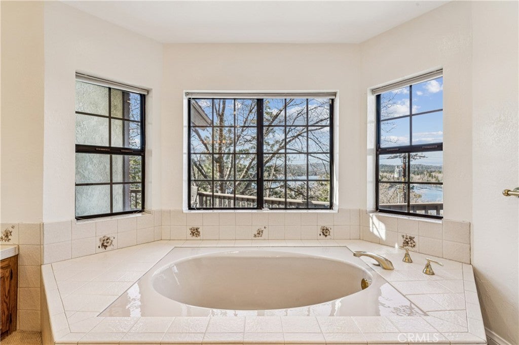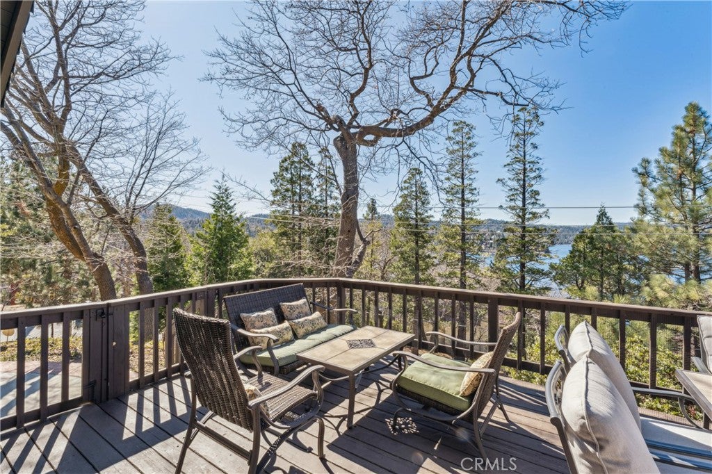 Welcome to this exceptional lakeview residence located in a gated first-tier neighborhood in Lake Arrowhead. This home offers an elevated mountain-lake lifestyle with privacy, comfort, and beautiful views.The inviting living areas feature a huge fireplace with built-in cabinets and a bar area, making it the perfect space for relaxing or entertaining. The main living space is filled with natural light and opens directly to a large party deckideal for outdoor gatherings while enjoying scenic lake views.The spacious kitchen features a generous breakfast bar and is conveniently located adjacent to both formal and informal dining areas, creating an ideal layout for entertaining and everyday living.The home features 4 bedrooms and 3.5 bathrooms, including a spacious primary suite on the main level with a large custom bath showcasing generous space and thoughtful finishes. Two additional bedrooms are also located on the main level, providing excellent flexibility for family, guests, or a home office.In addition, the home includes a private guest suite with its own living area featuring a fireplace, a spacious bedroom, and a private bathoffering comfort and privacy for visitors.Enjoy the convenience of walking to the lake, dock, and sandy beach area for easy access to lakeside recreation. The dock is available for purchase separately.Additional amenities include an oversized two-car garage, RV parking, and ample additional parking for guests. The home is also equipped with two air conditioning systems and a backup generator for year-round comfort and reliability.This home has been a successful short-term rental (STR) and can be continued as an income-producing property by new owners.Dock NSM 2, Slip 21 is available for extra .