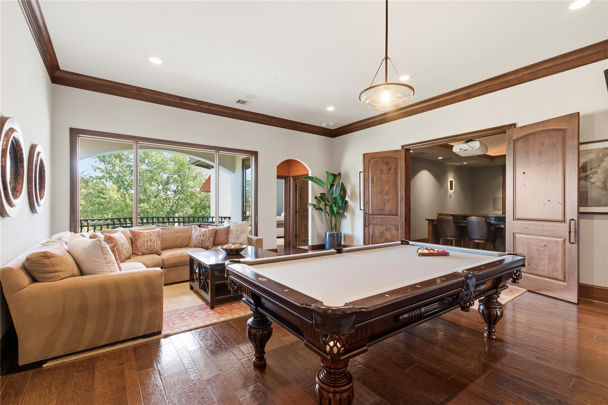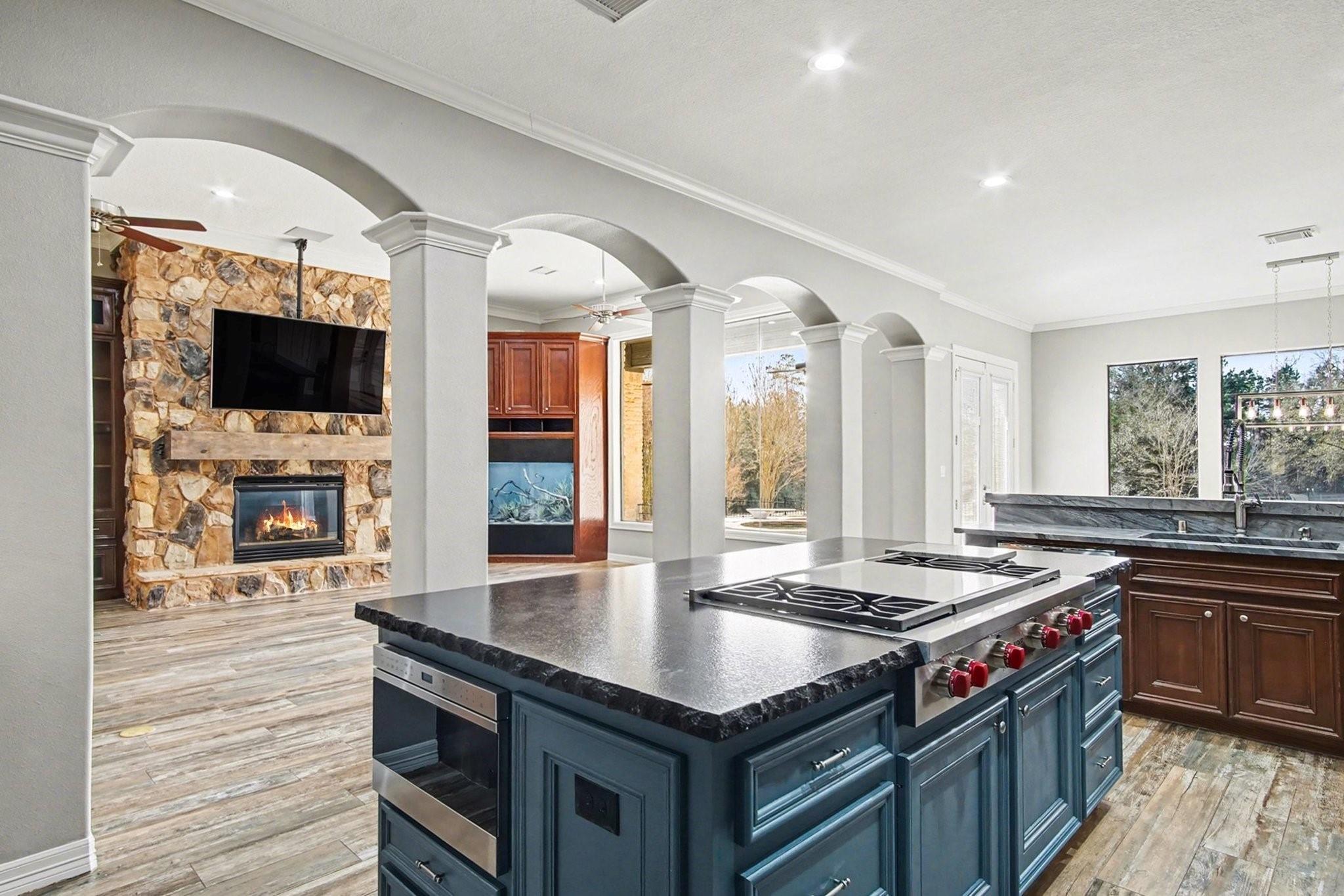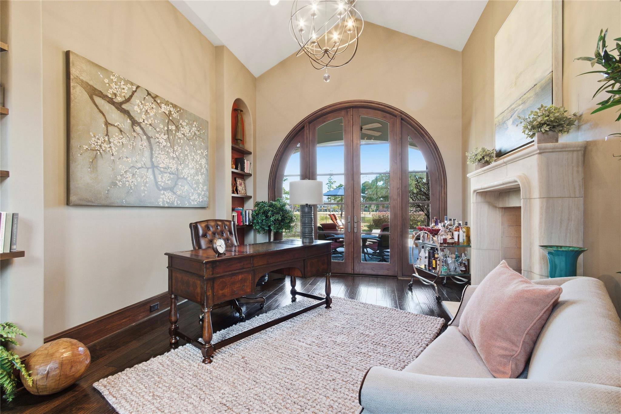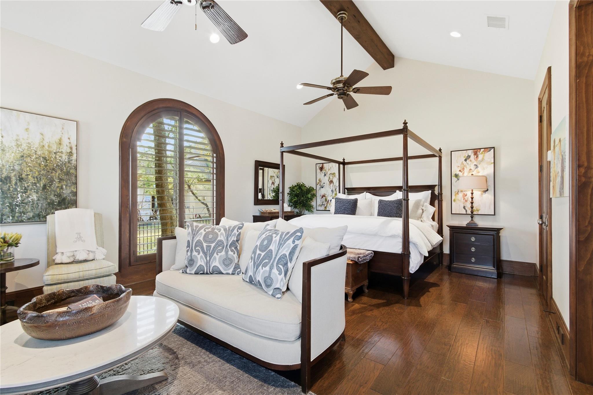 Enter through your private gated drive and experience 7 breathtaking acres of pure Texas luxury. This corner-lot estate delivers immense privacy. The main one-story home features a sprawling layout w/ four spacious bedrooms, four full baths, a private study w/ custom built-ins, & a separate game room w/ its own entrance.