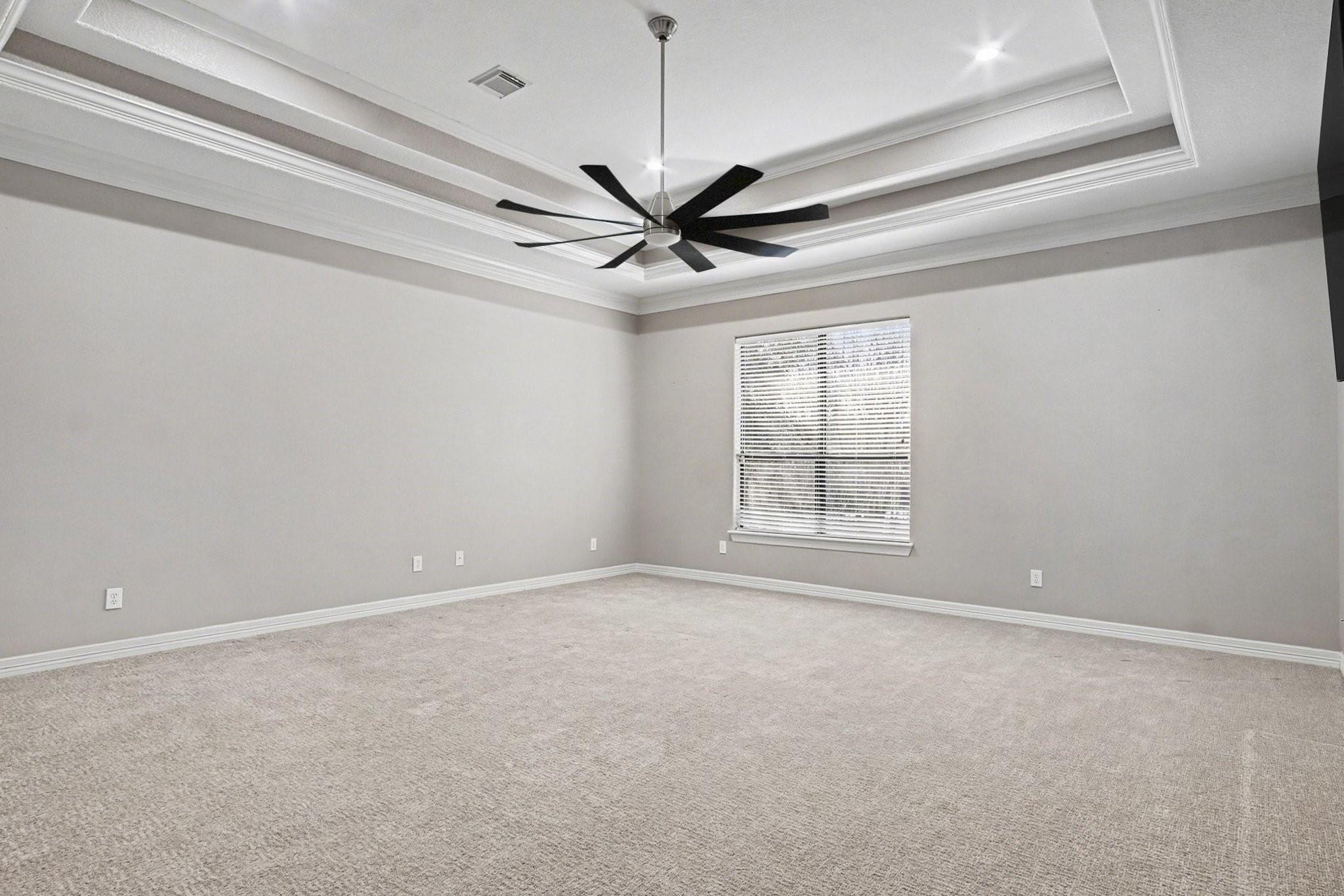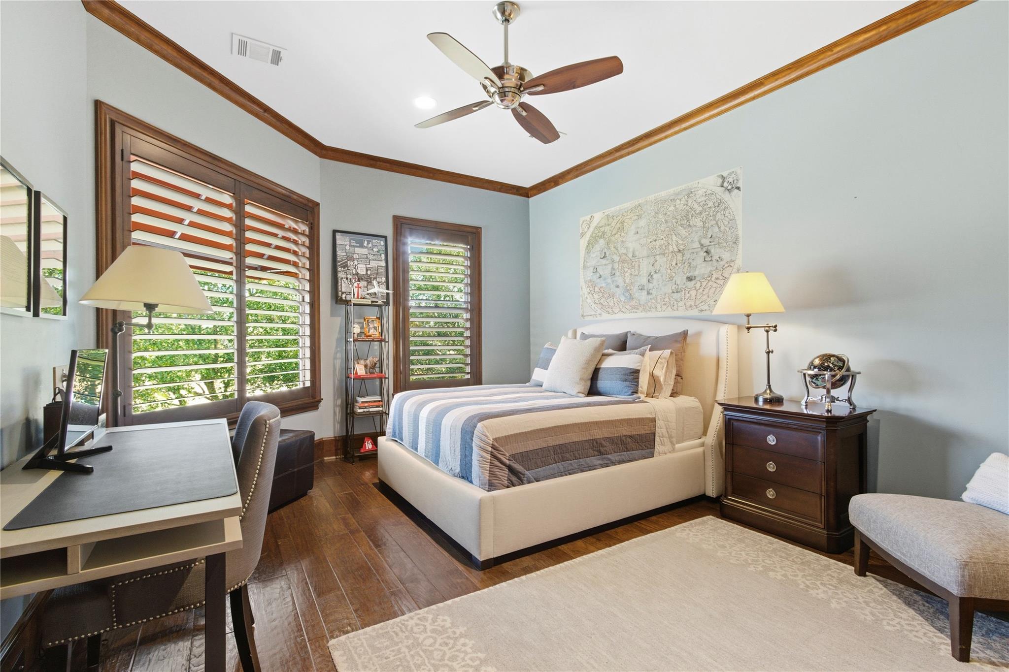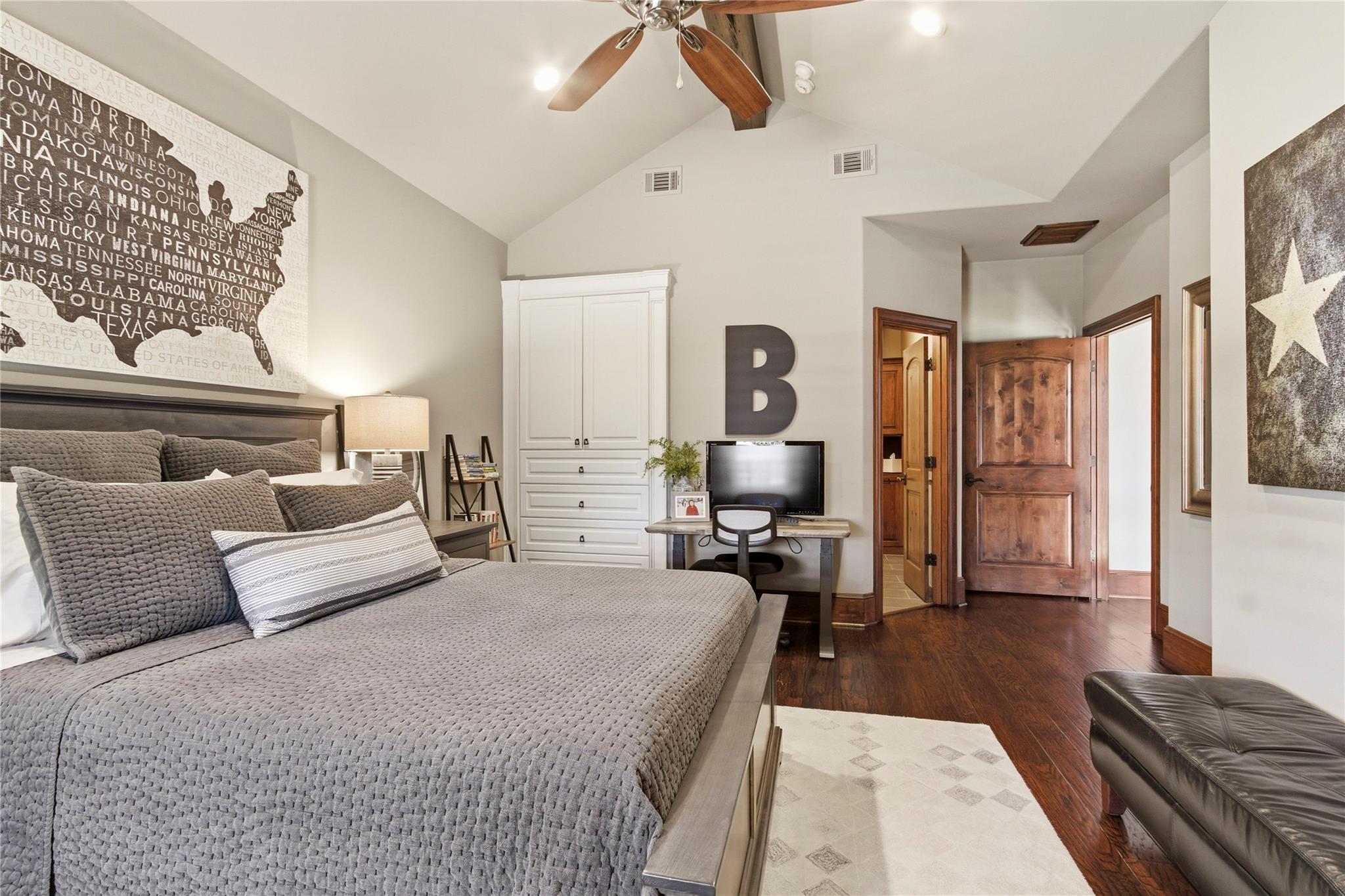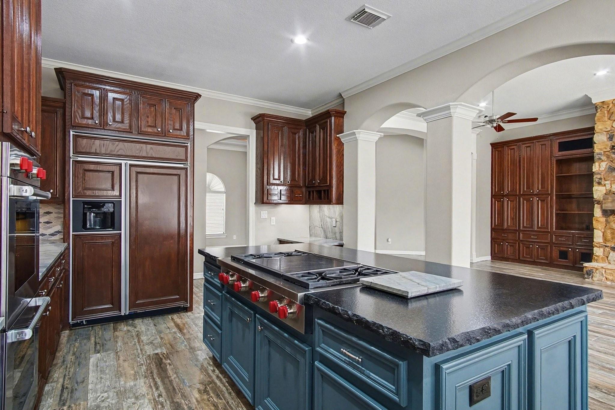 Enter through your private gated drive and experience 7 breathtaking acres of pure Texas luxury. This corner-lot estate delivers immense privacy. The main one-story home features a sprawling layout w/ four spacious bedrooms, four full baths, a private study w/ custom built-ins, & a separate game room w/ its own entrance.