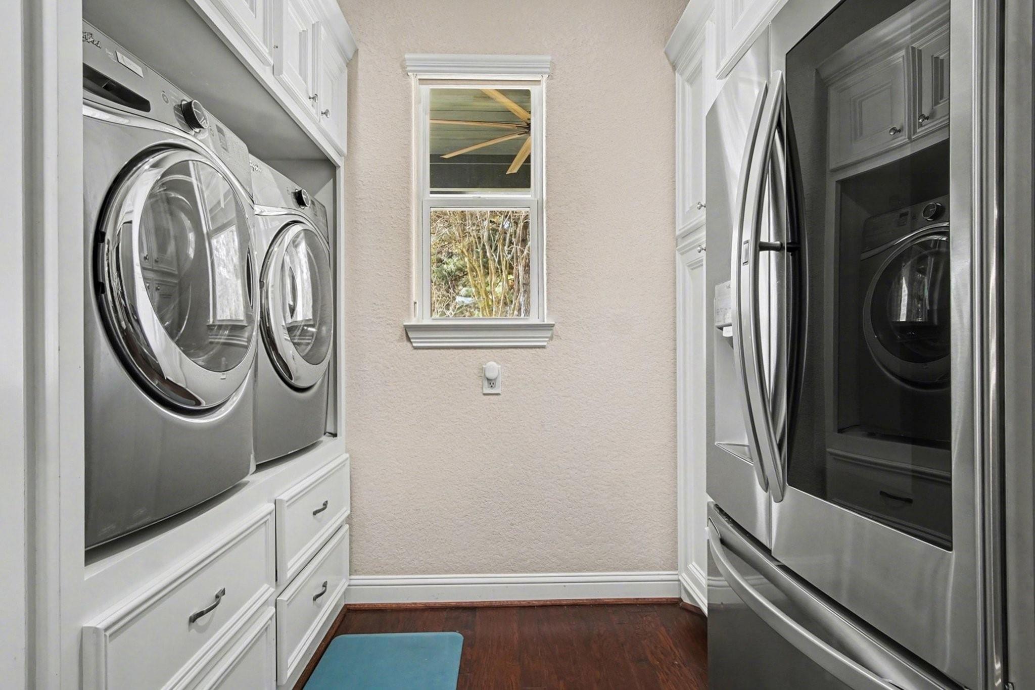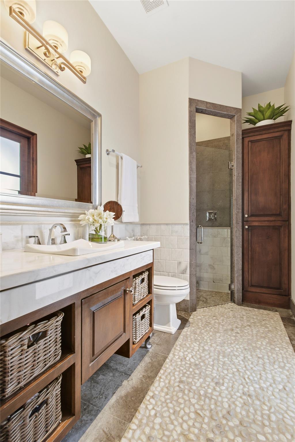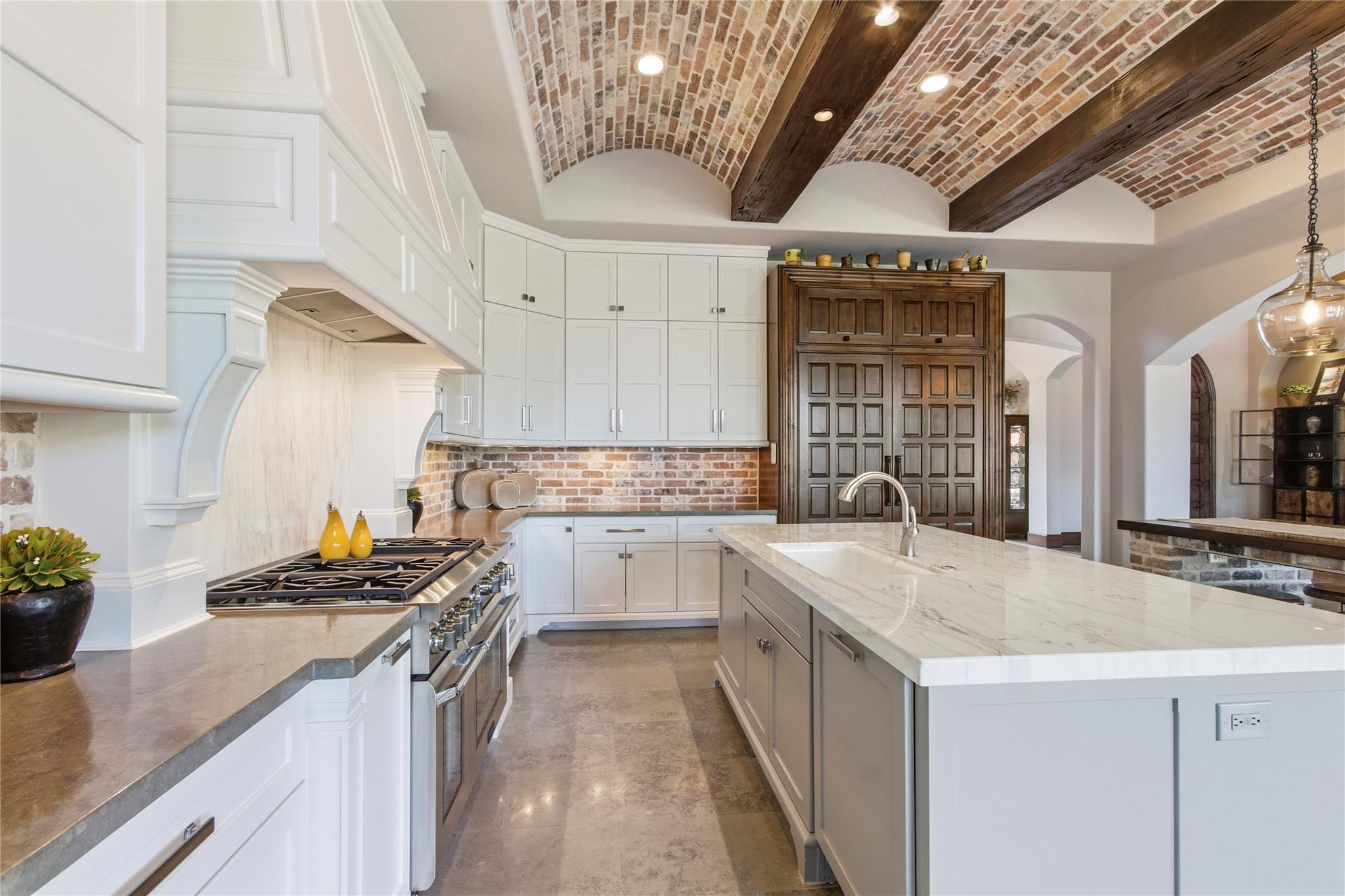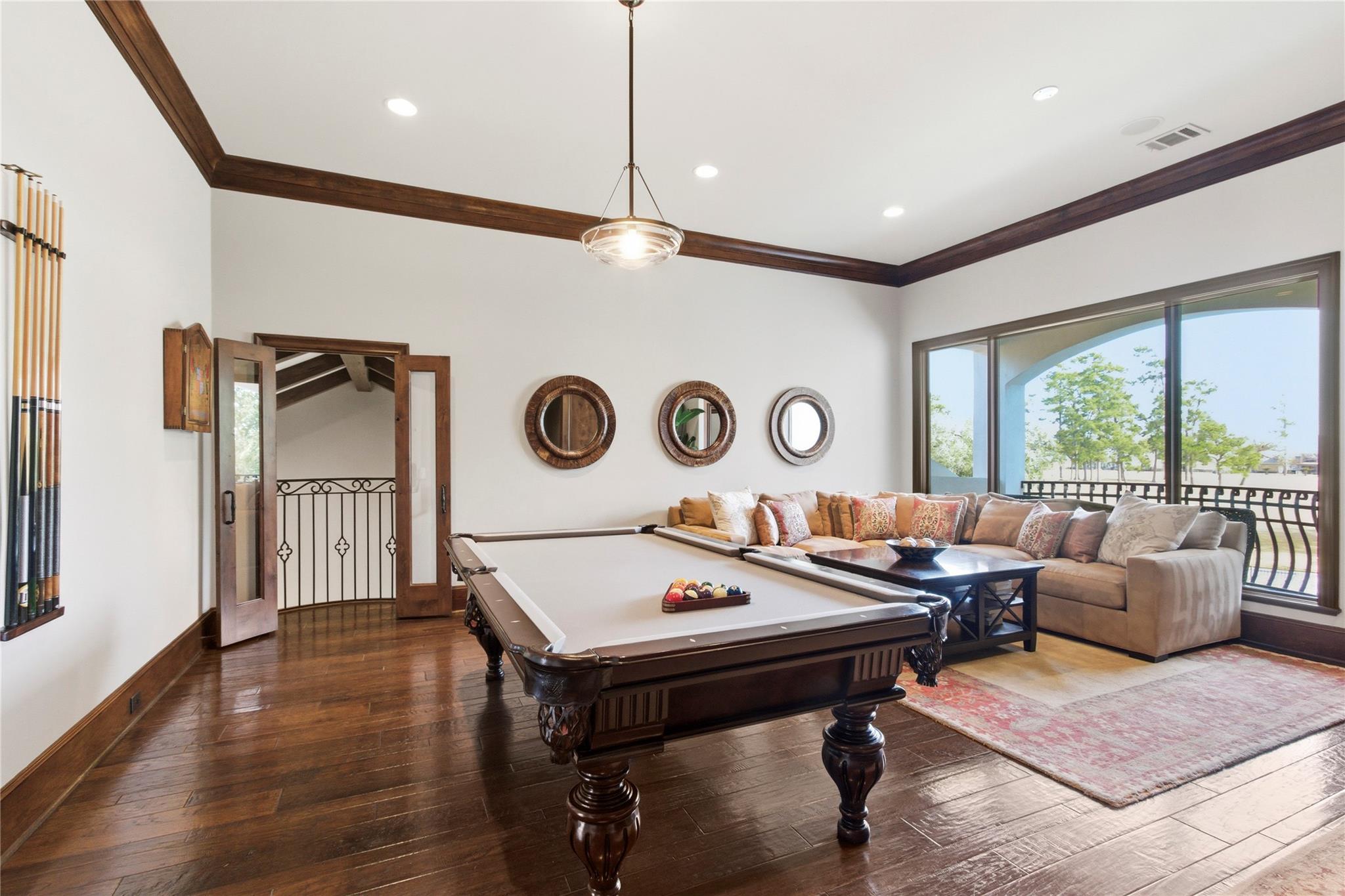 Enter through your private gated drive and experience 7 breathtaking acres of pure Texas luxury. This corner-lot estate delivers immense privacy. The main one-story home features a sprawling layout w/ four spacious bedrooms, four full baths, a private study w/ custom built-ins, & a separate game room w/ its own entrance. An oversized flex space near the secondary bedrooms offers endless possibilities. The chefs kitchen is equipped w/ premium Wolf appliances, while walls of windows frame serene views of your rolling property. The oversized primary suite offers exceptional space & storage, plus an additional private en-suite bedroom upstairs. A separate guest home built in 2020 showcases high-end finishes, Viking appl, hardwood floors, & crown molding perfect for the in-laws. Enjoy beautifully landscaped grounds, front & back porches, a resort-style pool and spa, pool bath, full-house generator, and a two-story barn perched atop the hill. A new roof completes this extraordinary estate.