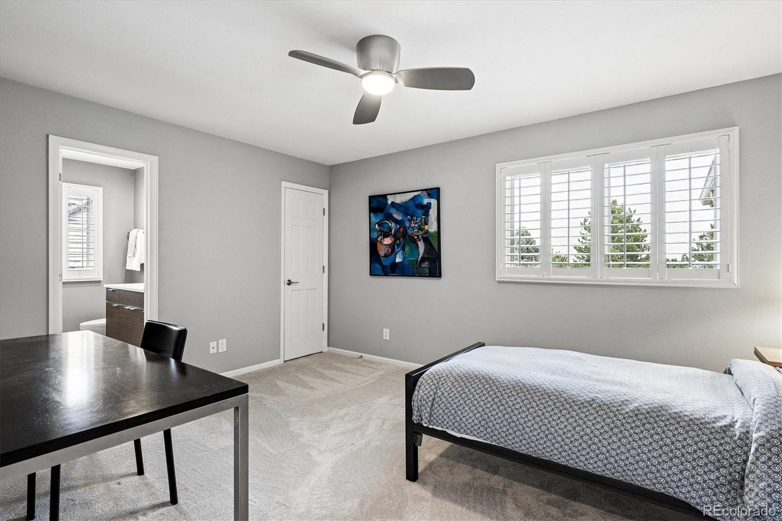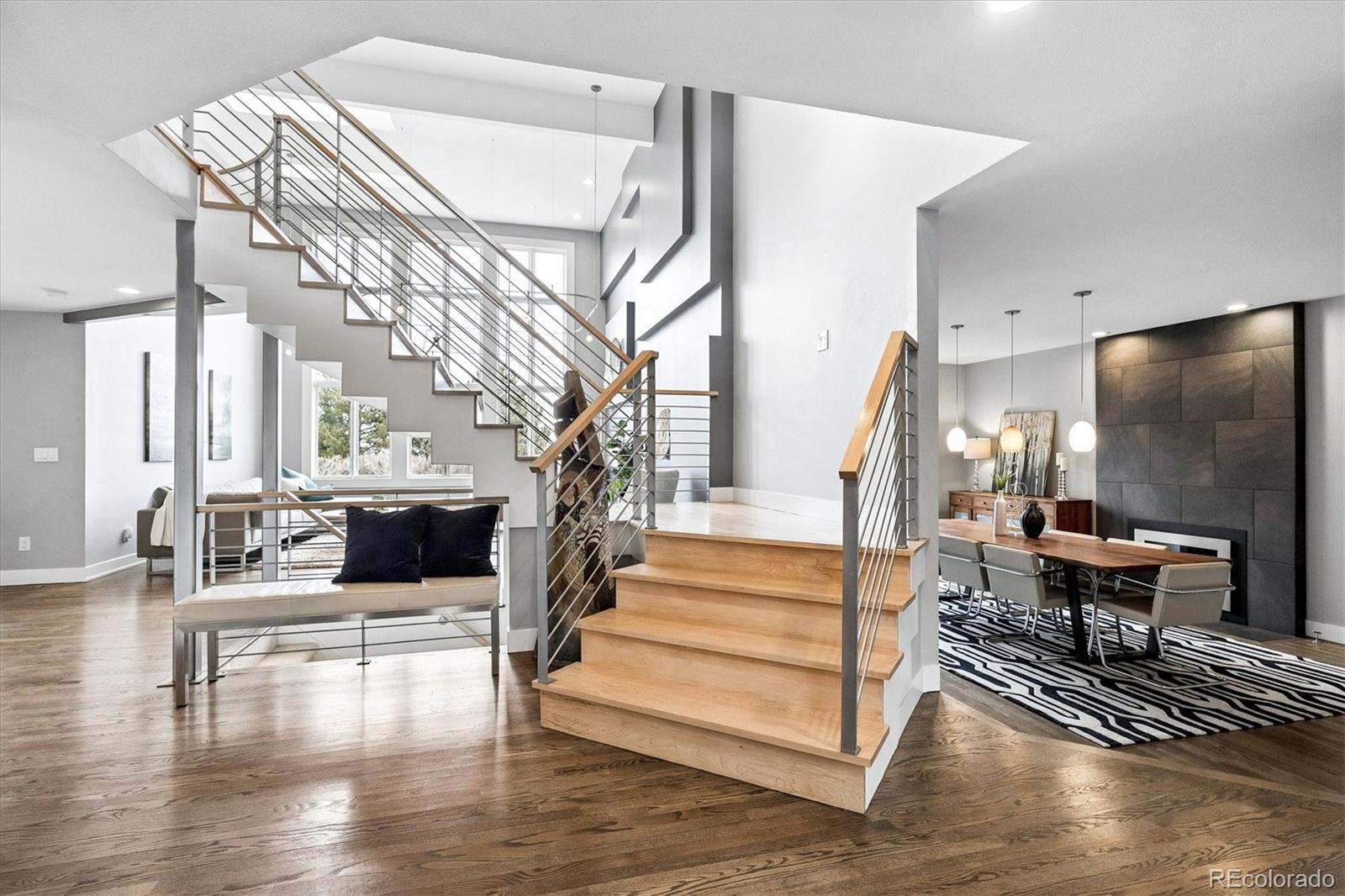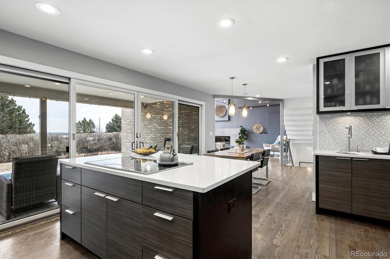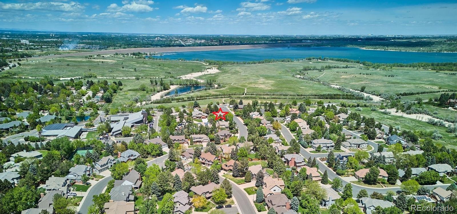Stunning, extensively updated home on large lot with SPECTACULAR RESERVOIR VIEWS, in coveted Hills West community. Award winning Cherry Creek Schools. Beautiful finishes & attention to smallest detail have gone into creating this exquisite home. Bright, open floor plan is ideal for entertaining comfortable daily living. Main level graced by richly stained hardwood flooring, 2 story foyer & dramatic open staircase w/stylish horizontal stair railings, plantation shutters & custom light fixtures. Dining Room features a large window, pendant lighting & atmosphere inducing fireplace. Sun-filled wall of windows skylights in 2 story Family Room draw in tons of natural light & capture the gorgeous reservoir views. Striking tile surrounded fireplace. Cooking will be a pleasure in sleek Gourmet Dream Kitchen. Abundance of top-of-the line cabinetry, quartz countertops & large island with induction cooktop, high-end Thermador stainless appliances, butlers pantry w/prep sink, spacious eating area, walk-in pantry. Expansive sliding glass doors promote indoor/outdoor living. Main Floor Office w/French doors & lovely bay window is perfect for todays remote work. Vaulted Primary Suite is pure luxury! Beautiful 5-piece bath w/extensive quartz countertop, deep soaking tub, shower w/bench & walk-in closet. Open bridge to 3 addl bedrooms, one w/ensuite bath, others nicely served by Jack & Jill bath. Brand new carpet & ceiling fan light fixtures in all bedrooms. Airy loft area with curved railing faces wall of windows - perfect spot for desk or reading chair. Extensive addl space in finished basement - Rec Room, 5th bedroom, 3/4 bath, ideal for out-of-town guests. Enjoy great outdoor living spaces - partially covered stamped concrete back patio, raised garden beds & welcoming front patio overlooking professional landscaping. Ideal location - short walk to Cherry Creek State Park, neighborhood pool, playground & tennis/pickleball courts. THIS IS COLORADO LIVING AT ITS BEST!