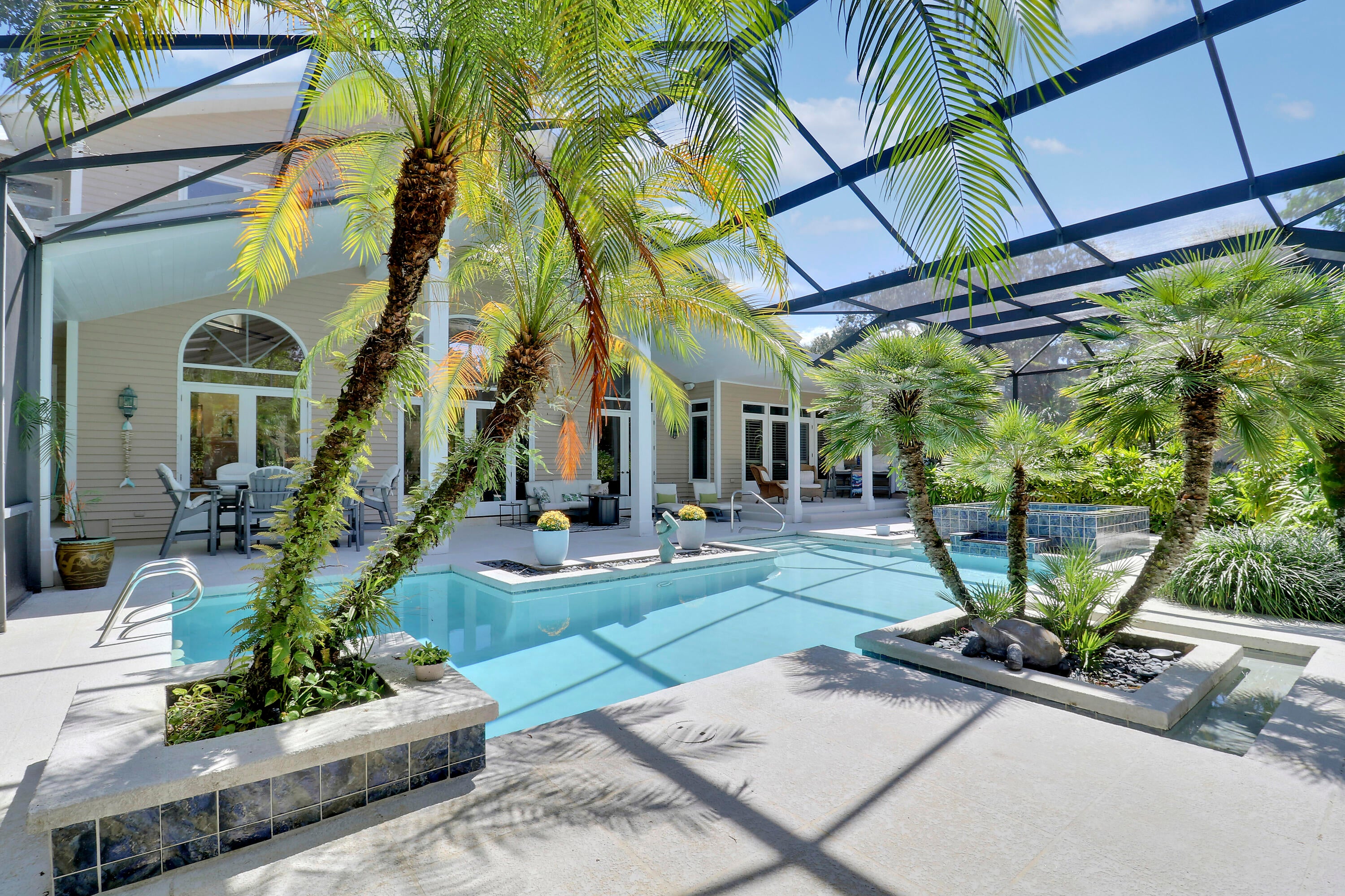 Elegant 4BR/5.1BA pool home in prestigious Indian Trails, offering 5,800 SF of refined indoor-outdoor living on a lushly landscaped cul-de-sac. The grand entry opens to soaring ceilings and a dramatic great room with marble fireplace, arched windows, wet bar, and library with custom bookcases. The chefs kitchen features granite countertops, custom cabinetry, 5 burner gas stove and under-cabinet lighting. The first-floor primary suite is a true retreat with garden views, tray ceiling, and spa-like marble jacuzzi tub with dual vanities, and oversized walk-in shower. A dedicated pool bath adds convenience for guests. Upstairs, the large guest loft includes two bedrooms, with 2 full baths, and a bright sitting area. Enjoy the renovated screened pool and spa deck with hot tub, cascading water feature, and tropical landscaping. The covered patio features a granite-topped summer kitchen and stainless-steel grill and built in green egg and drink refrigerator. Community amenities include a clubhouse, pool, Har-Tru tennis courts, riverfront docks for boating, and a charming beach house with direct beach access via a scenic boardwalk. Recent upgrades include a new roof in 2021 and updated exterior lighting. Minutes to Veros beaches, dining, and boutiques this home offers the best of Florida coastal living!