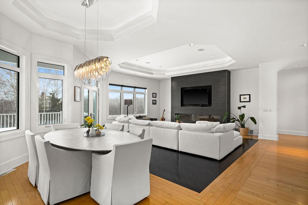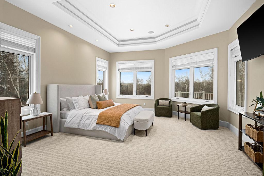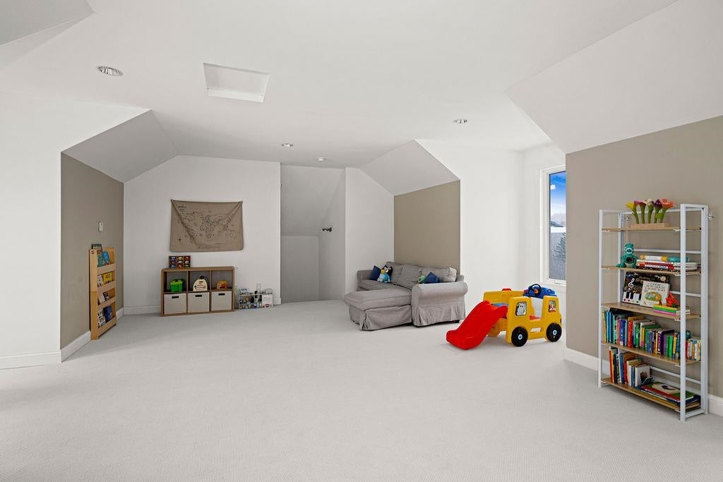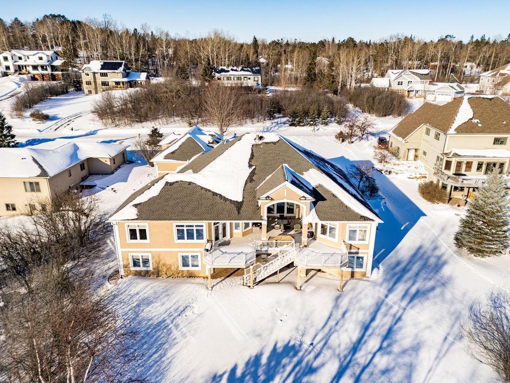 Location, location, location! This exceptional Hartley Estates residence combines timeless craftsmanship with modern design and a truly rare settingbacking directly to700 acres of protected green space. Every detail of its construction reflects quality and care, evident in the soaring ceilings, expansive windows that frame natural views, and the beautifully finished concrete driveway. The sun-filled main level offers a perfect balance of elegance and comfort, featuring a cozy fireplace sitting room, gourmet kitchen, and a luxurious primary suite flanked by two additional bedrooms. An expansive bonus room above the garage provides versatile space for work or play. The walkout lower level extends the living area with three bedrooms, a recreation room, kitchenette, gym, and generous storage. Outside, a well-appointed backyard includes a Rainbow playgroundperfect for fun and active playalong with a spacious deck ideal for morning coffee or peaceful sunsets overlooking the woods. Step right out your door to explore the endless trails beyond.