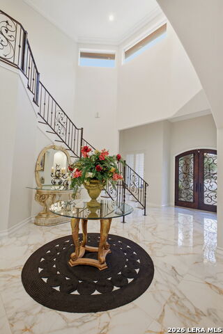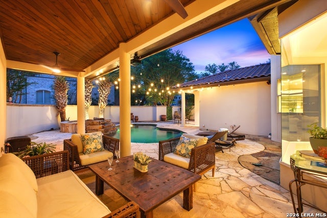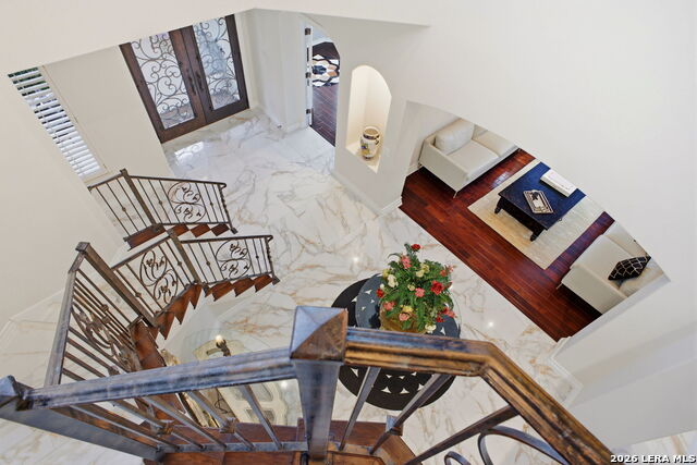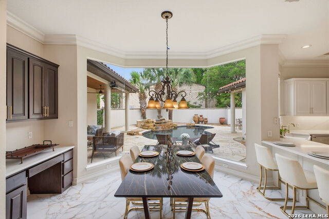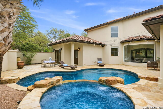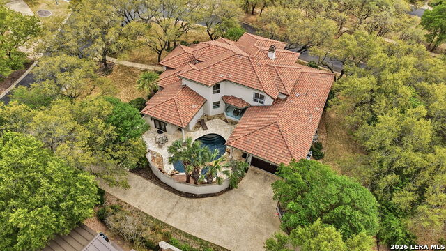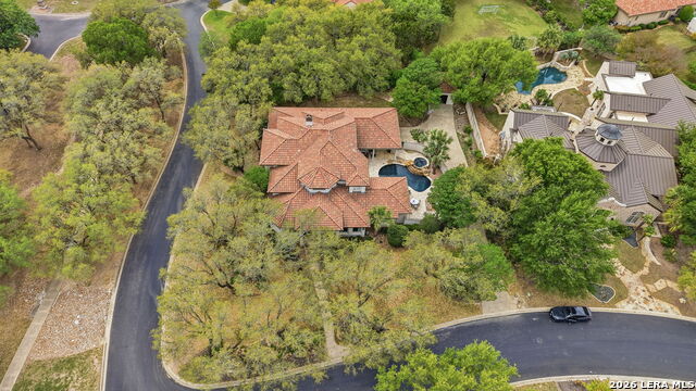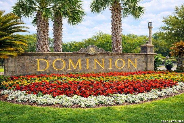 Welcome home to 1 Belcourt Place inside the Dominion! Enjoy over half an acre of mature trees and lush green space inside the highly sought after neighborhood. Host your friends at your pool equipped with the Outdoor projector and sound system entertainment package everyone will be talking about. Send your kiddos off to school with the bus route stopping right at your house. Walk out your front door and enjoy the holiday festivities on the greenbelt directly in front of your home. You even have your very own Golf Cart Garage! Seller has invested significantly in high-quality renovations throughout, including a fully updated chefs kitchen with quartz countertops, backsplash, farmhouse sink, premium faucet, new appliances, and induction cooktop with Sub-Zero refrigerator. Flooring and finishes have been upgraded across the home, creating a modern, move-in-ready luxury feel Home offers 4 bedrooms, 5 baths, Office, Three spacious living areas on the main level plus an additional upstairs living area, and a large formal dining room with direct access to the pool-perfect for large gatherings. The backyard is a private retreat with a stunning heated pool, spa, covered patio, and three palm trees-perfect for entertaining, Two balconies overlook a park, with walking access to scenic Dominion lakes and trails. Located in a highly desirable school zone. The spacious ground floor primary suite features a glamorous bathroom with dual vanities, dual closets, and a walk-through shower and soaking tub. Gorgeous hard wood flooring throughout the Master bedroom. The primary suite features a stunning wall of windows overlooking the serene park and mature trees, filling the space with natural light. Enjoy direct access to a spacious private balcony-perfect for morning coffee or unwinding in the evening surrounded by sunshine and the peaceful sounds of nature. The windows are enhanced with upgraded motorized shades, easily controlled at the touch of a button for added comfort and convenience. The breakfast area is highlighted by a dramatic wall of windows overlooking the private pool and palm trees, bringing in abundant natural light and a true indoor-outdoor living experience. This home is a rare find, ideally located directly across from a serene park, offering exceptional privacy with no homes immediately in front. The spacious main level features multiple living areas, creating an open and comfortable layout that feels both expansive and highly functional. A full bathroom with direct access from the pool area adds everyday convenience. The spacious main level features multiple living areas, creating an open and comfortable layout that feels both expansive and highly functional. This home is truly one of a kind!