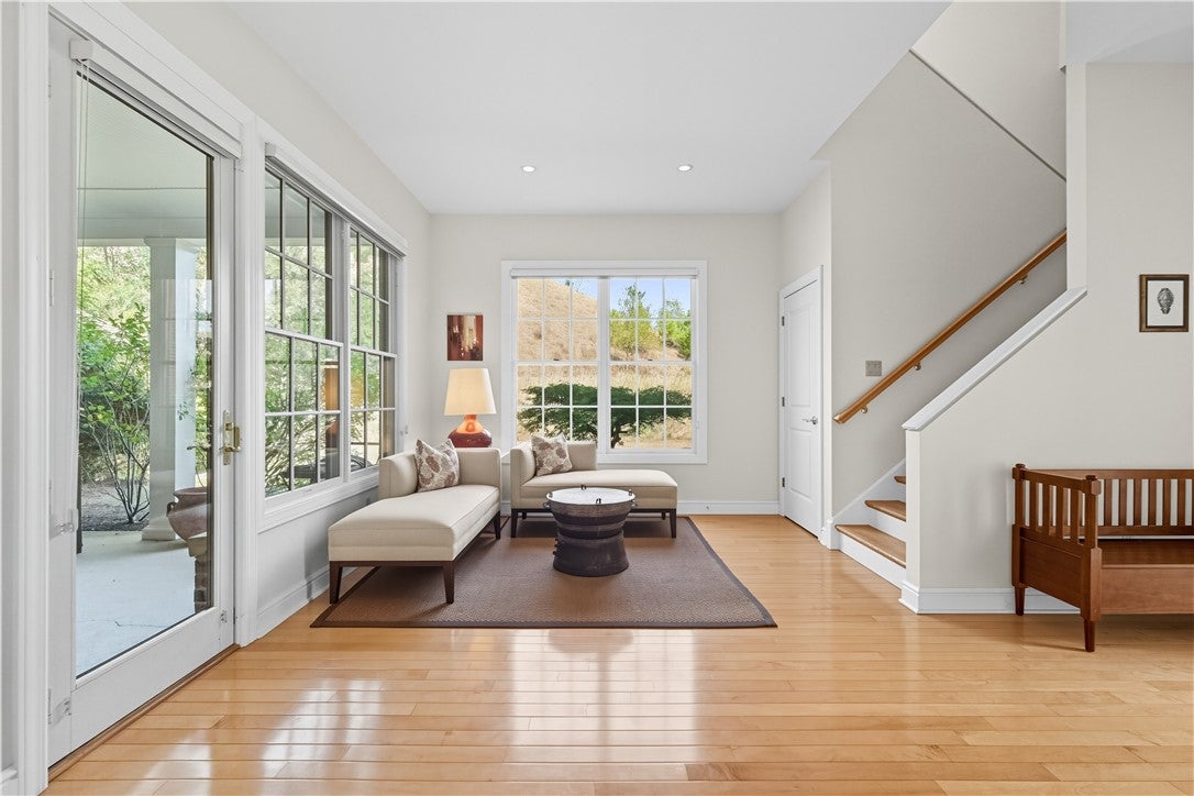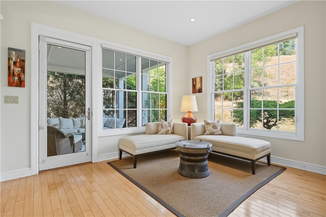 Spectacular Hillside Retreat in Roy Rogers Estates with Panoramic Views. Tucked away behind private gates and set along a scenic driveway, this exceptional property is one of Los Angeles most distinctive homes. Located in the prestigious Roy Rogers Estates of Chatsworth, this architectural gem is built into the hillside and surrounded by the natural beauty of the Santa Susana Mountains - offering direct access to hiking trails just steps from your front door. The home sits on an expansive 30,000 sq. ft. lot dotted with the dramatic sandstone boulders that define Chatsworths rugged landscape. Enjoy sweeping views of the Valley from multiple vantage points, including two covered observation decksone featuring a private spa where you can relax and soak in the scenery. Inside, youll find a thoughtfully designed layout offering 4 bedrooms, 4 bathrooms and 2,553 sq. ft. of beautifully designed living space, the home features an open-concept layout with a kitchen at its heartcomplete with a large island, walk-in pantry, and plenty of space for gathering. A stylish wet bar with a wine refrigerator makes entertaining effortless, while two front-facing balconies offer tranquil Valley views. The accompanying living room boasts a fireplace to relax and take in the surrounding landscape. The spacious primary suite includes a cozy fireplace, a walk-in closet, and a luxurious ensuite bathroom with a soaking tub and separate shower. Additionally, the property features an exterior elevator for easy access to the upper level of the backyard, a spacious 3-car garage, and a fully paid solar energy system. With its blend of seclusion, natural beauty, and modern comforts, this property offers a truly rare opportunity to own a private hillside retreat in one of L.A.s most coveted hidden enclaves.